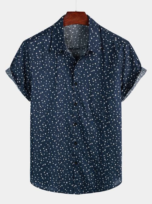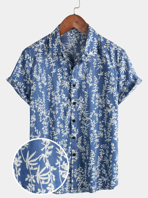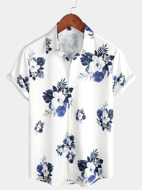 Men's Retro Blue Blossom Summer Holiday Short Sleeve Shirt