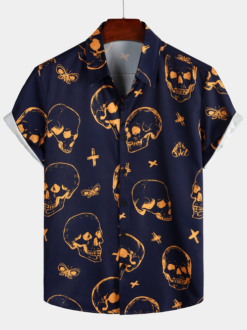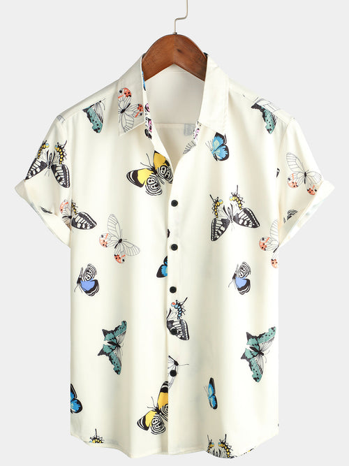 Men's Floral Printed Button Up Casual Short Sleeve Shirt