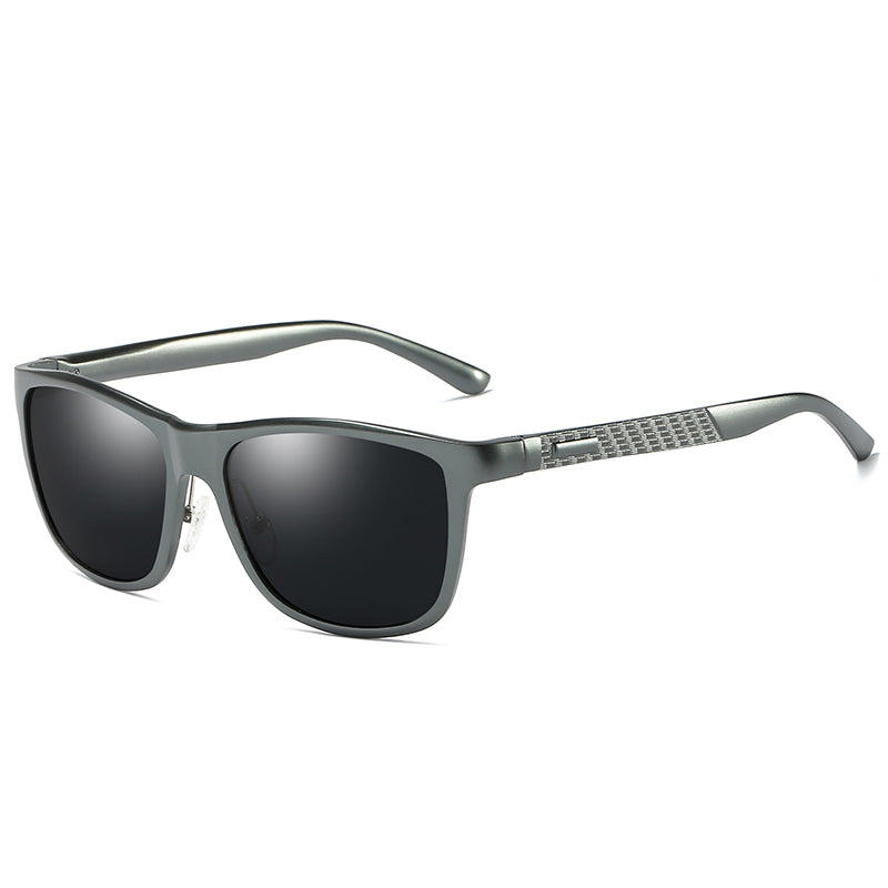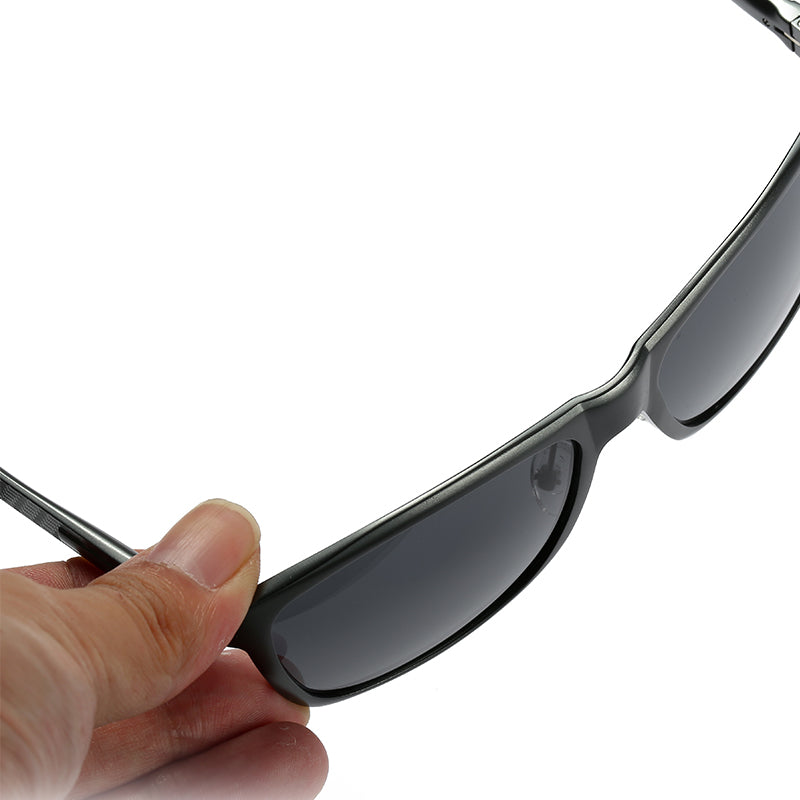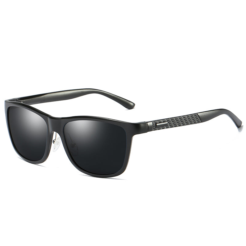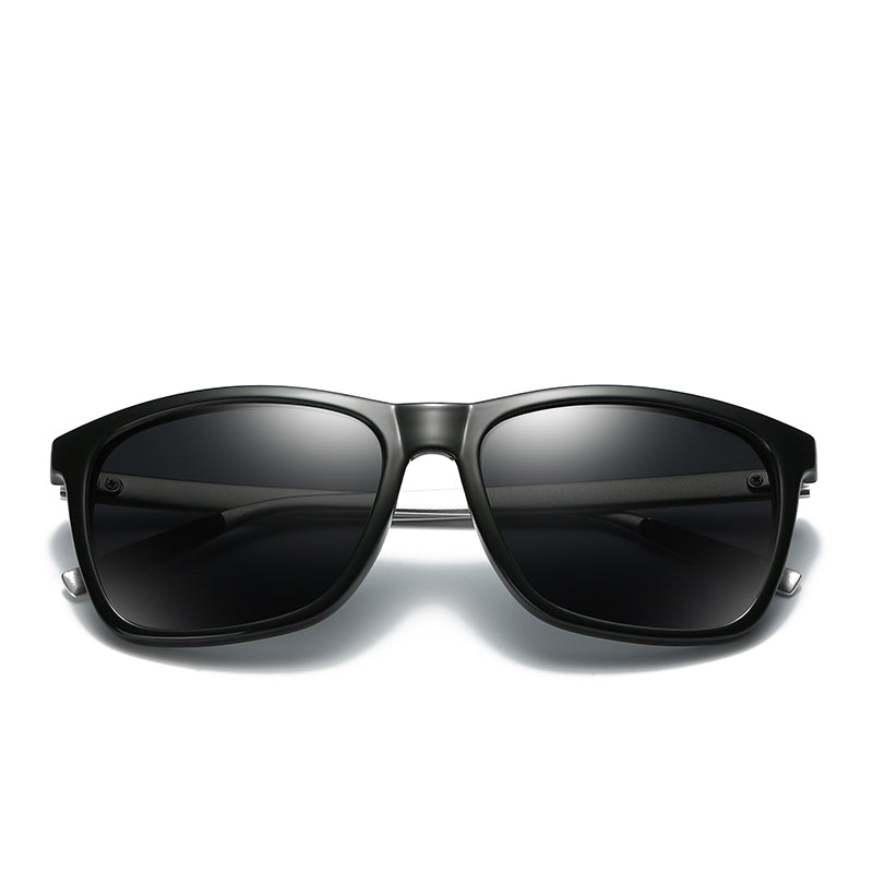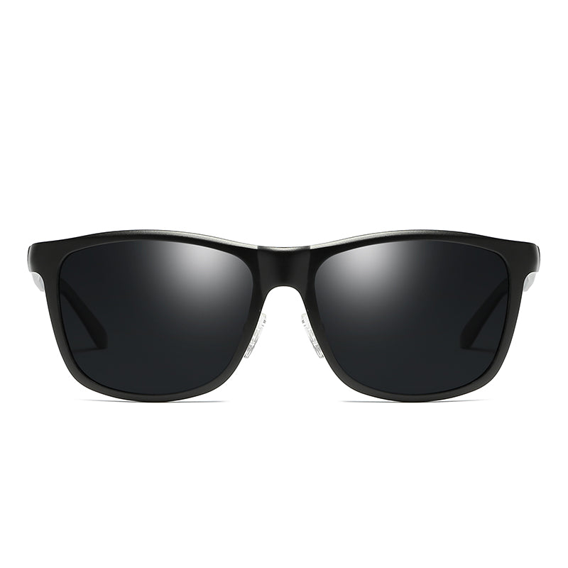 Men's Black Polarized Fashion Aluminum Magnesium Temple Square Sunglasses