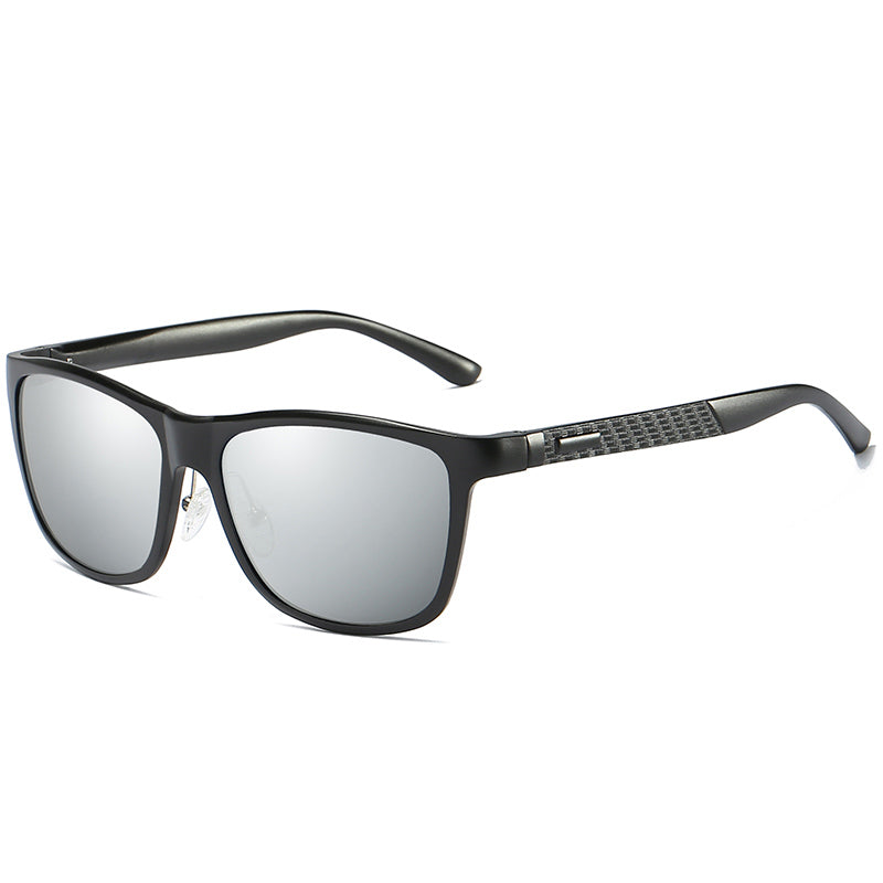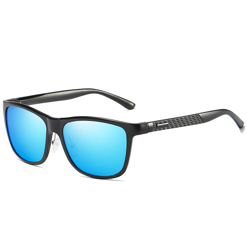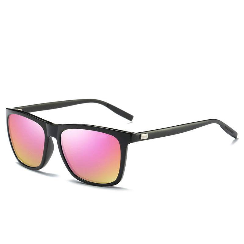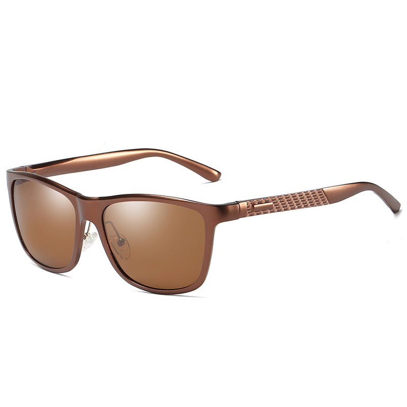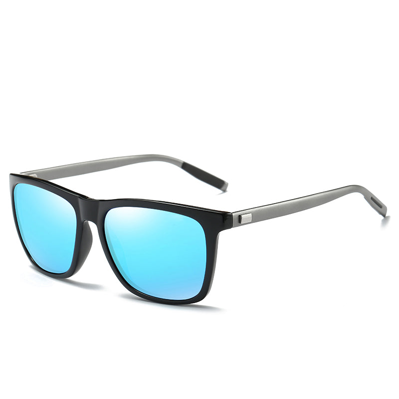 Men's Black Polarized Fashion Aluminum Magnesium Temple Square Sunglasses