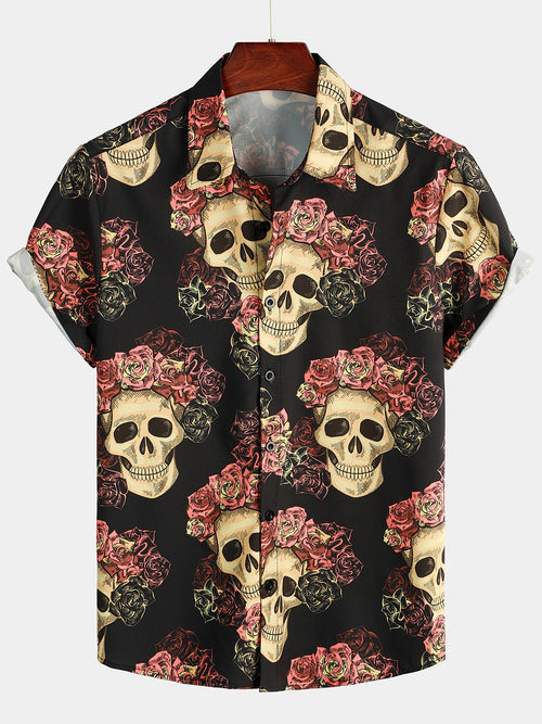 Men's Funny Skull Print Hawaiian Short Sleeve Shirt