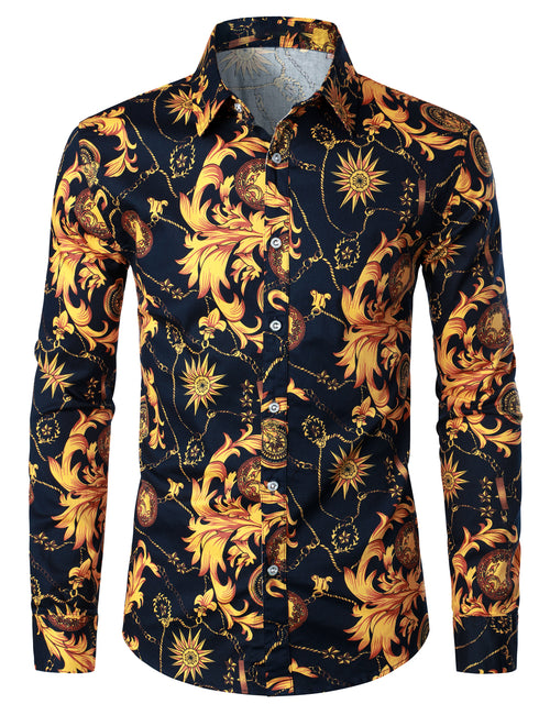 Men's Paisley Floral Vintage Long Sleeve Shirt