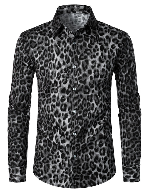 Men's Shiny Satin Floral Jacquard Casual Long Sleeve Button Up Dress Shirt