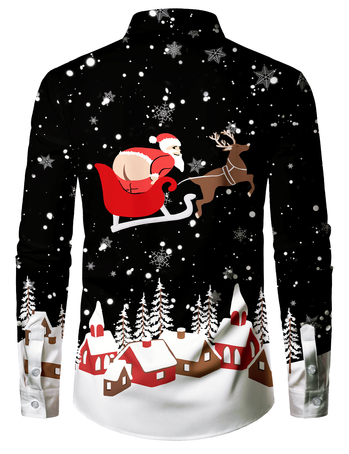 Men's Black Santa Print Christmas Long Sleeve Shirt