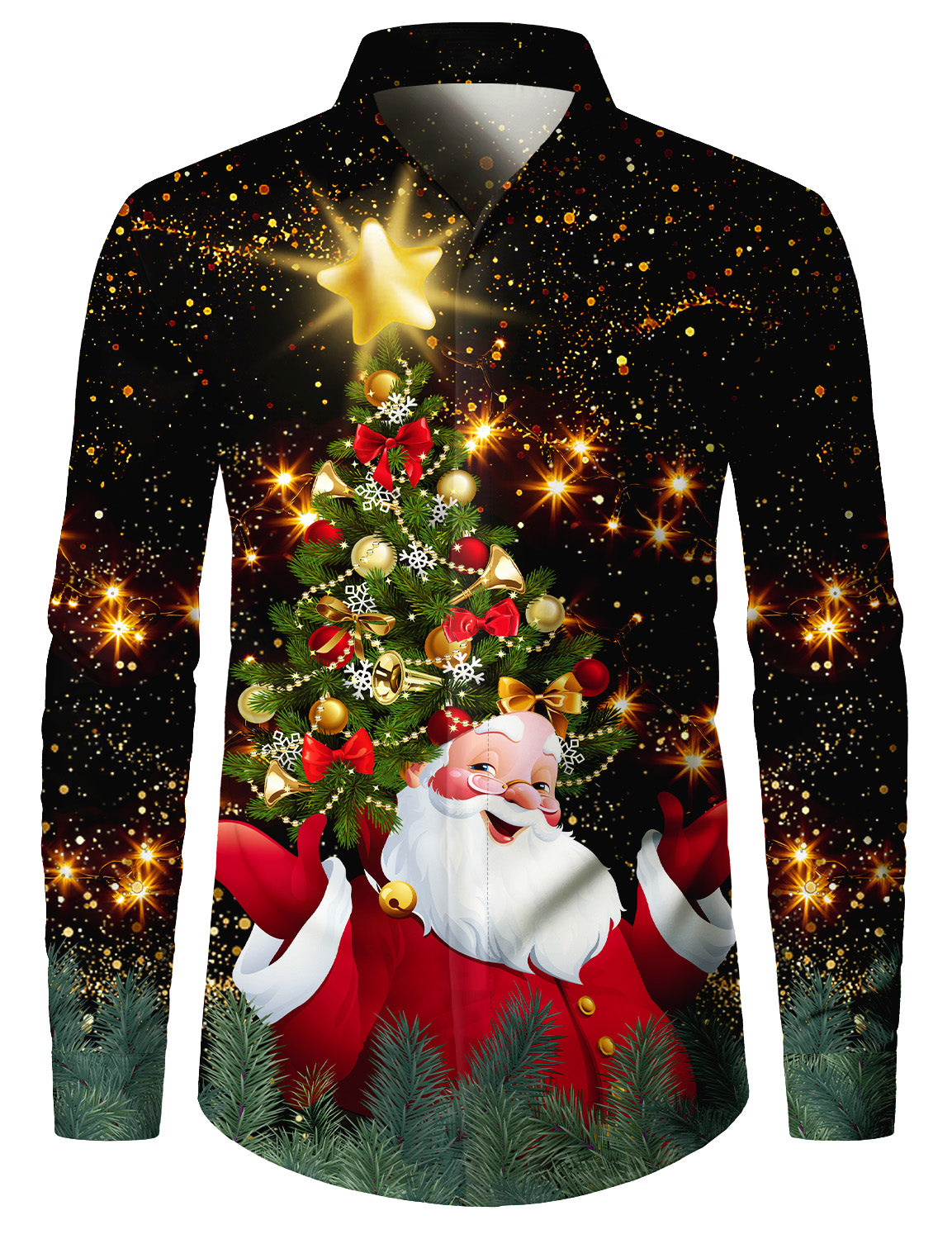 Men's Xmas Long Sleeve Christmas Tree Santa Shirt