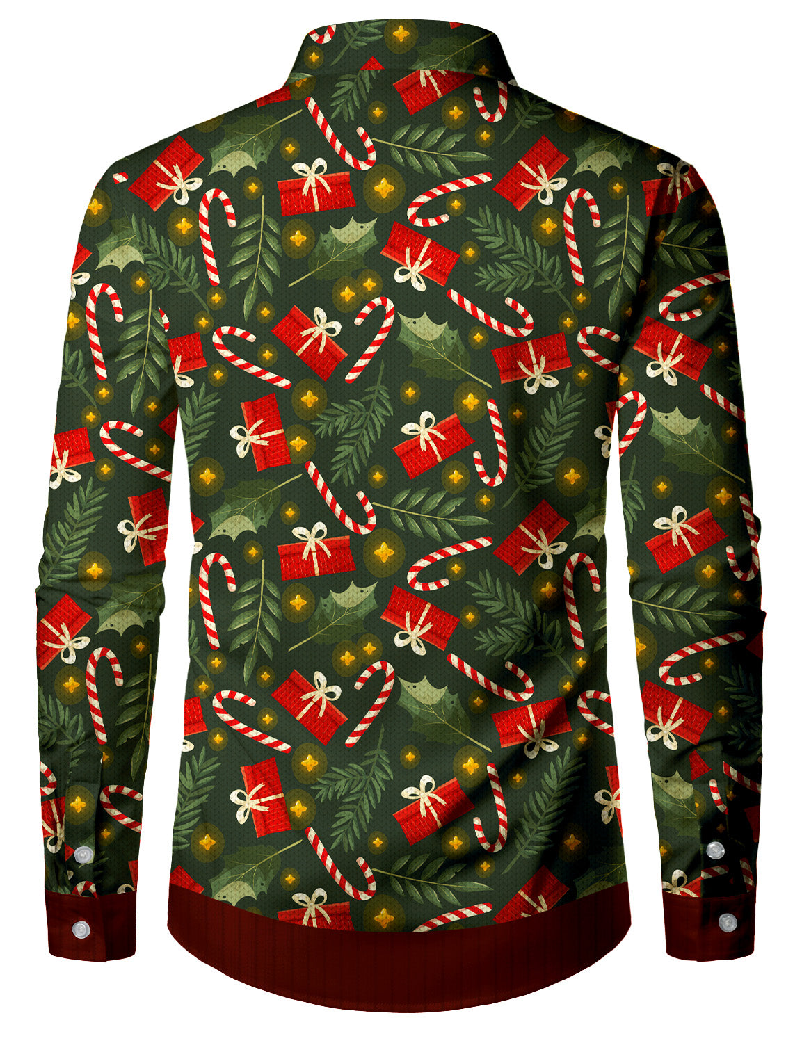 Men's Christmas Funny Holiday Button Up Long Sleeve Shirt