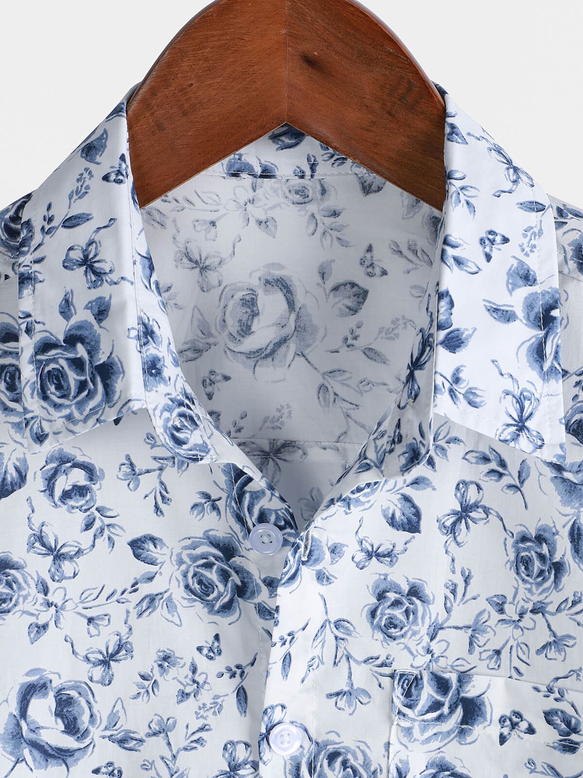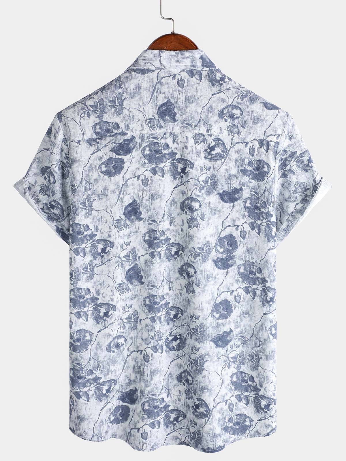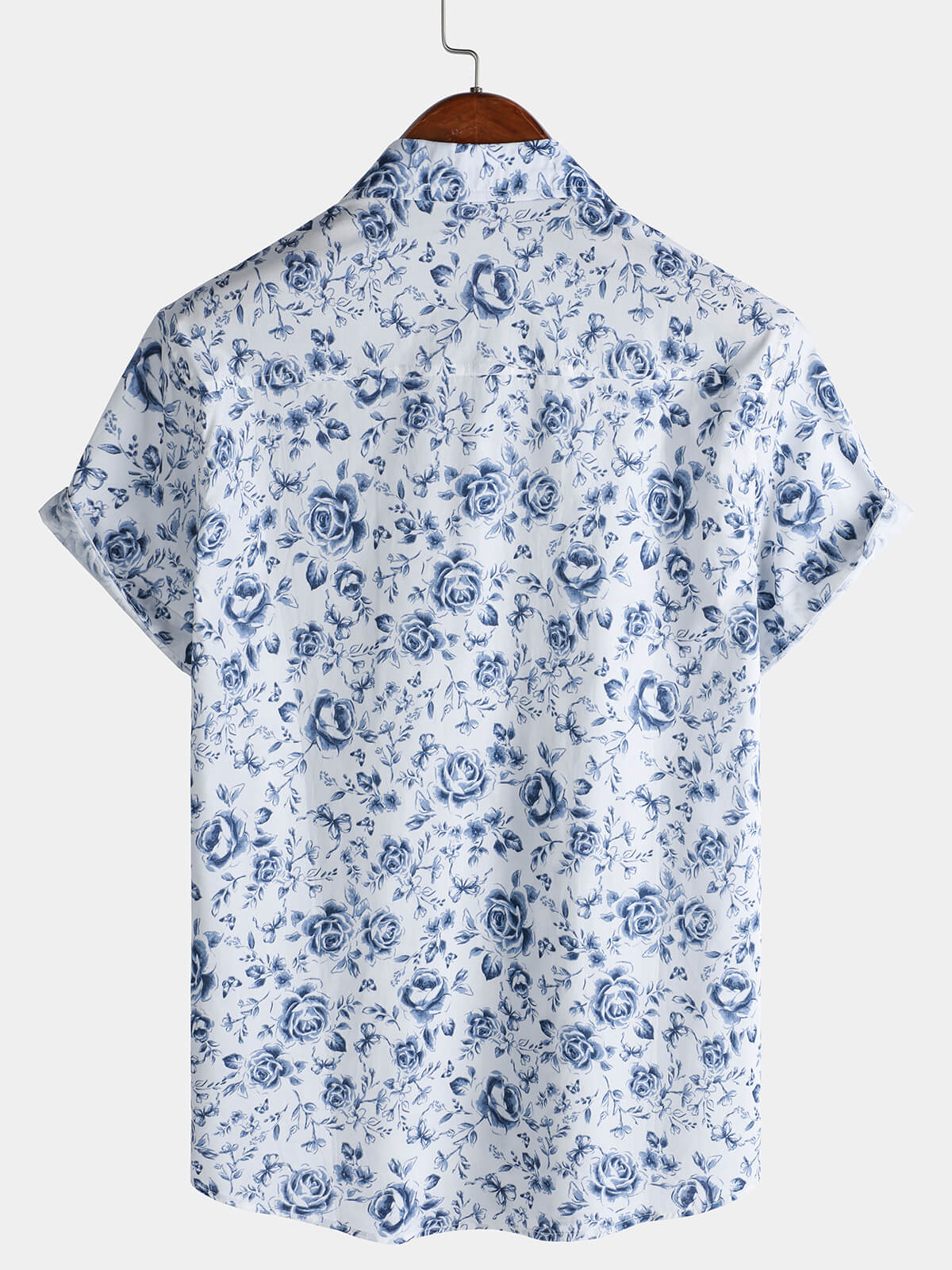 Men's Blue Rose Print Breathable Cotton Island Cruise Summer Holiday Resort Shirt