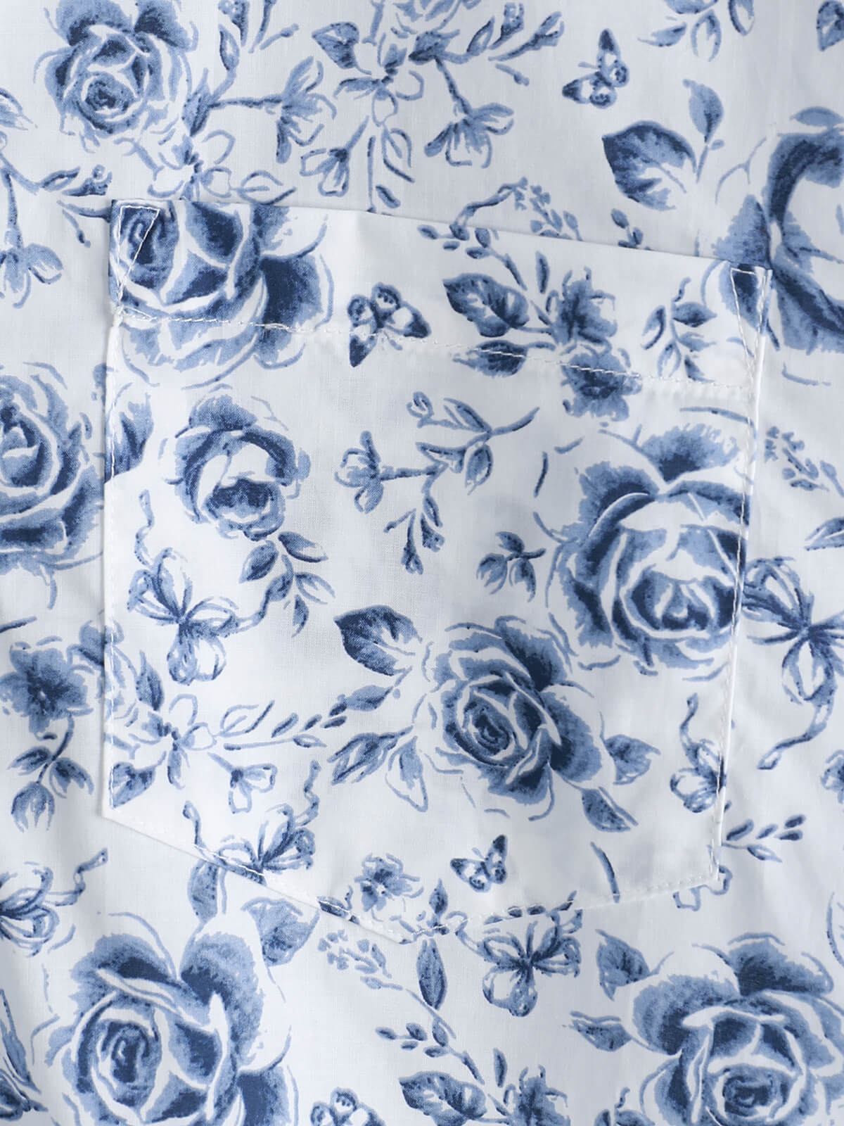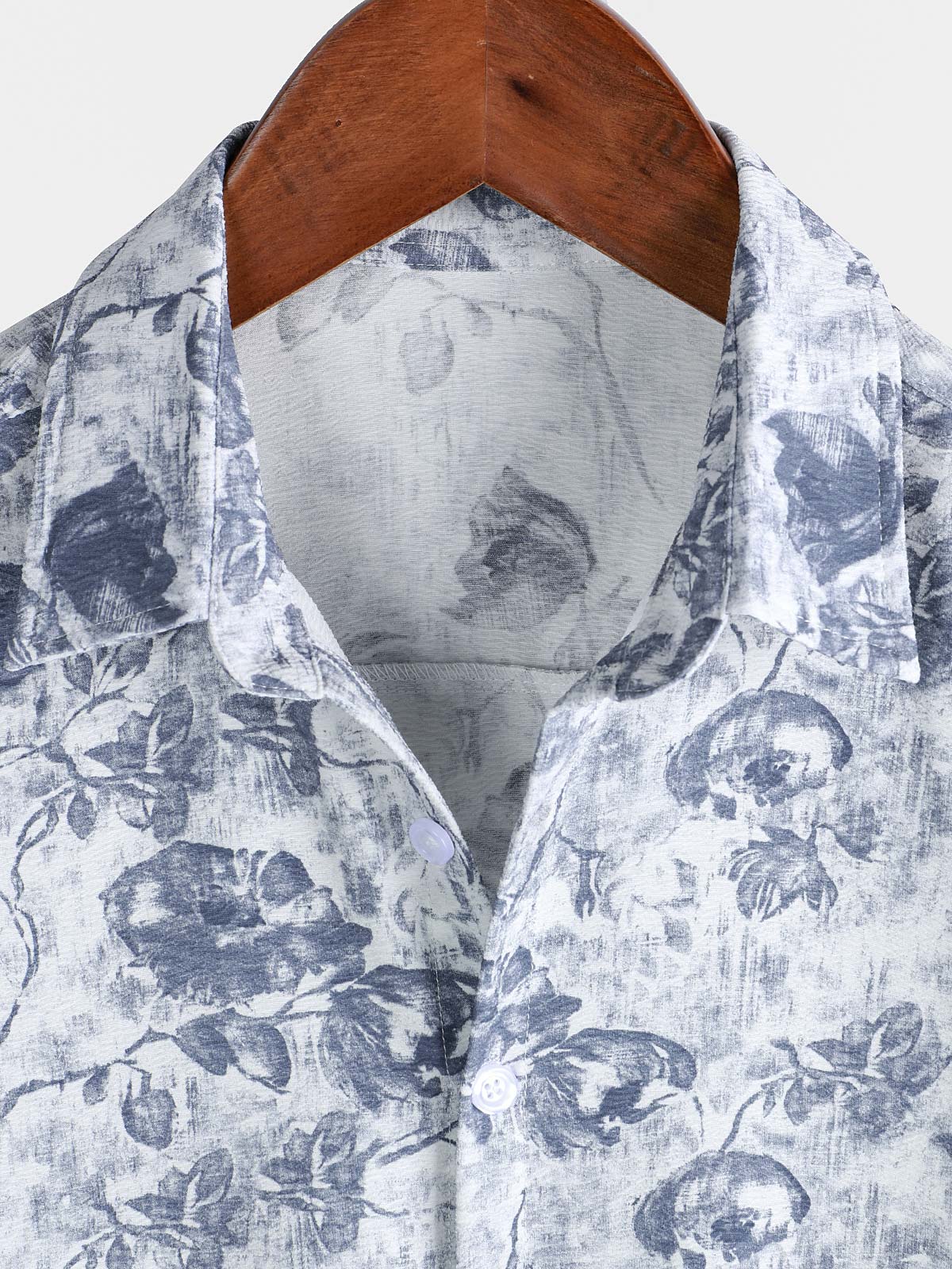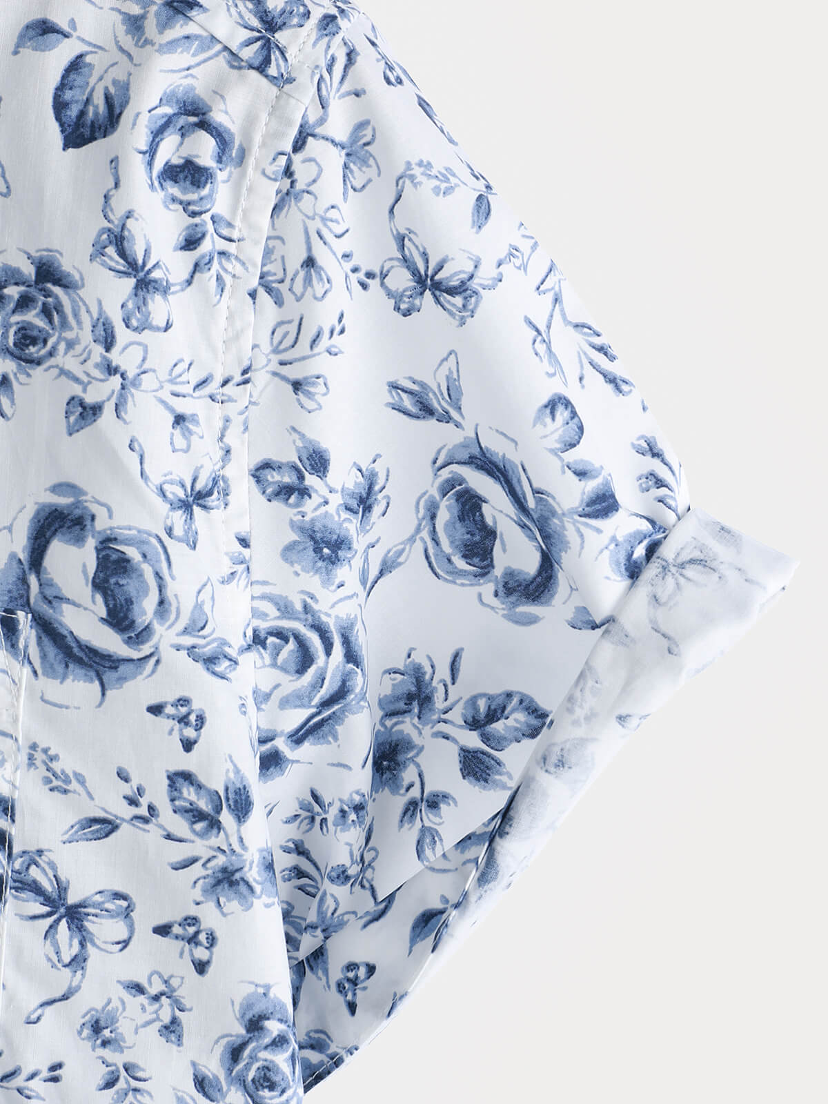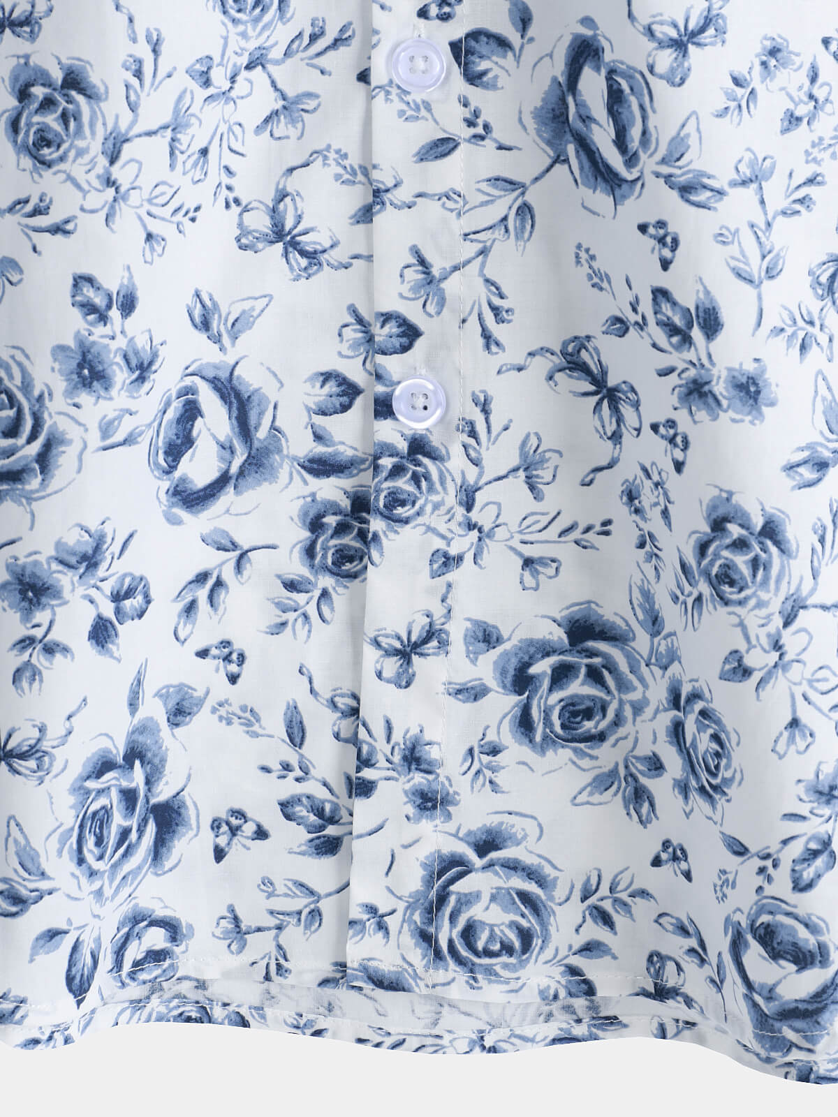 Men's Blue Rose Print Breathable Cotton Island Cruise Summer Holiday Resort Shirt