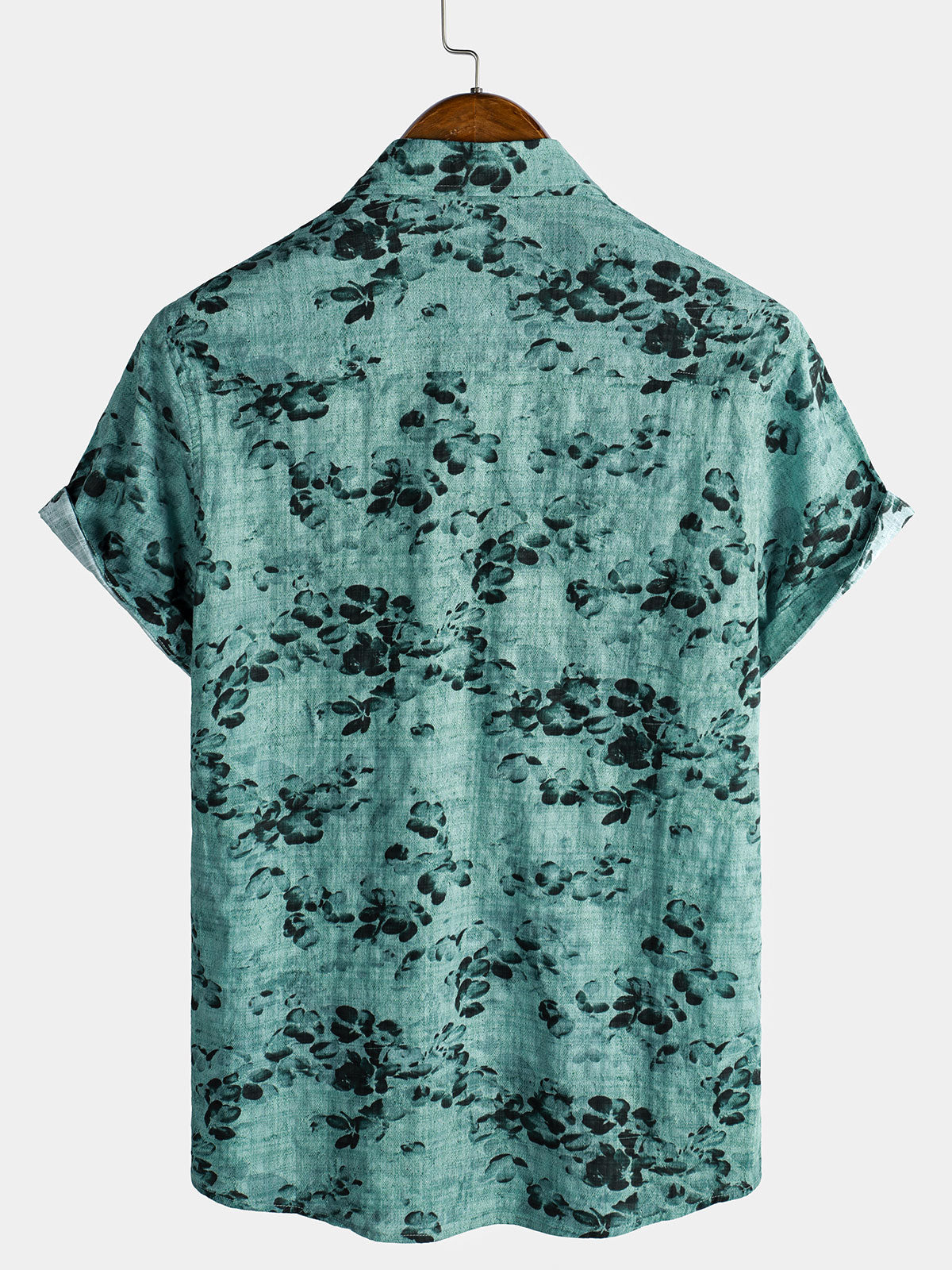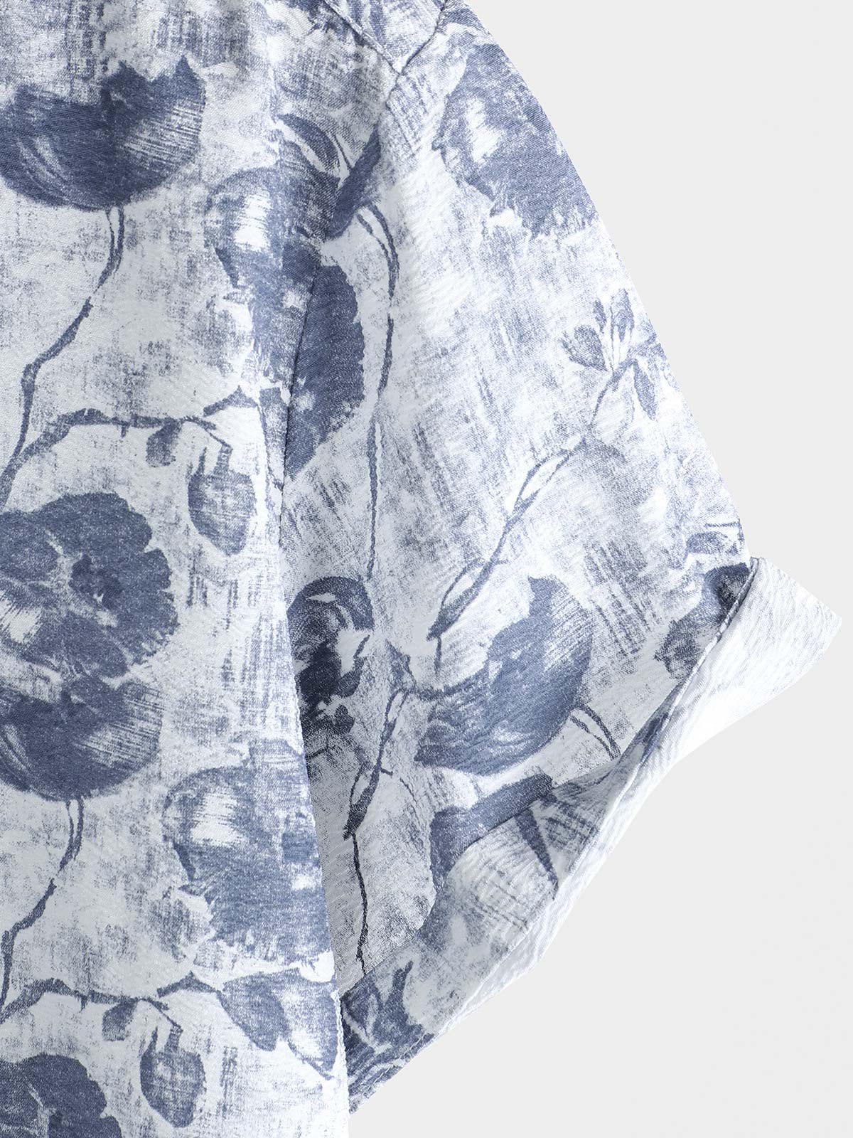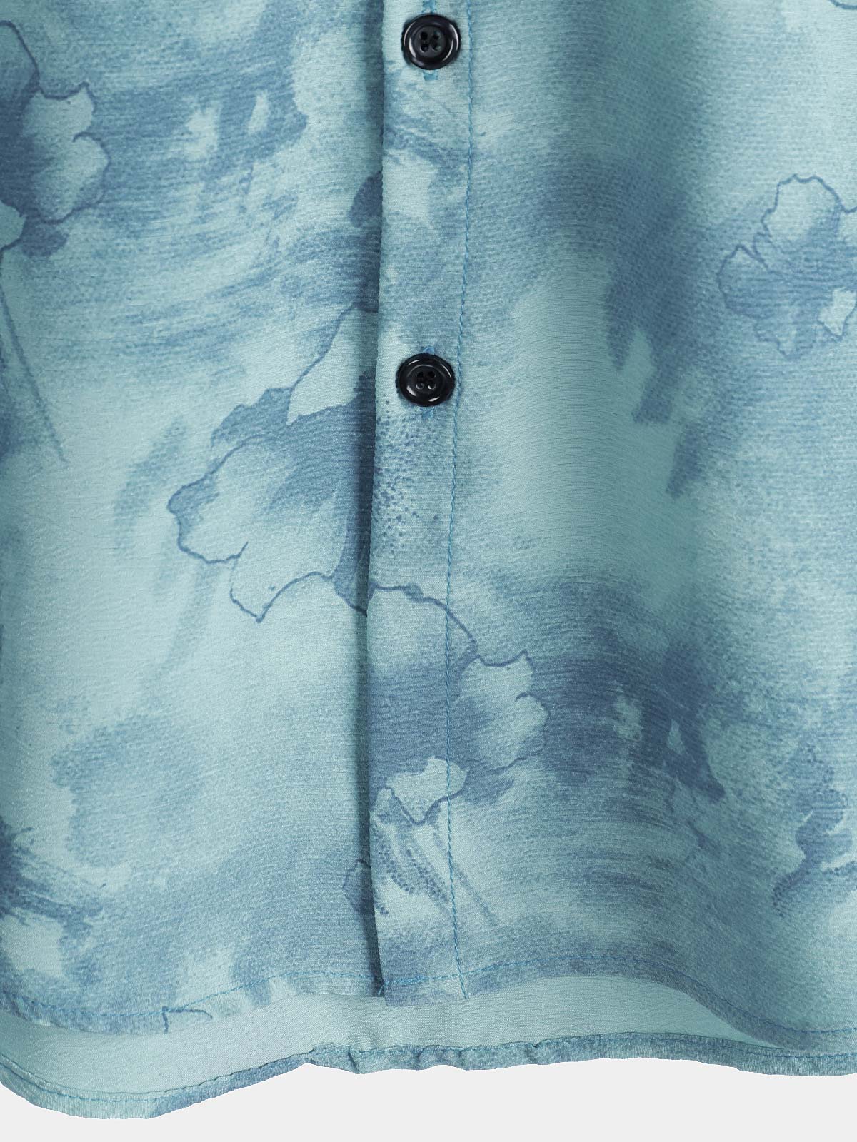 Men's Watercolor Floral Print Breathable Cotton Slub Texture Summer Resort Shirt