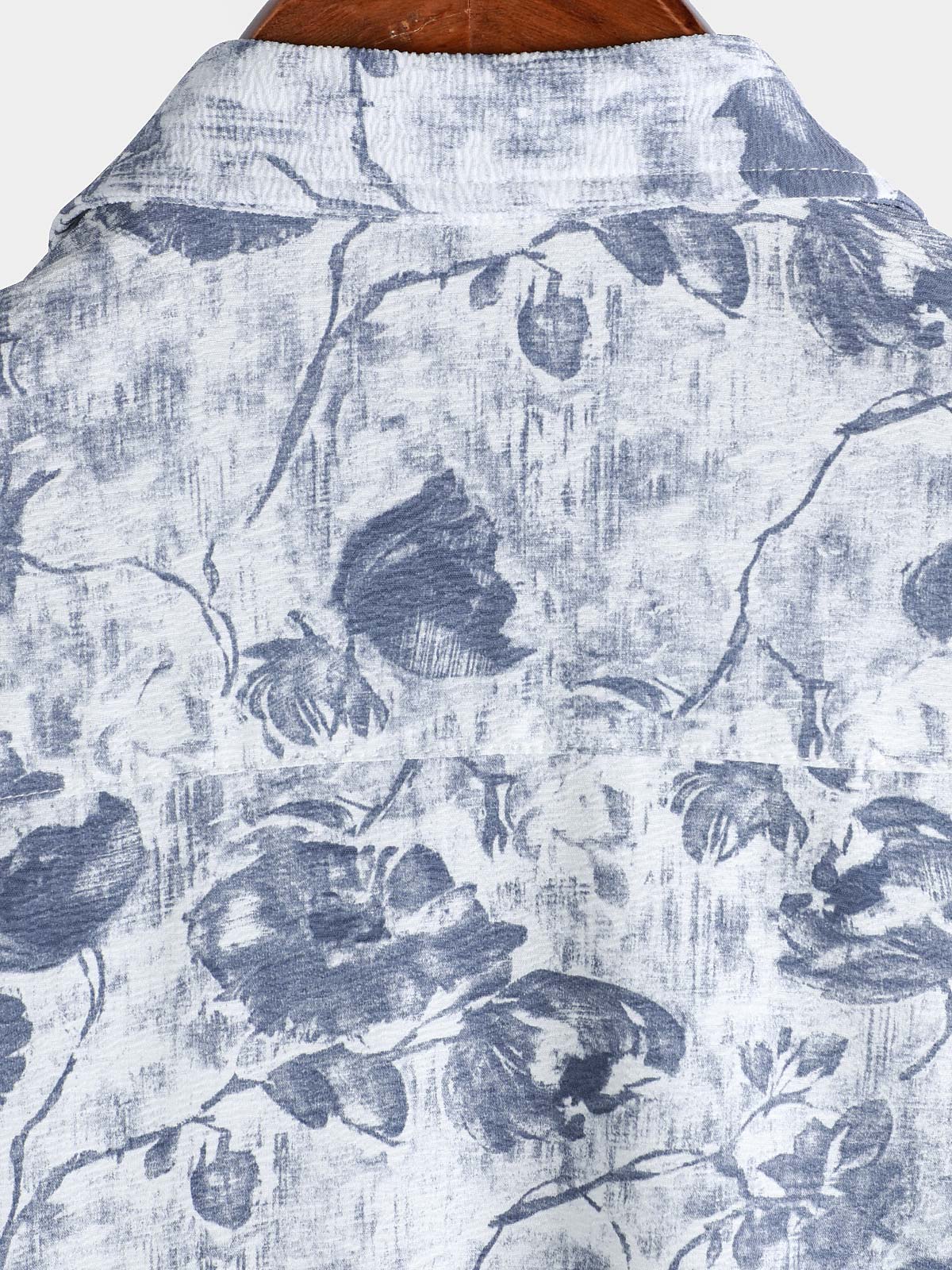 Men's Lightweight Breathable Cotton Botanical Graphic Summer Casual Shirt