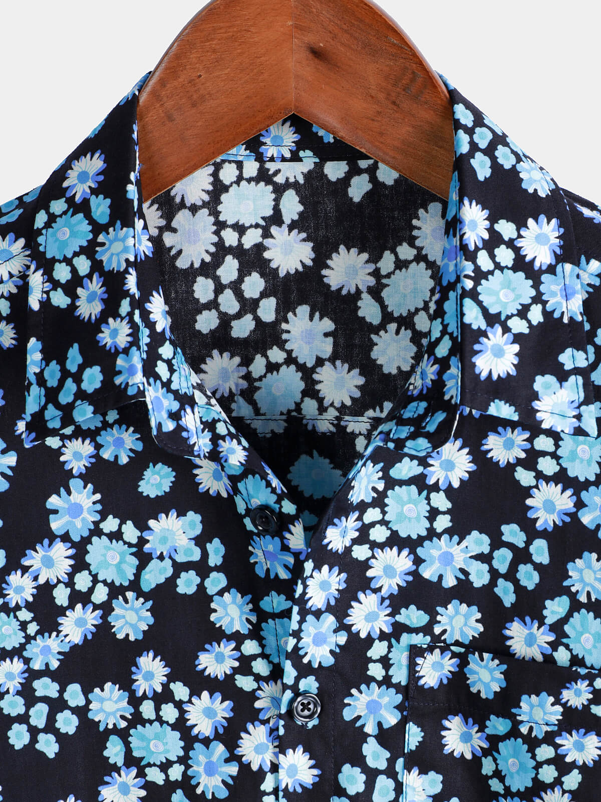 Men's Blue Daisy Print Breathable Cotton Island Cruise Summer Holiday Resort Shirt