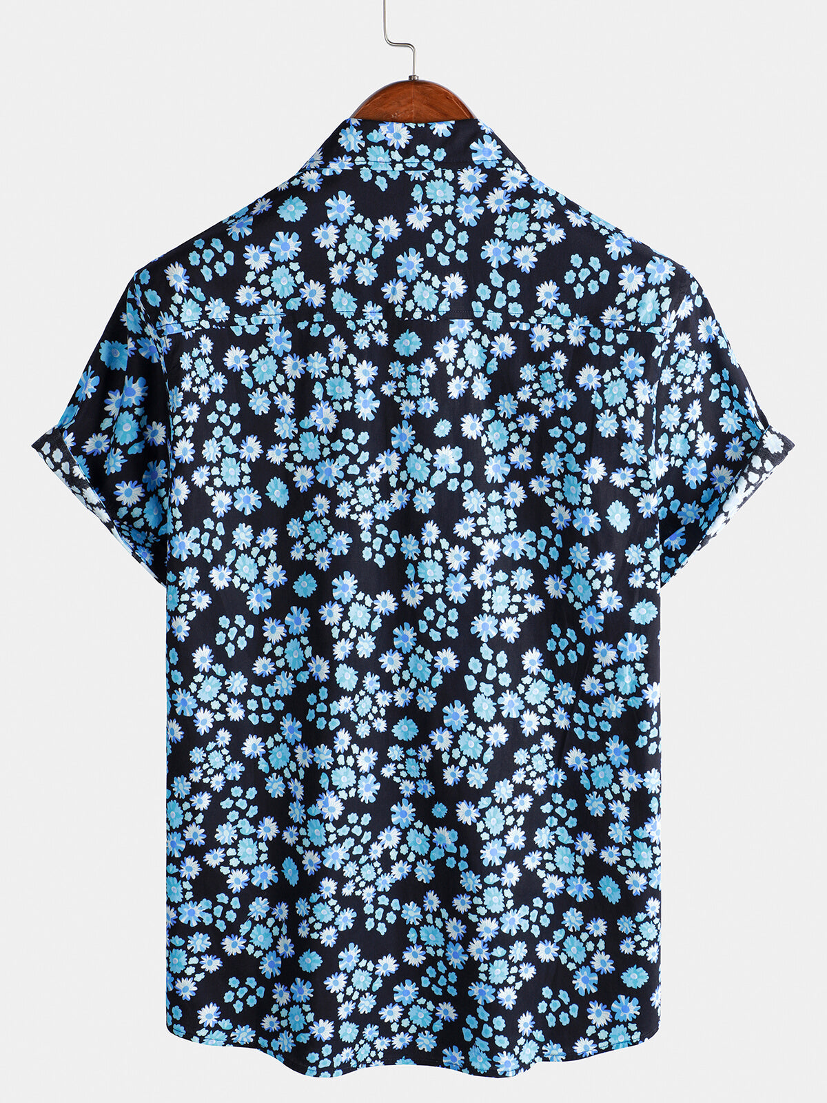 Men's Blue Floral Print Hawaiian Button Up Summer Beach Casual Collar Short Sleeve Shirt