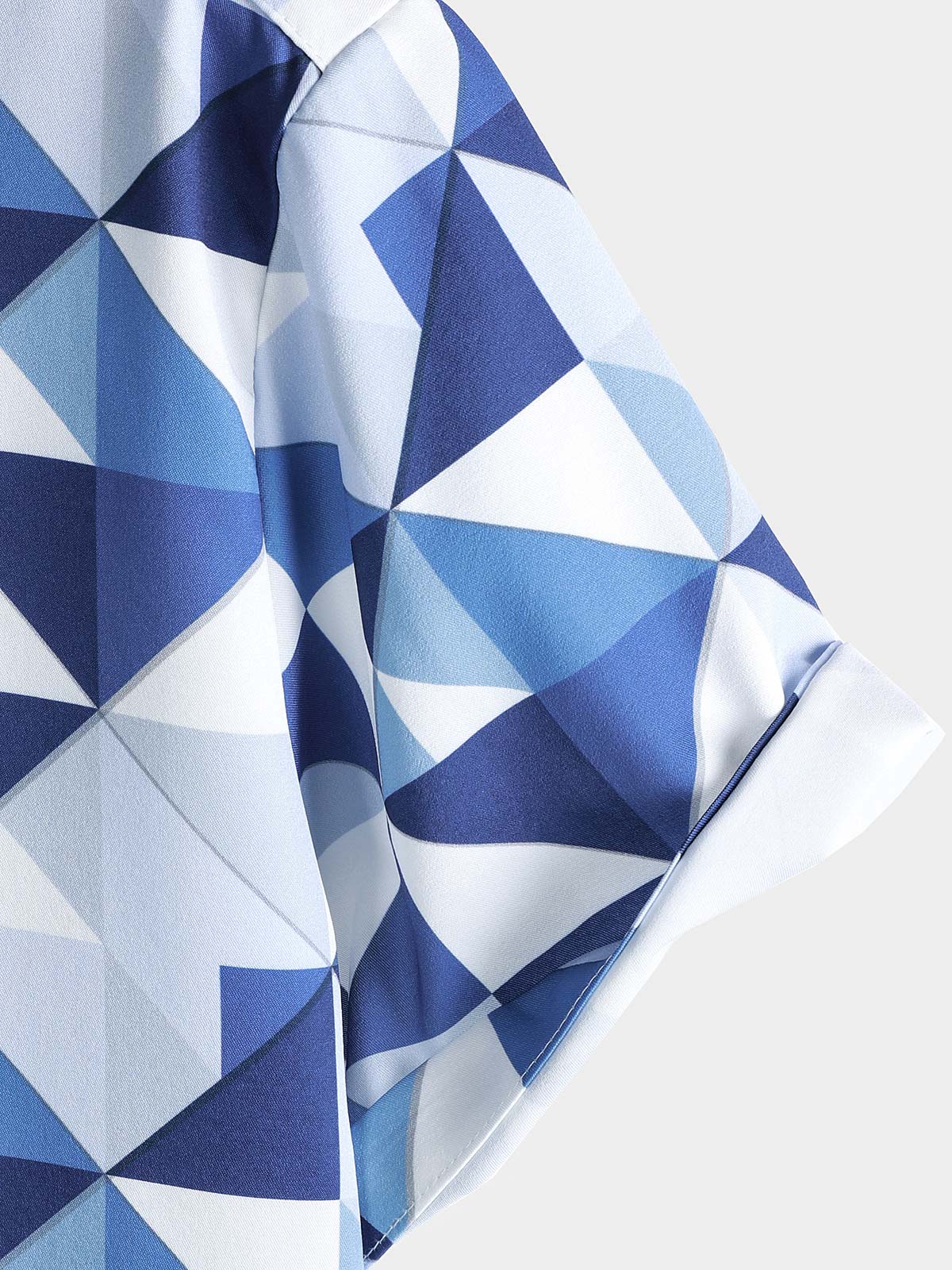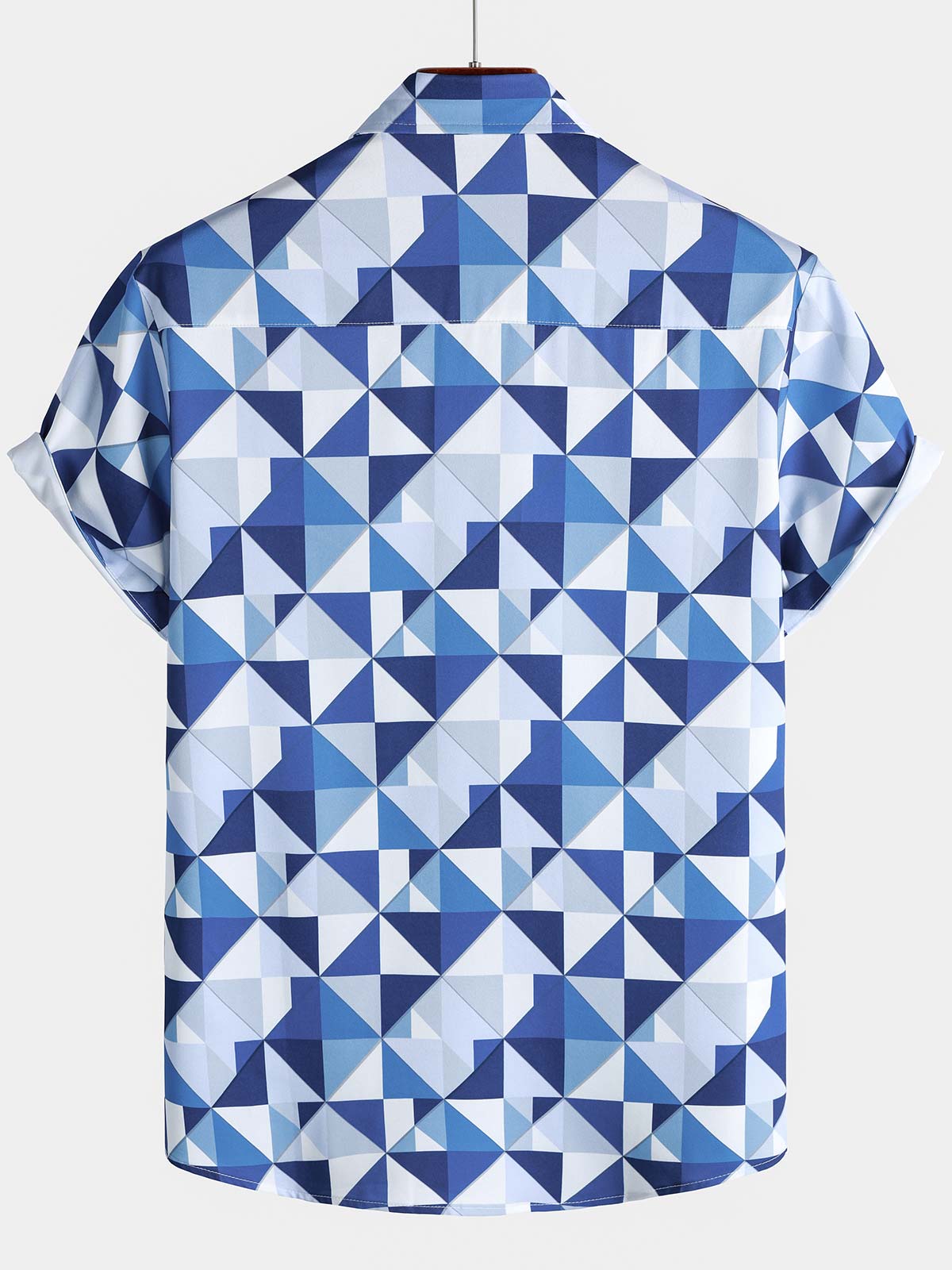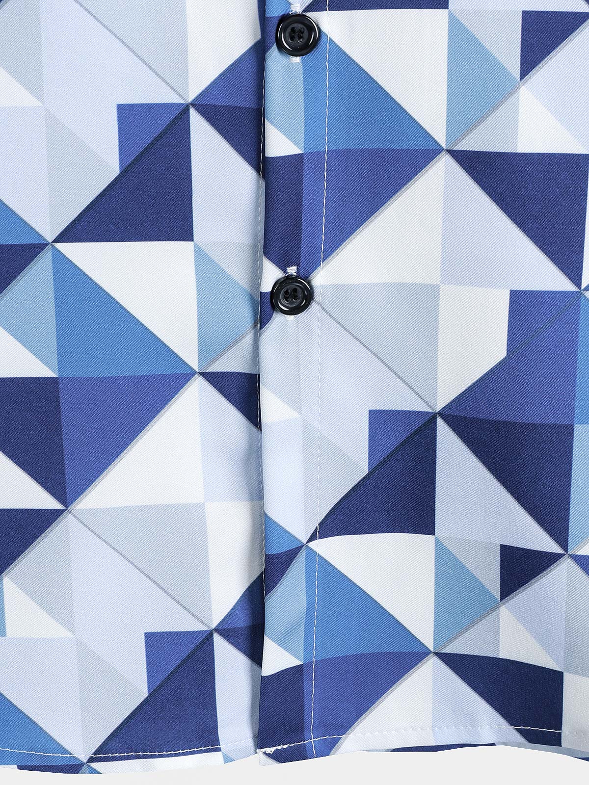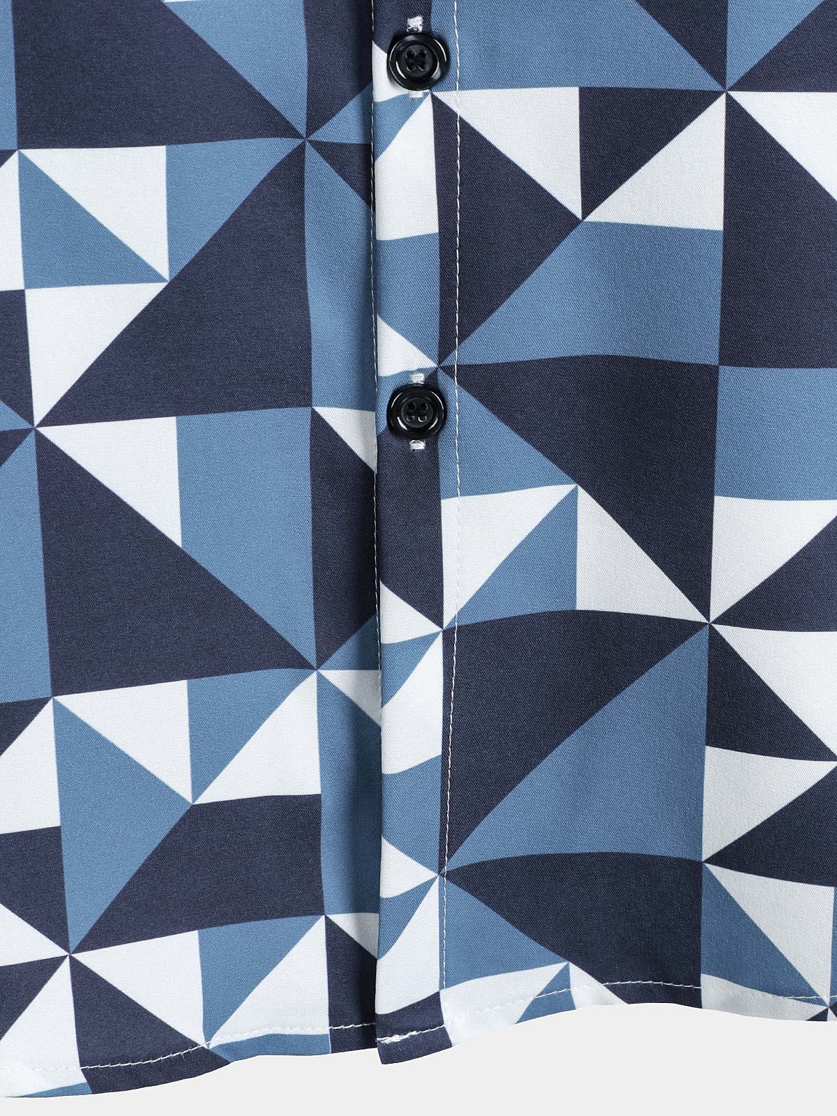 Men's Casual Art Blue and White Triangle Geometric Print Short Sleeve Summer Beach Button Up Shirt
