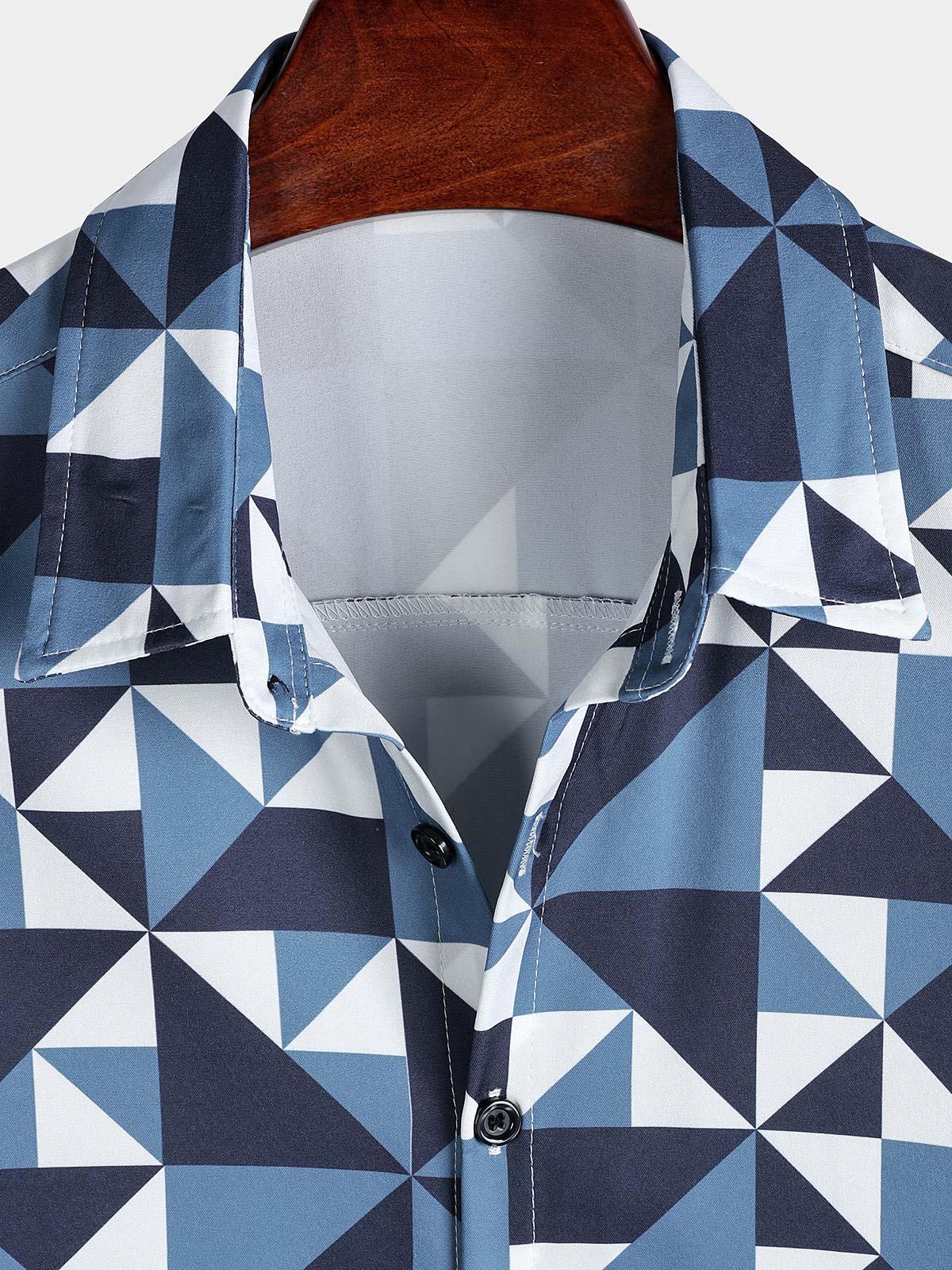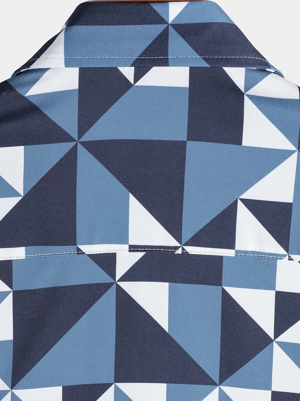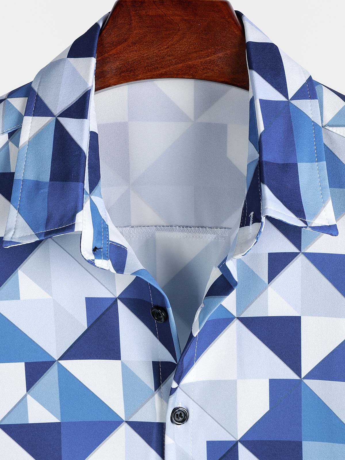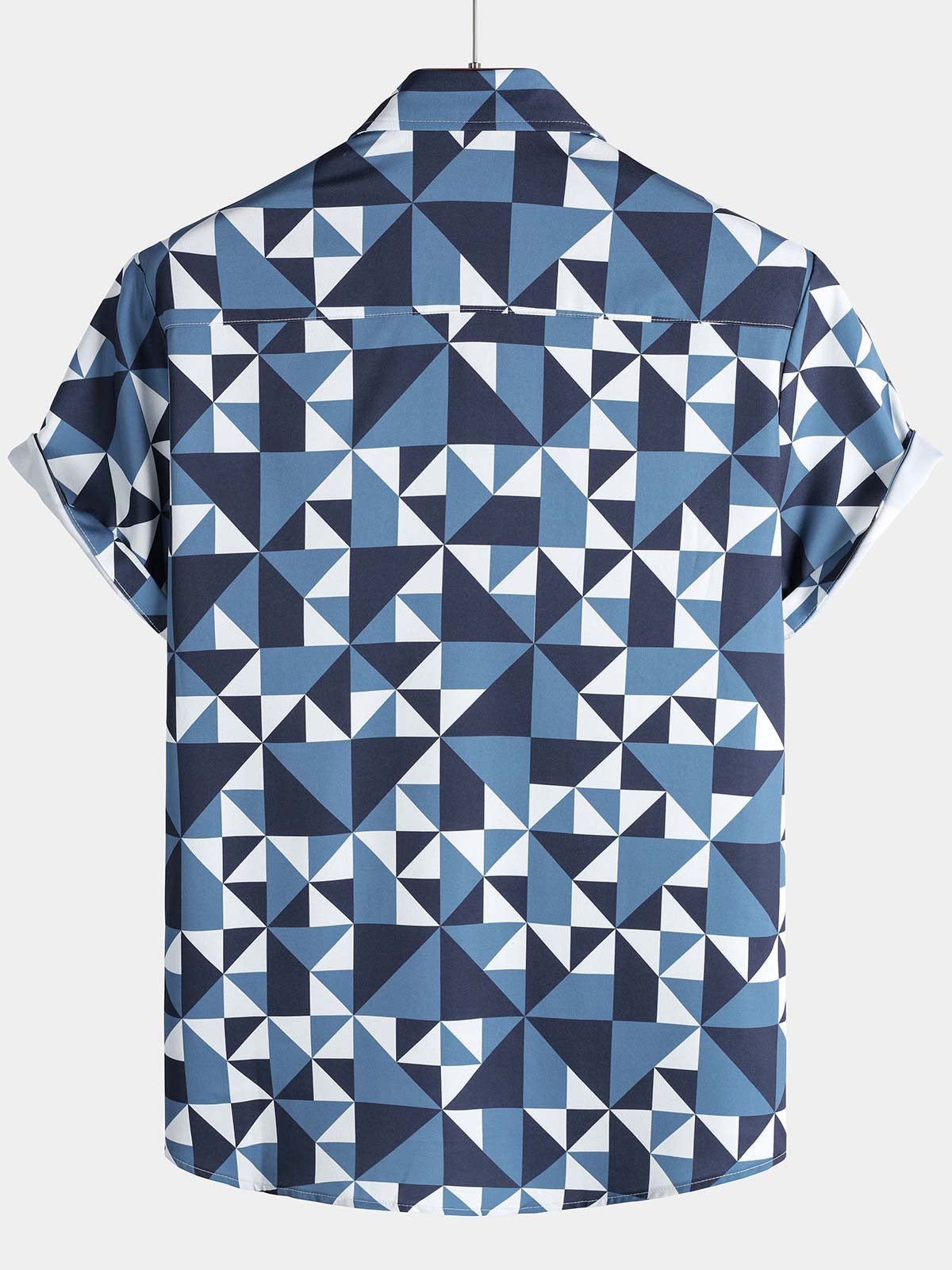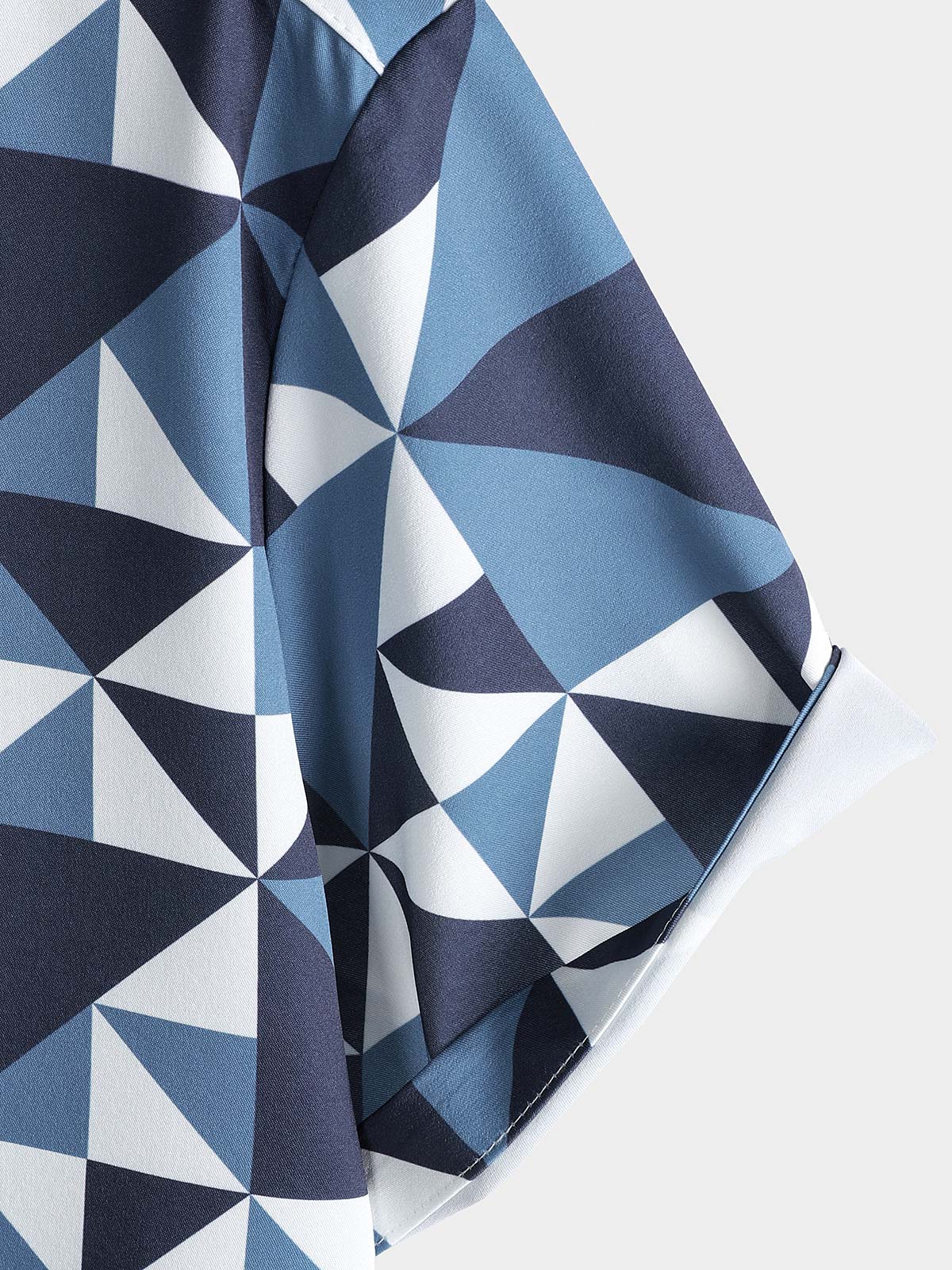 Men's Casual Art Blue and White Triangle Geometric Print Short Sleeve Summer Beach Button Up Shirt