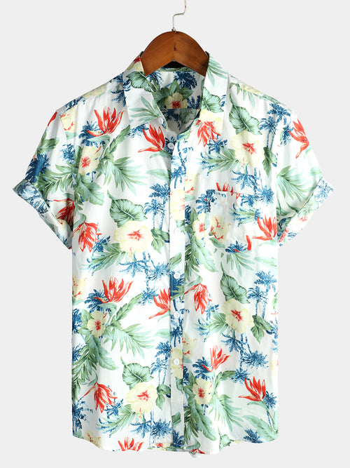 Men's Floral Cotton Hawaiian Pocket Shirt