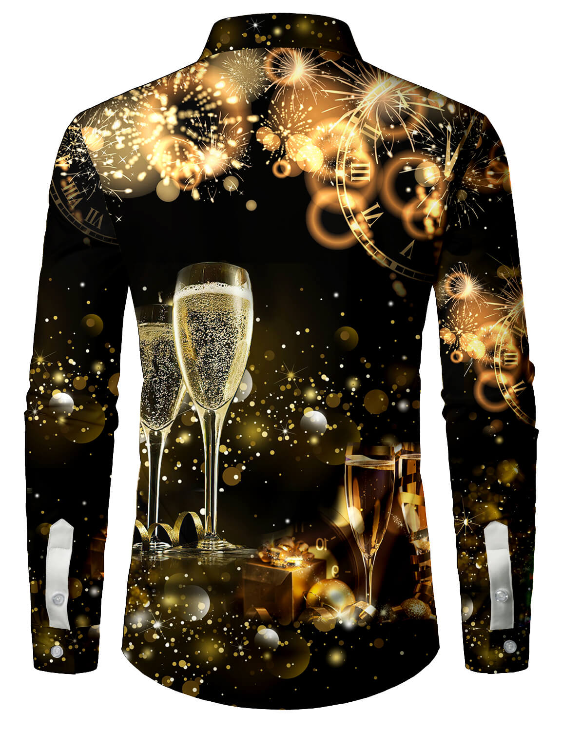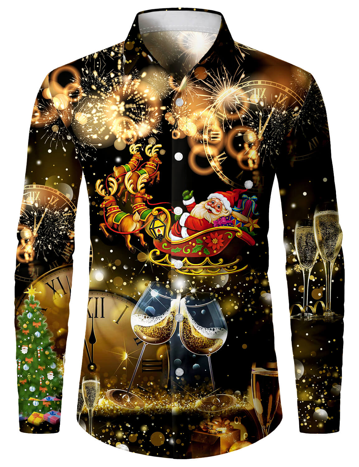 Men's Christmas Santa Print Xmas New Year Holiday Long Sleeve Shirt