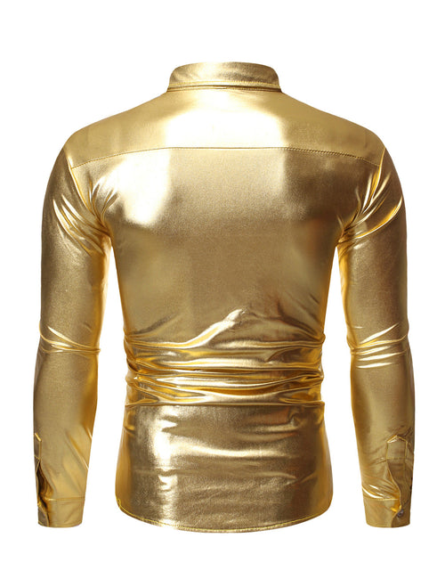 Men's Sequin Metallic Prom Party Button Long Sleeve Shirt