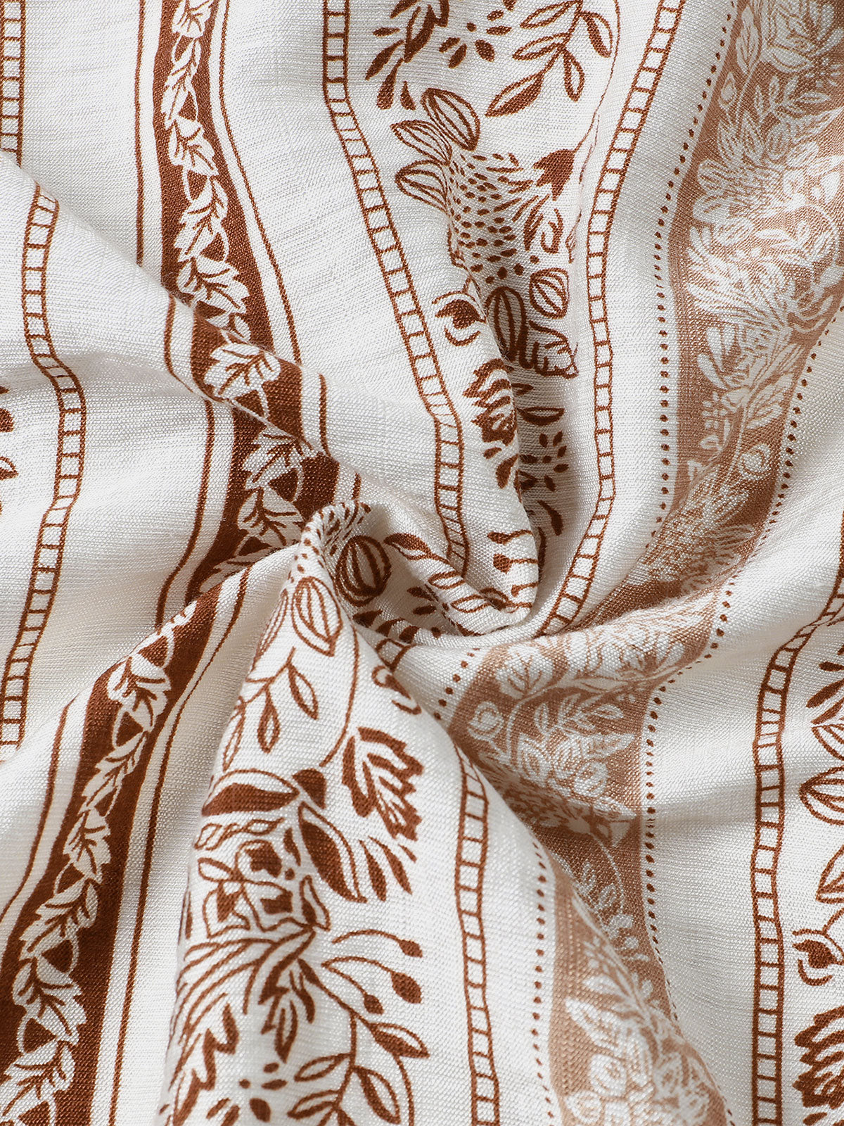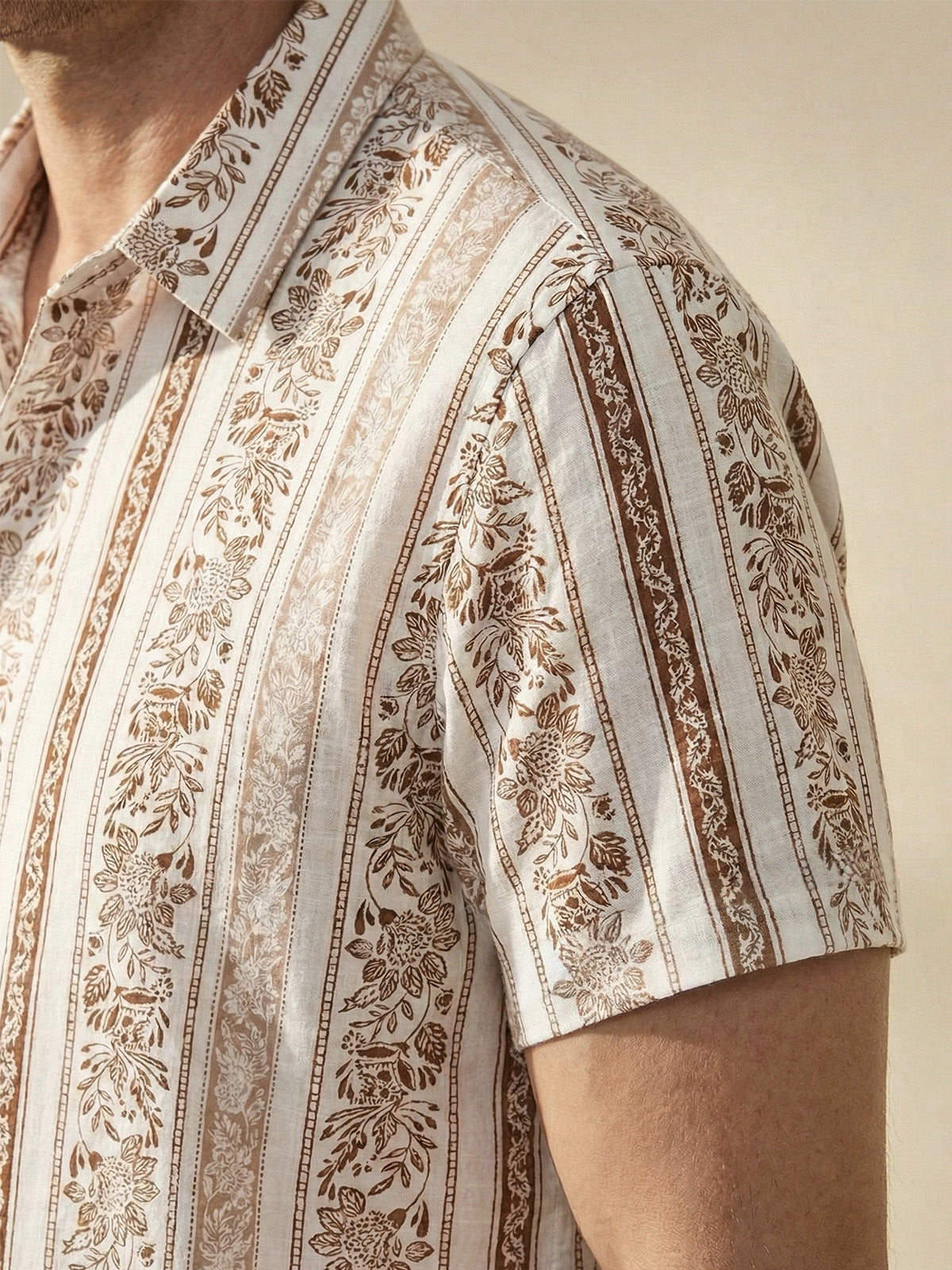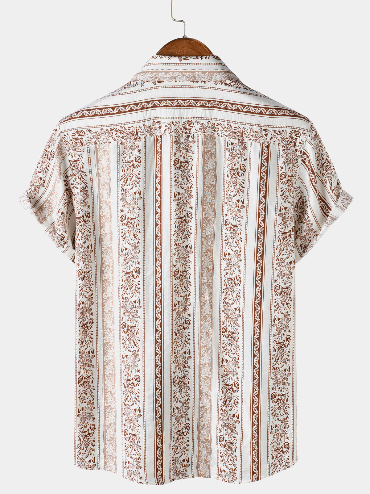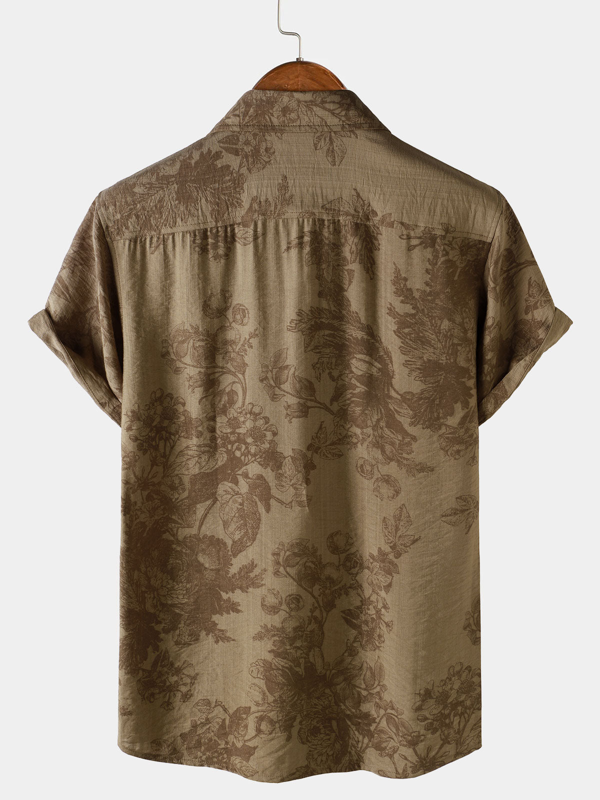 Men's Vintage Brown Floral Holiday Short Sleeve Shirt