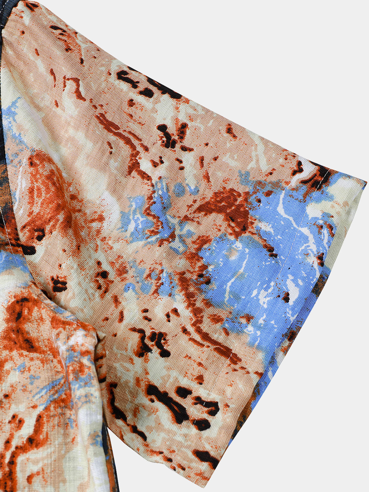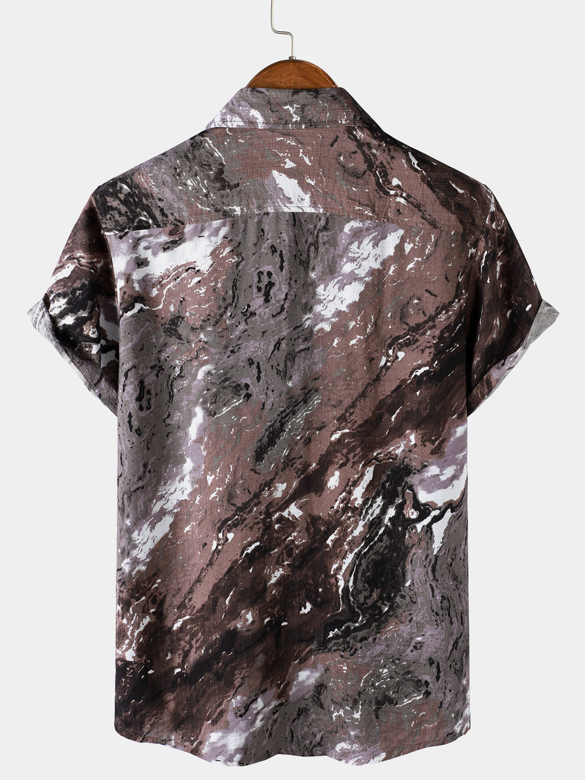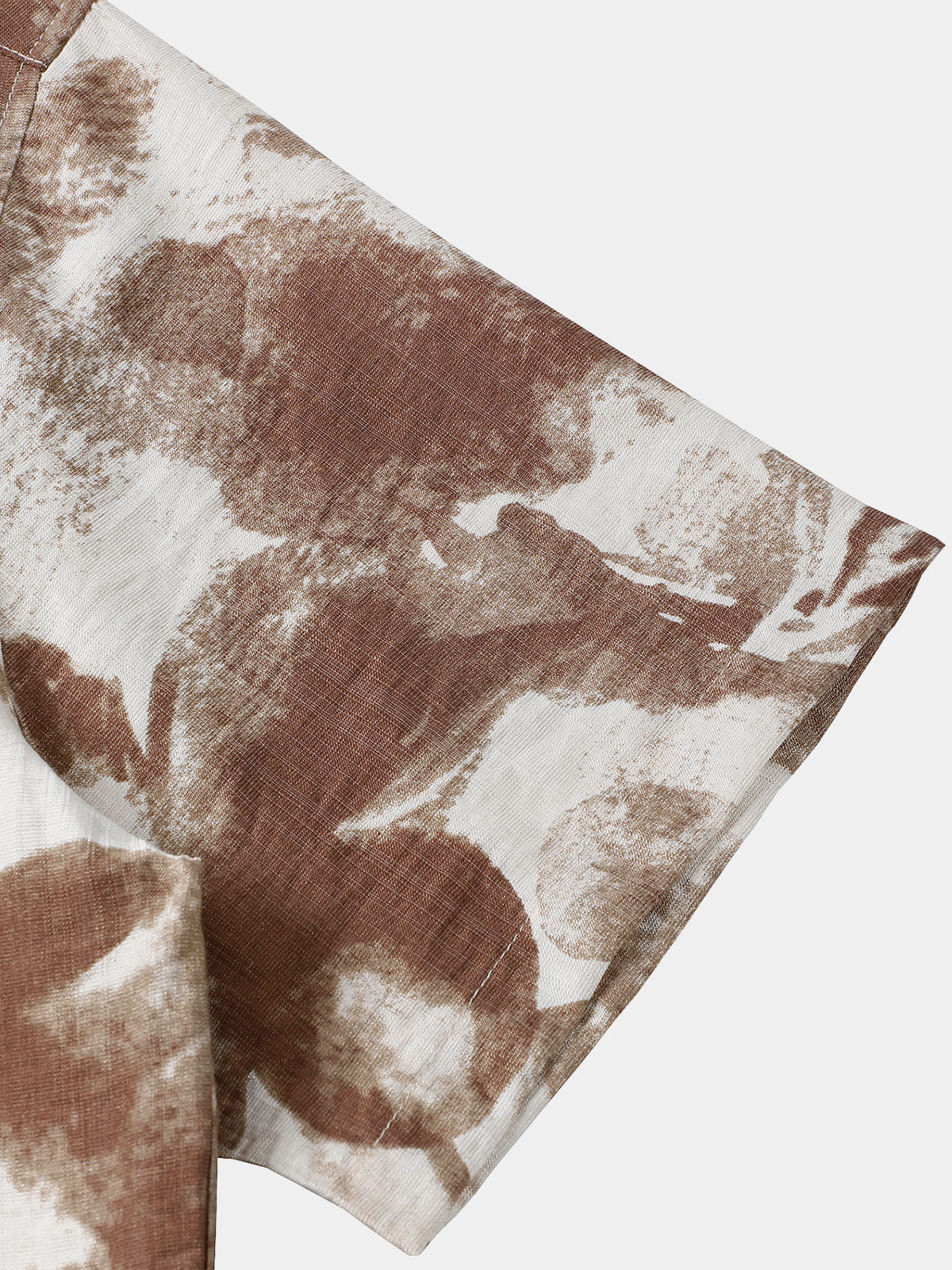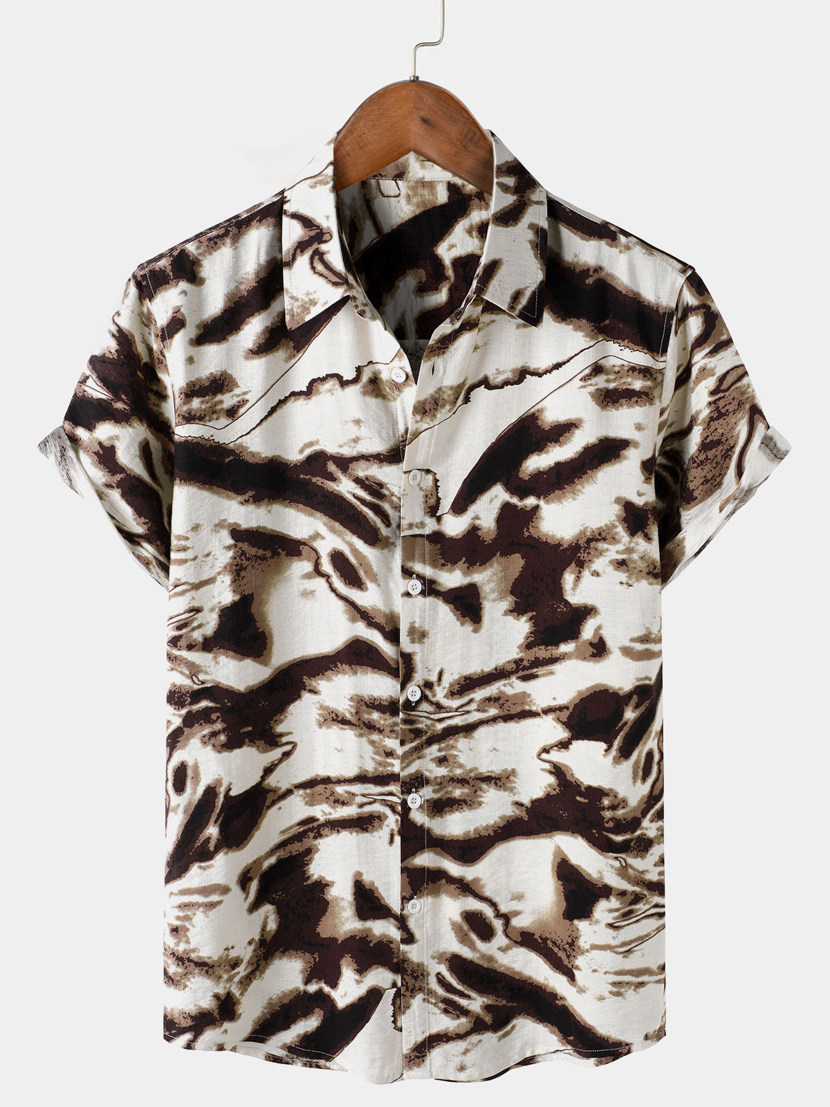 Men's Brown Abstract Art Vacation Short Sleeve Shirt