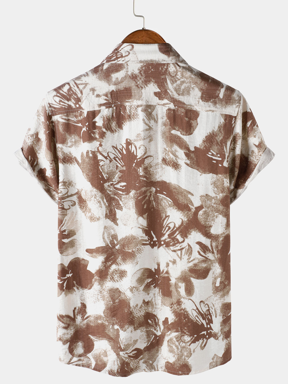 Men's Floral Vacation Cotton Short Sleeve Shirt