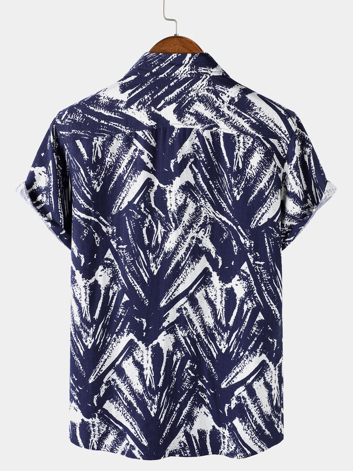 Men's Navy Blue Abstract Geometric Print Short Sleeve Shirt