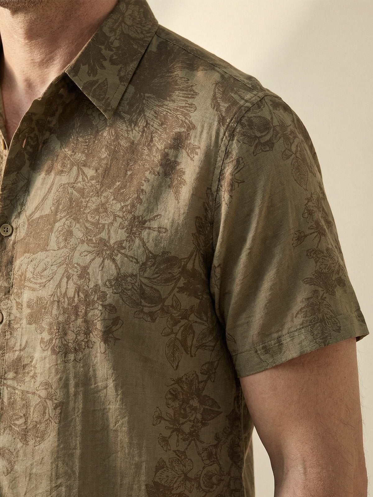 Men's Abstract Botanical Button Up Short Sleeve Shirt