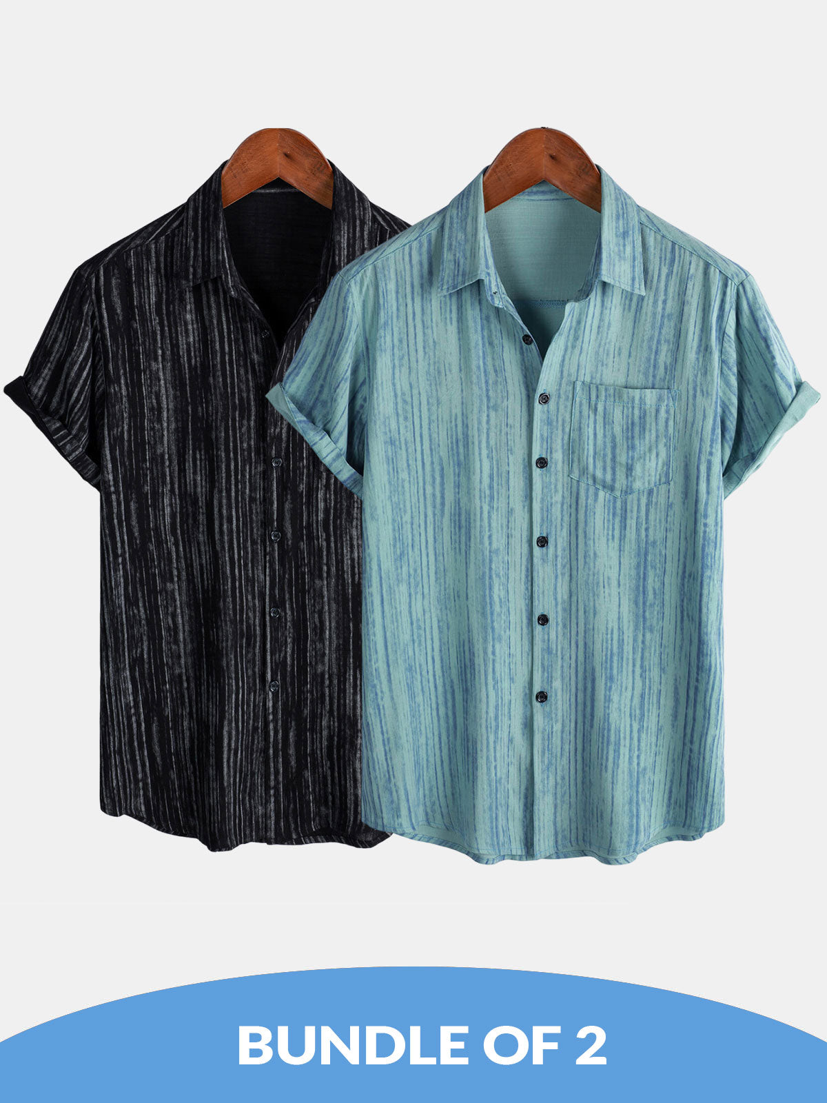 Bundle Of 2 | Men's Breathable Short Sleeve Pocket Striped Shirts