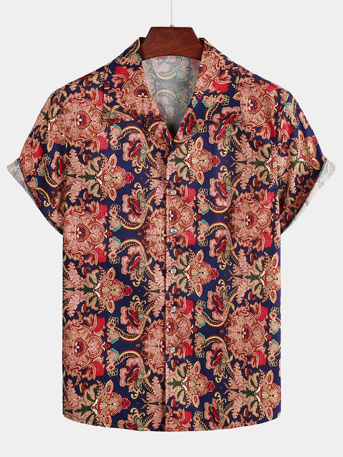 Men's Paisley Cotton Short Sleeve Button Up Vintage Shirt