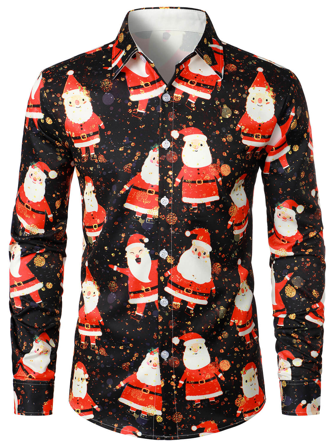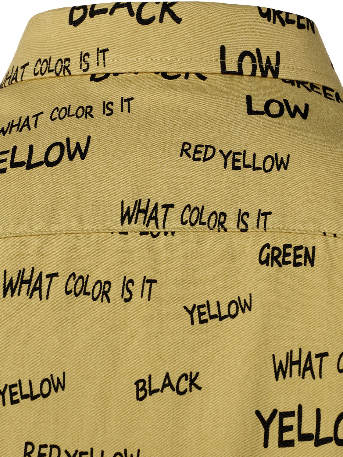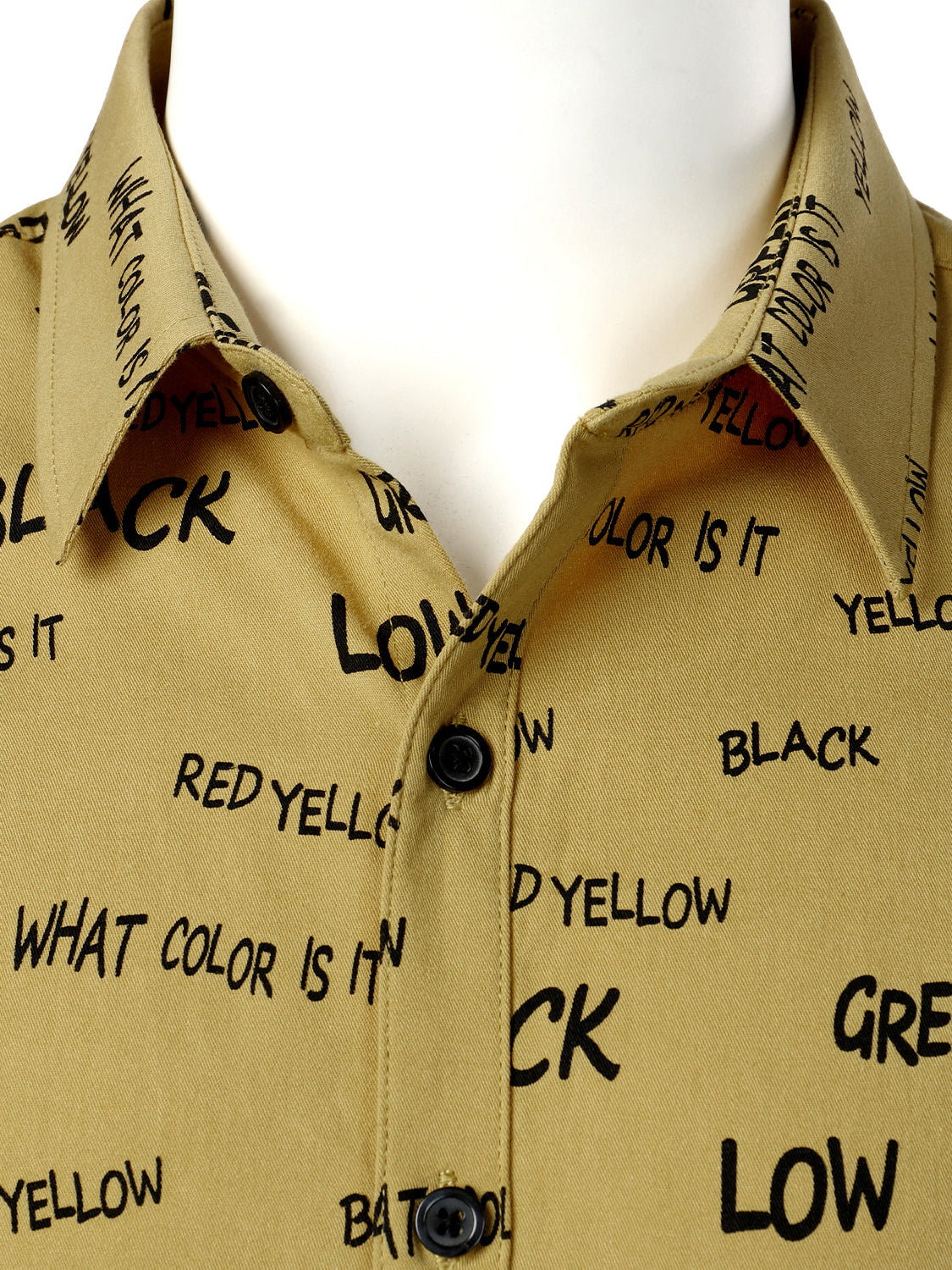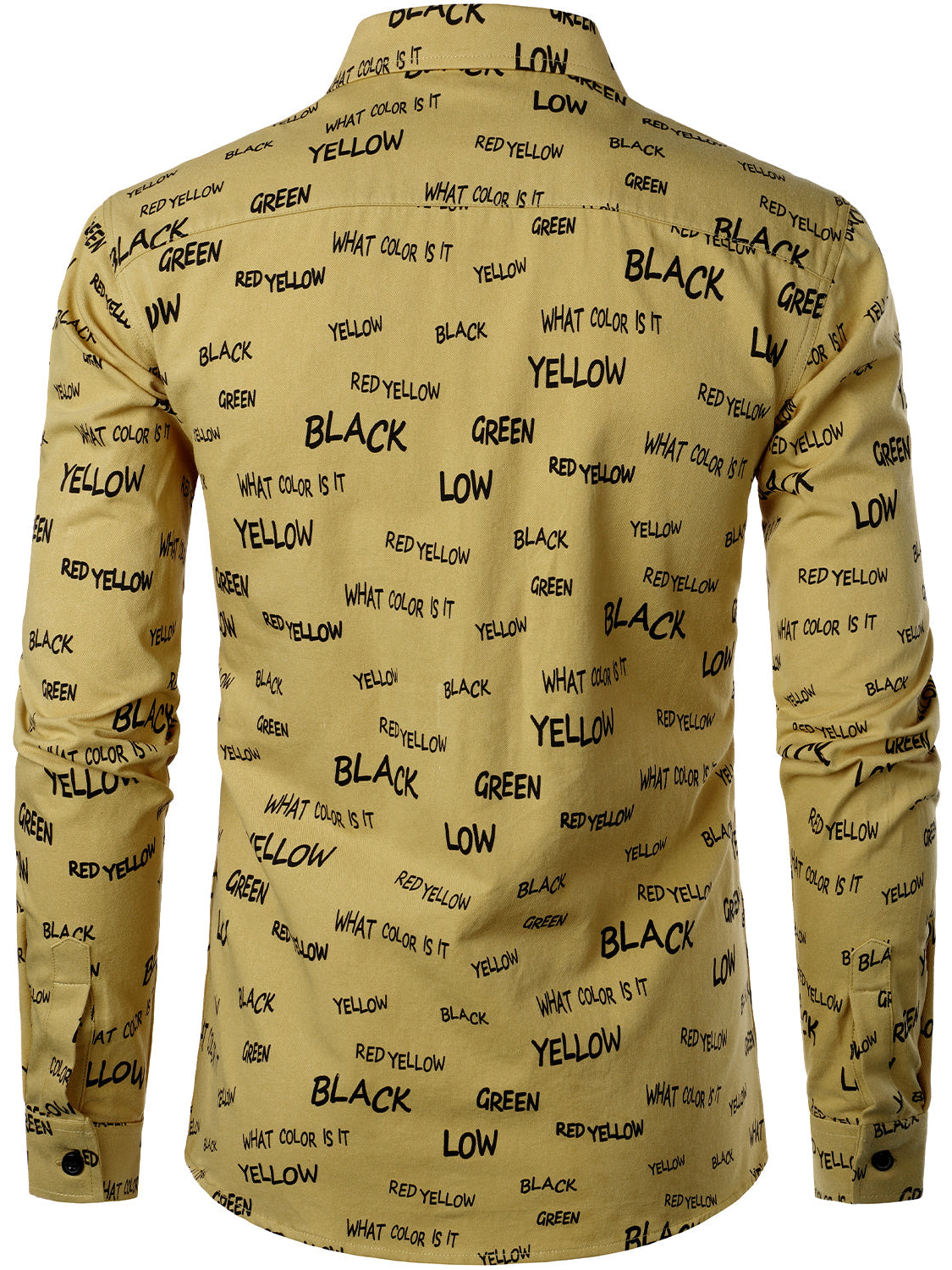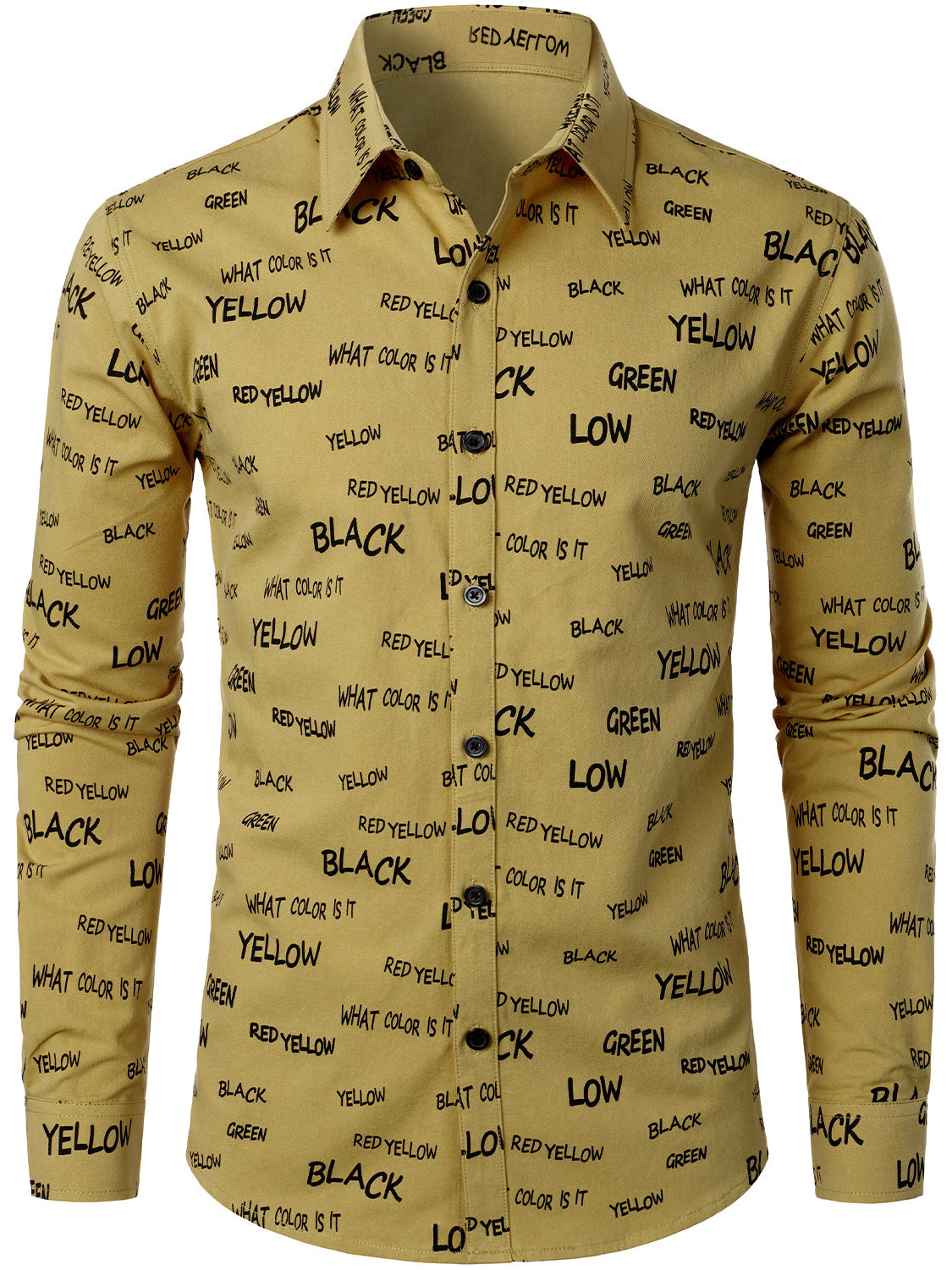 Men's Cotton Alphabet Letter Print Yellow Button Long Sleeve Shirt
