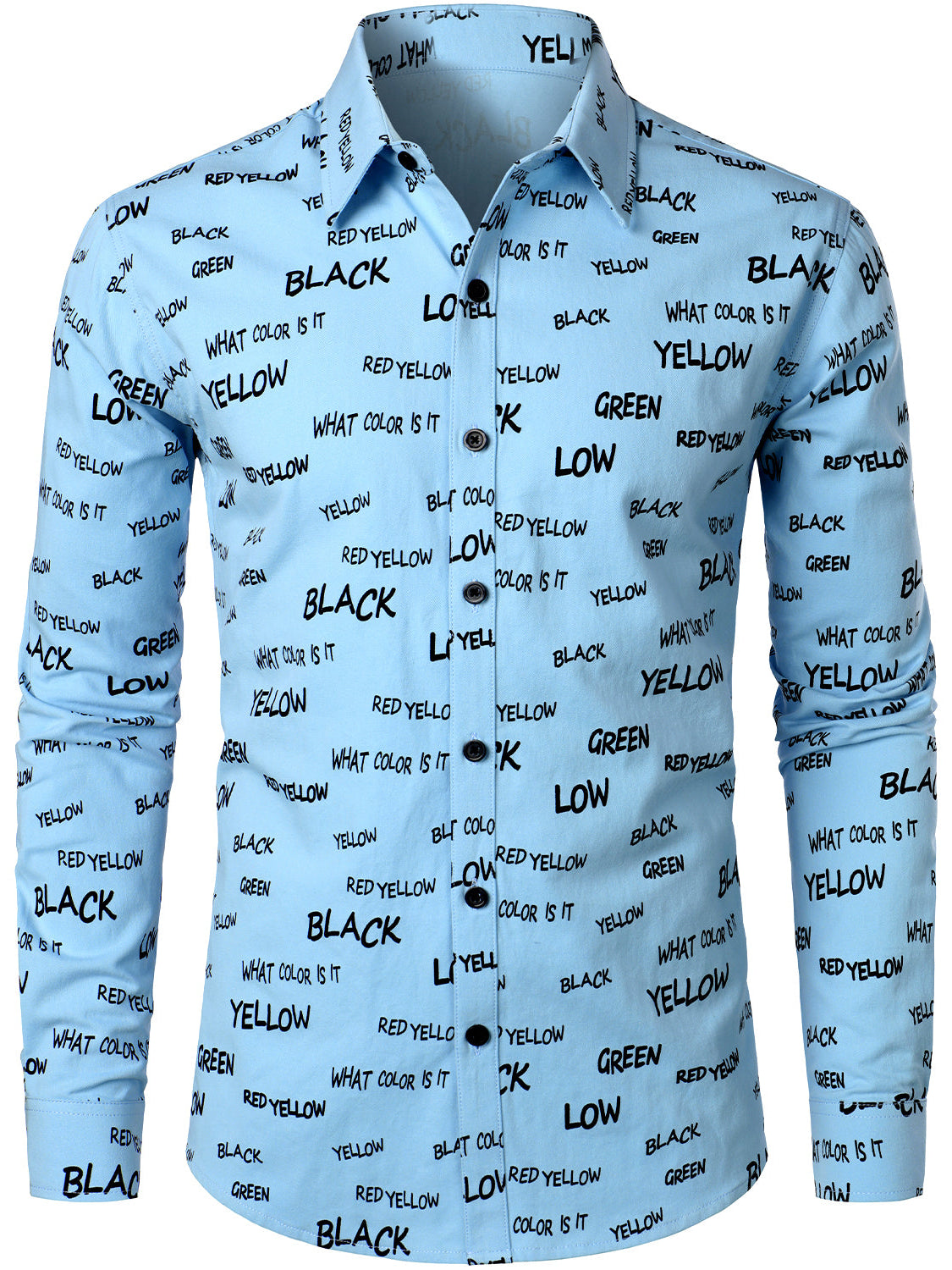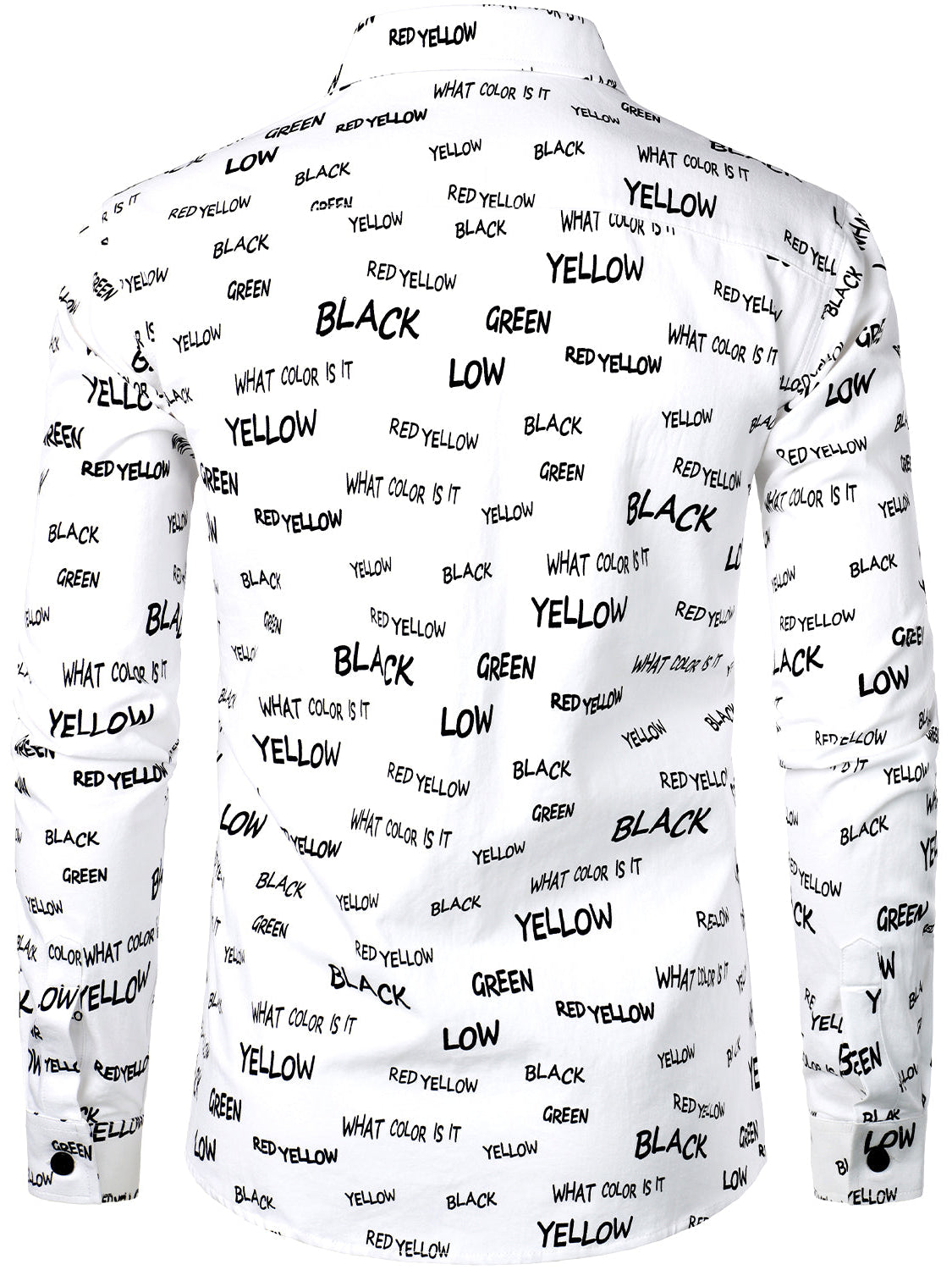 Yellow Men's Cotton Alphabet Letter Print Yellow Button Long Sleeve Shirt White Men's Cotton Alphabet Letter Print Yellow Button Long Sleeve Shirt Light Blue Men's Cotton Alphabet Letter Print Yellow Button Long Sleeve Shirt