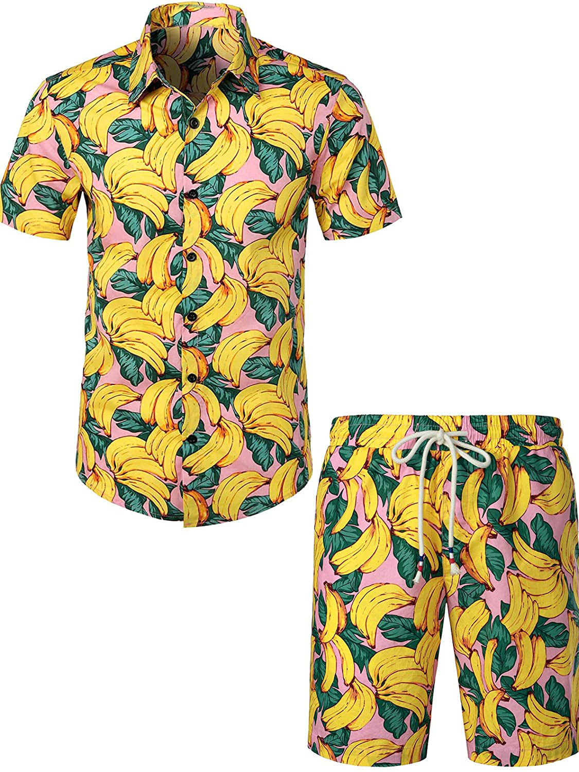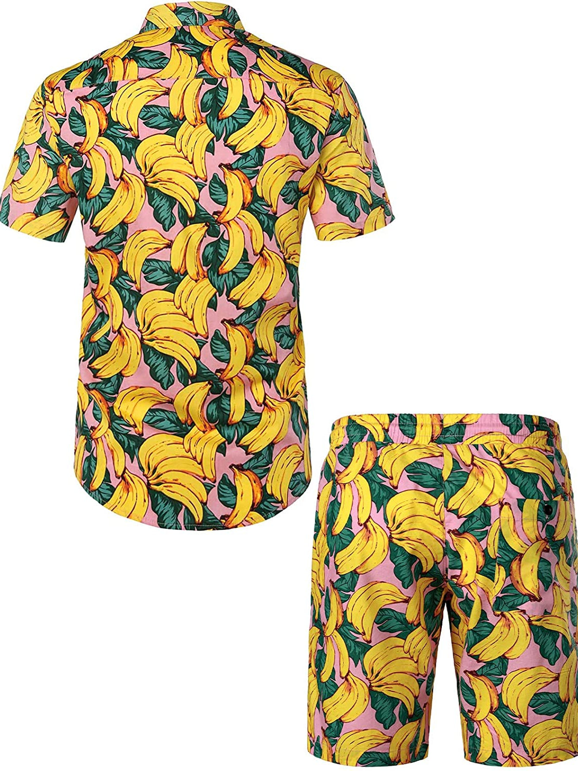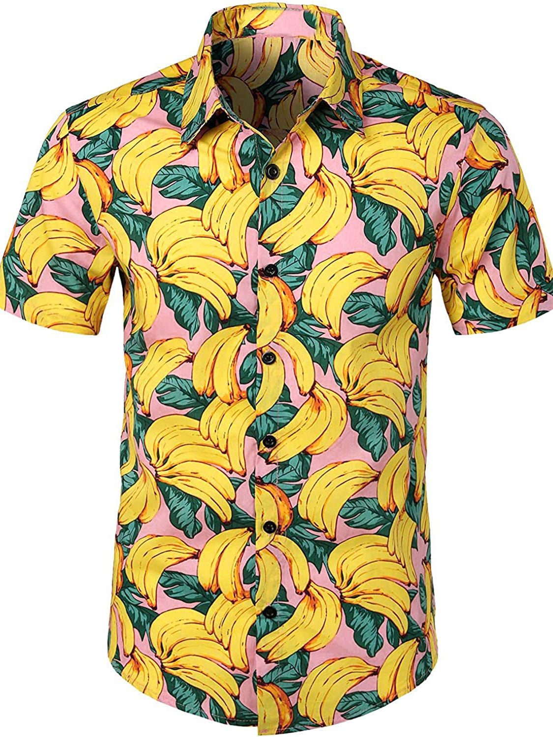 Yellow Men's Yellow Retro Hawaiian Short Sleeve Shirts