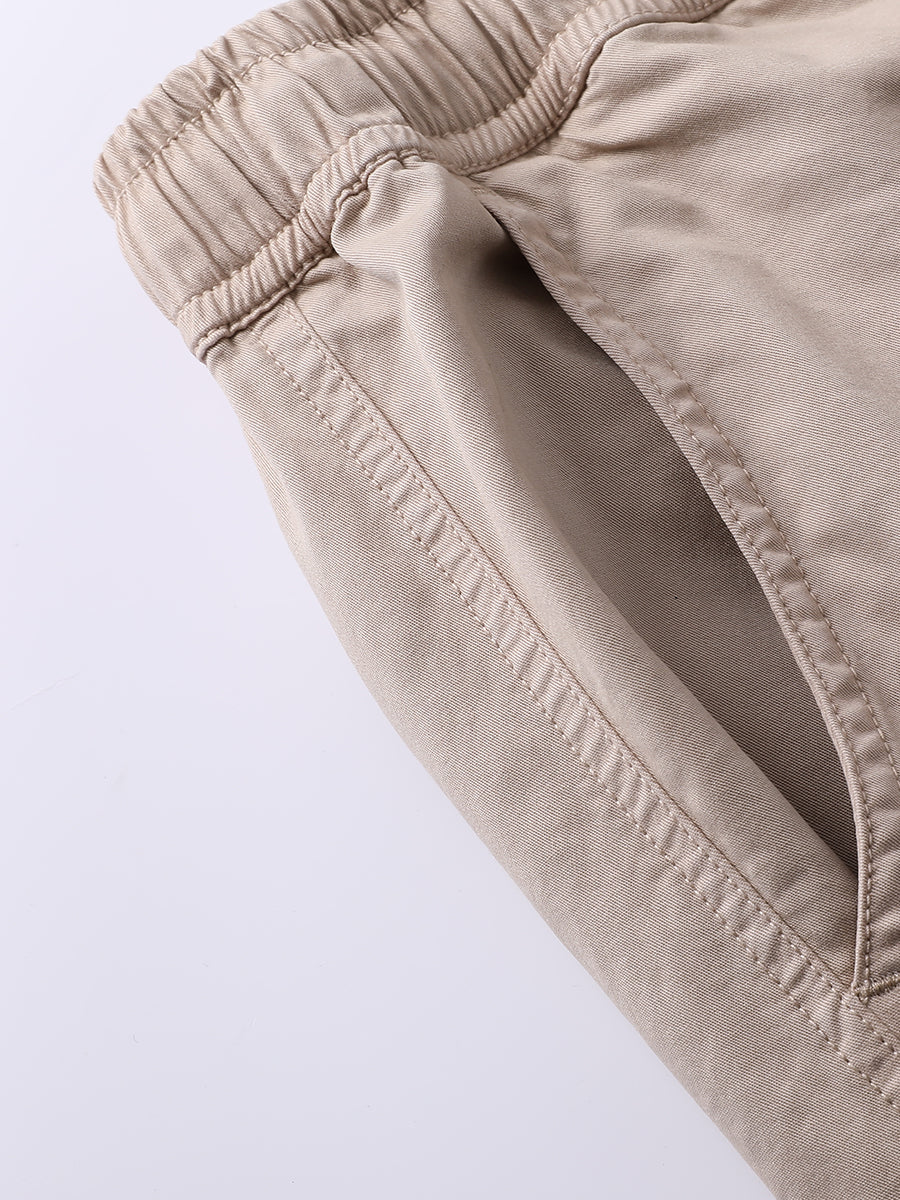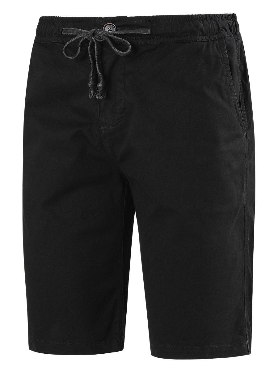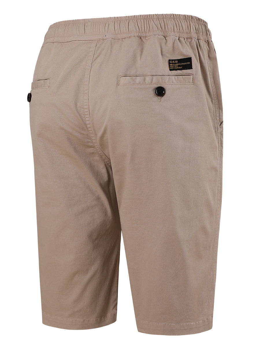 Khaki Men's Casual Solid Color Cotton Shorts Black Men's Casual Solid Color Cotton Shorts
