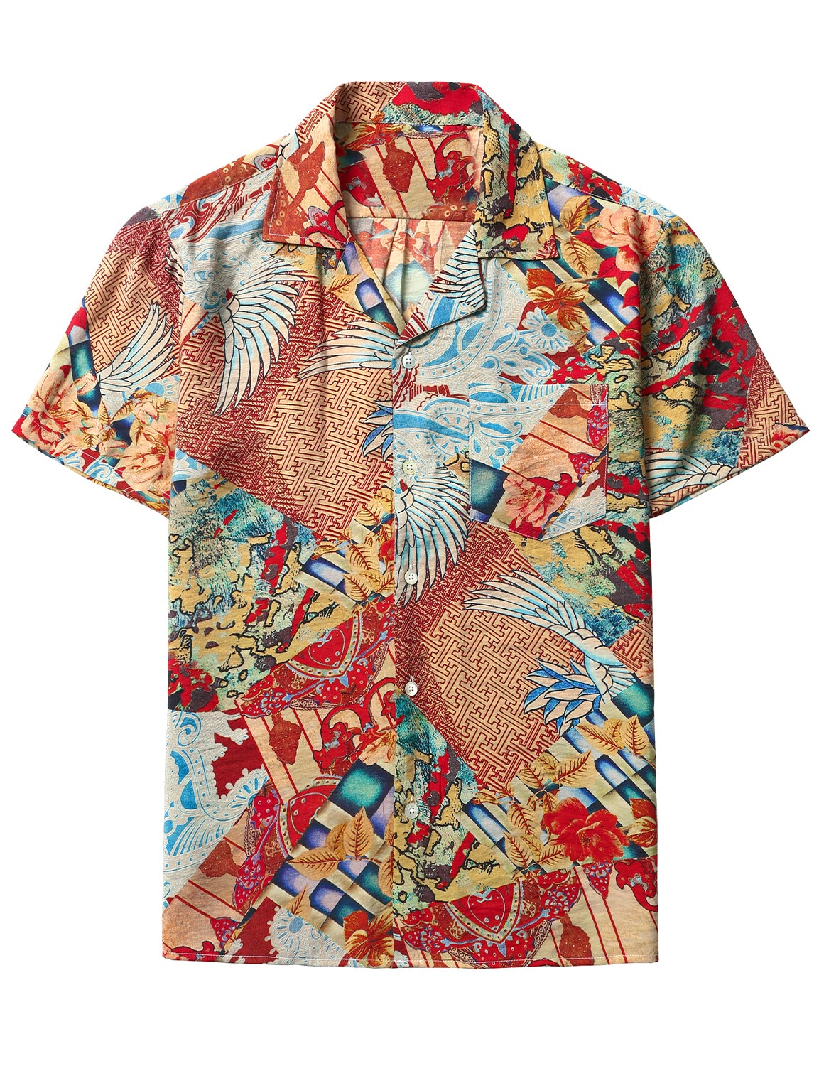 - A vibrant print adds tropical appeal to this casual aloha shirt with unique vintage pattern.