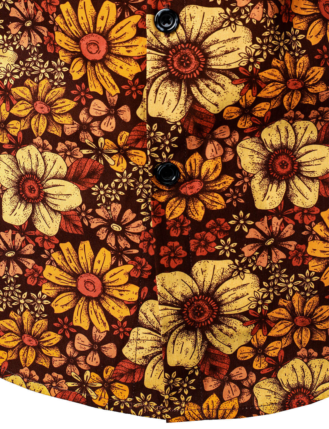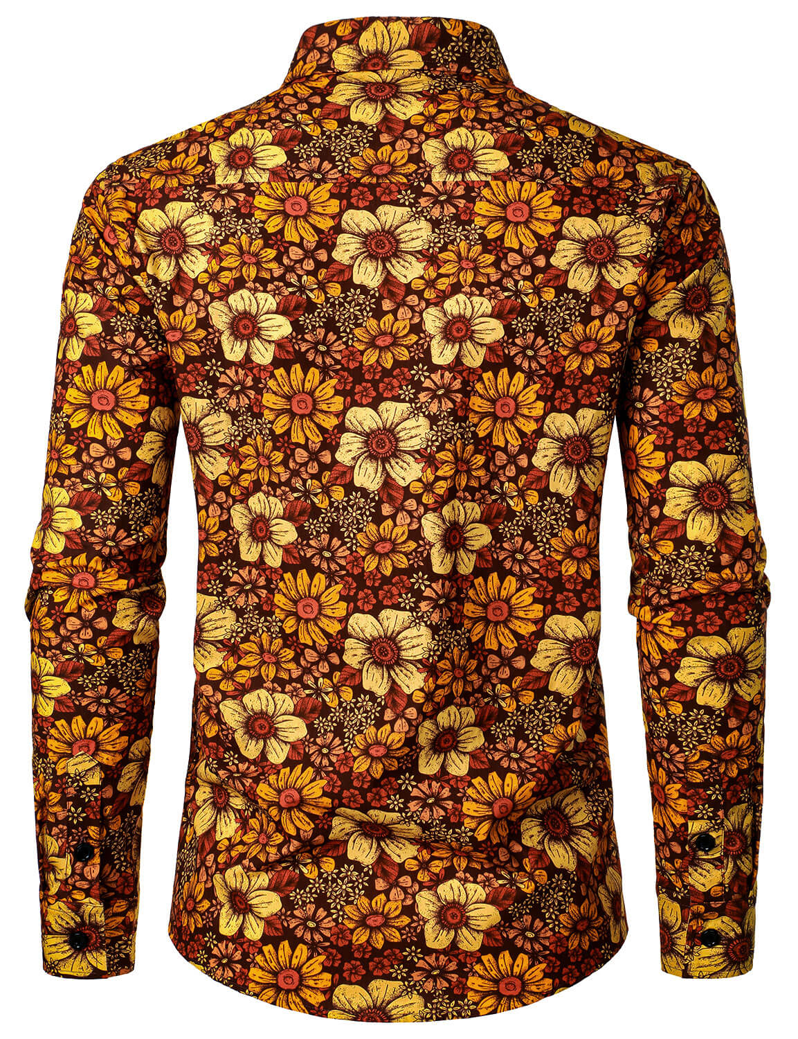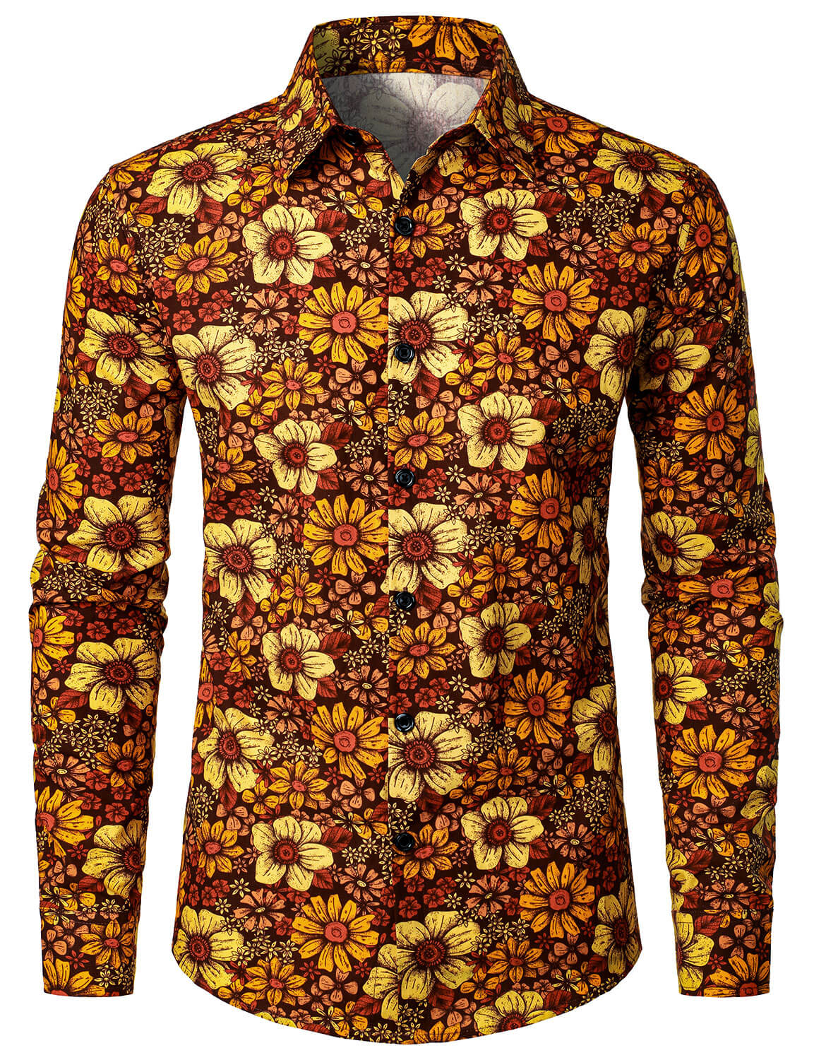 Men's Vintage Floral Button Up 70s Long Sleeve Retro Brown Shirt