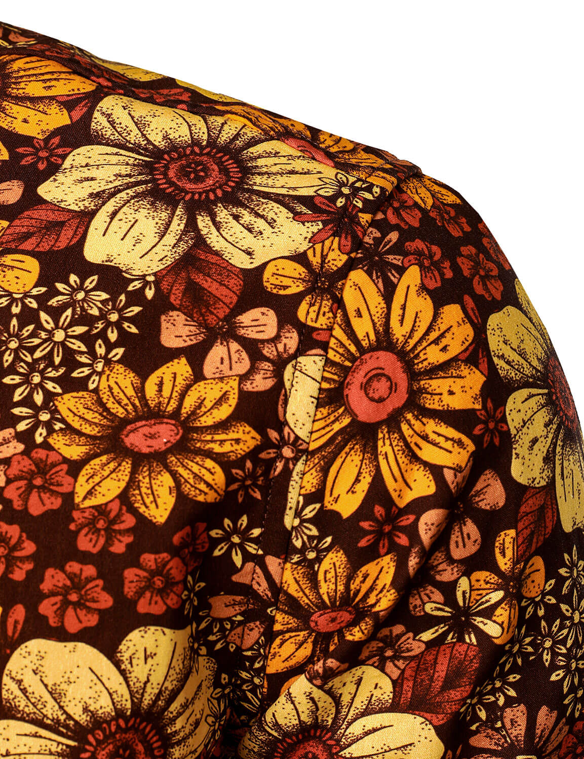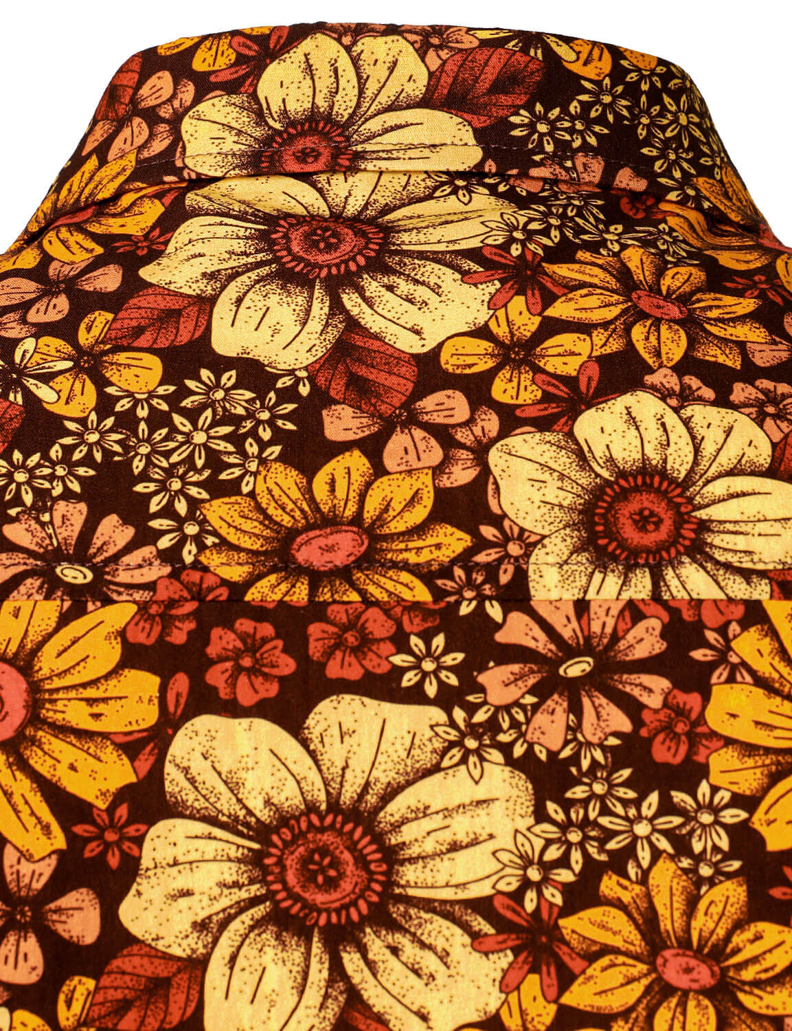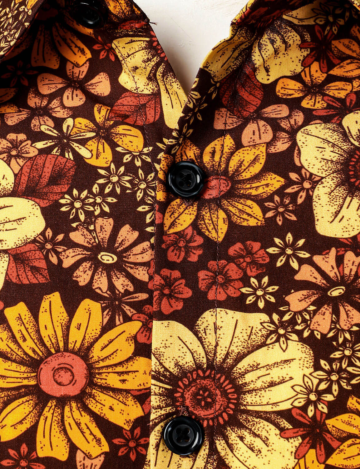 Men's Vintage Floral Button Up 70s Long Sleeve Retro Brown Shirt