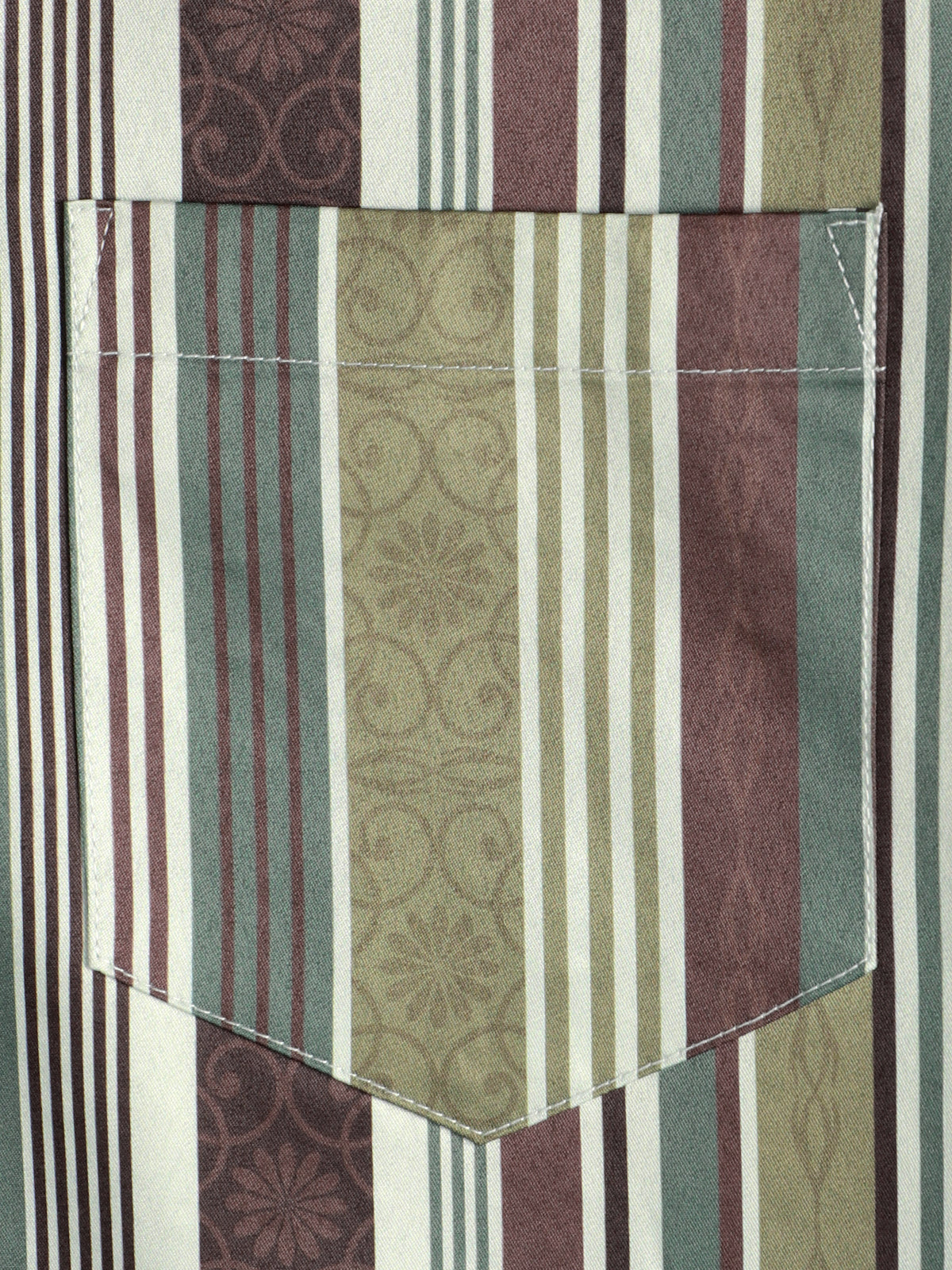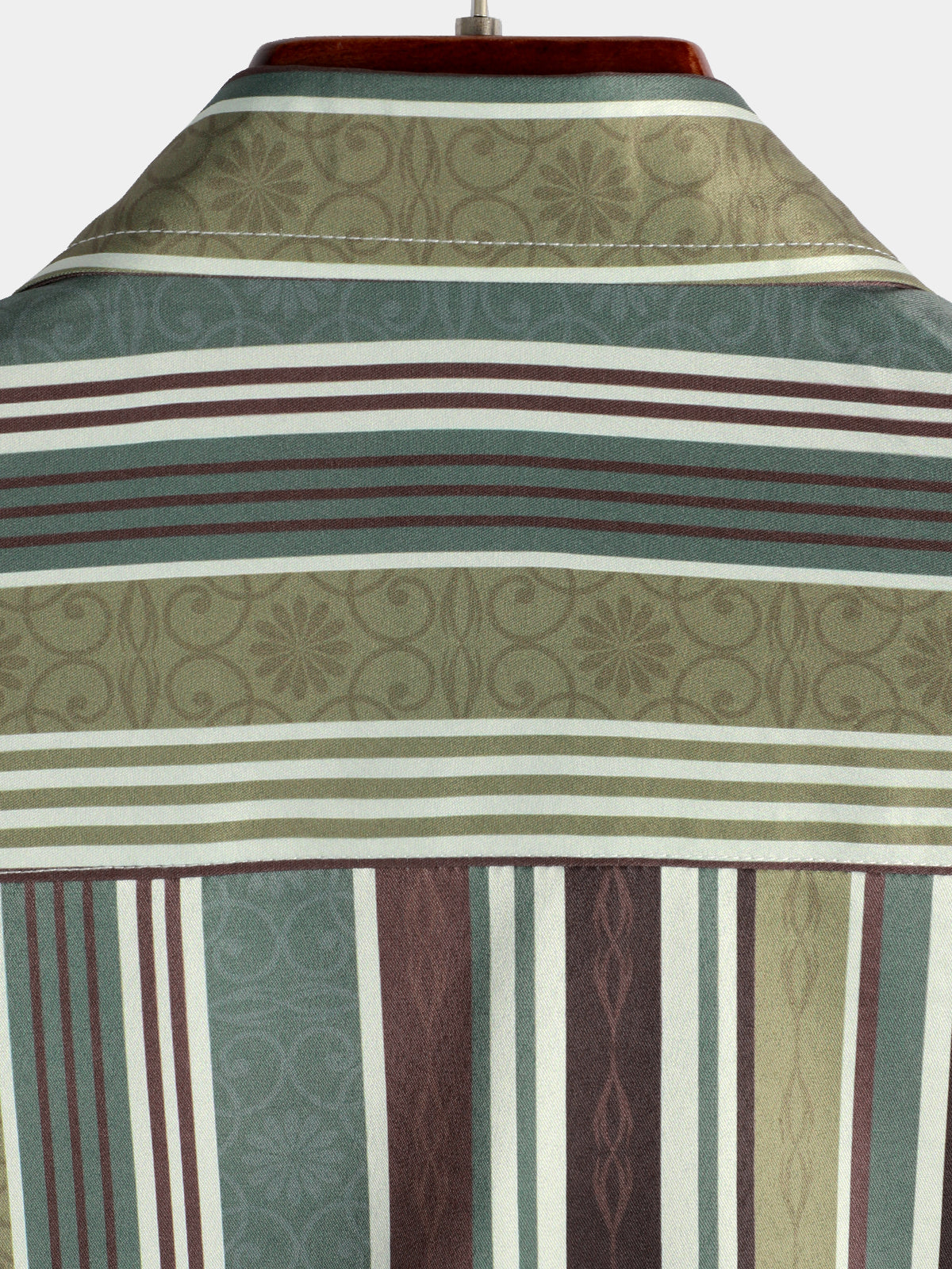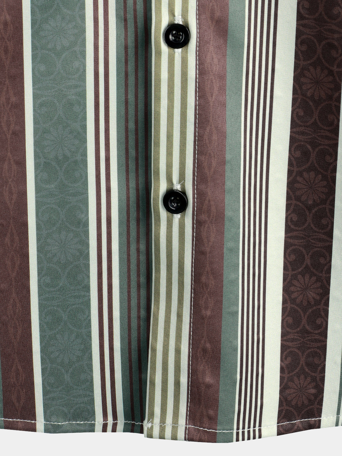 Men's Vintage Green And Brown Vertical Striped Button Up Pocket Short Sleeve Shirt