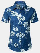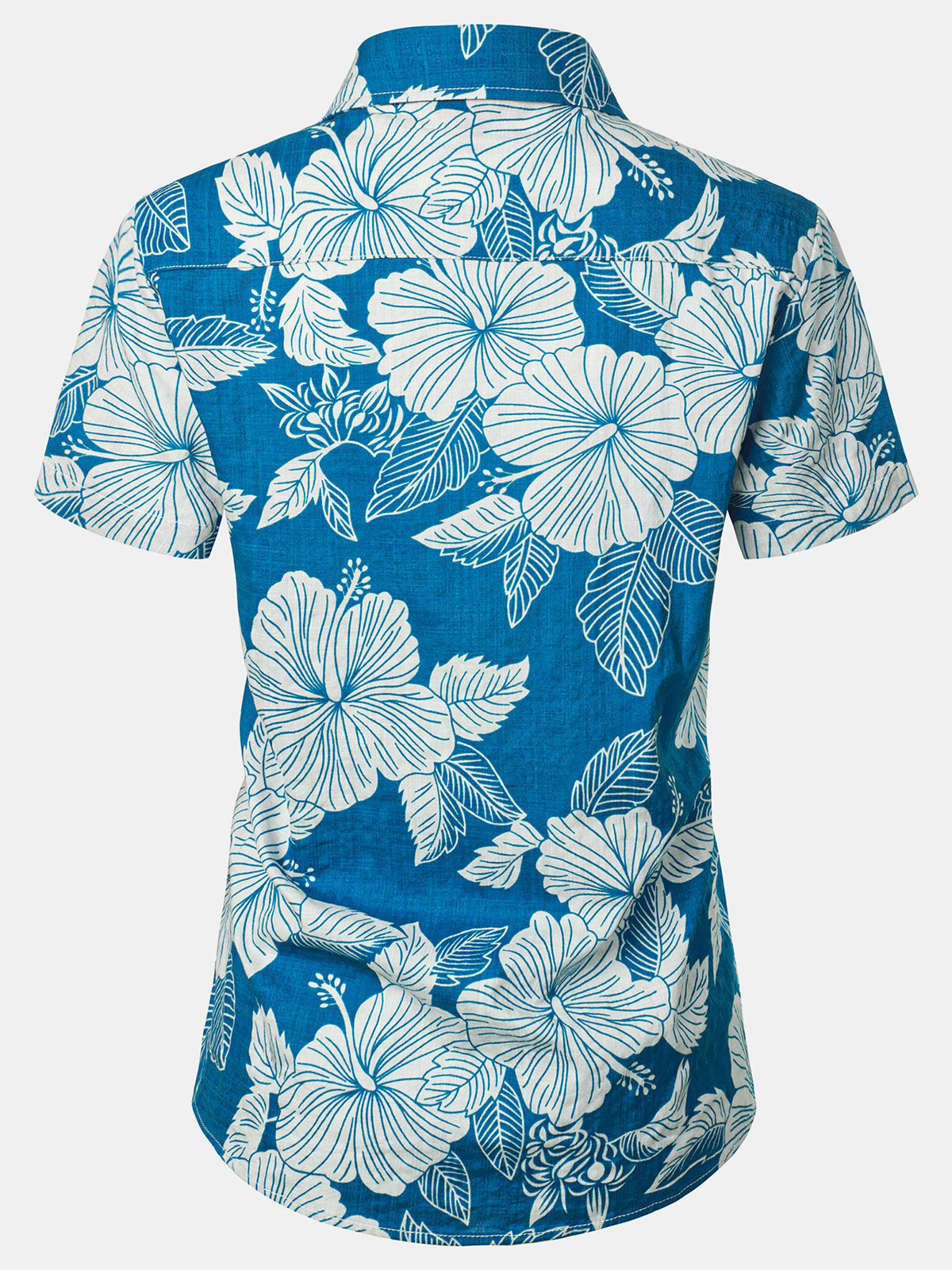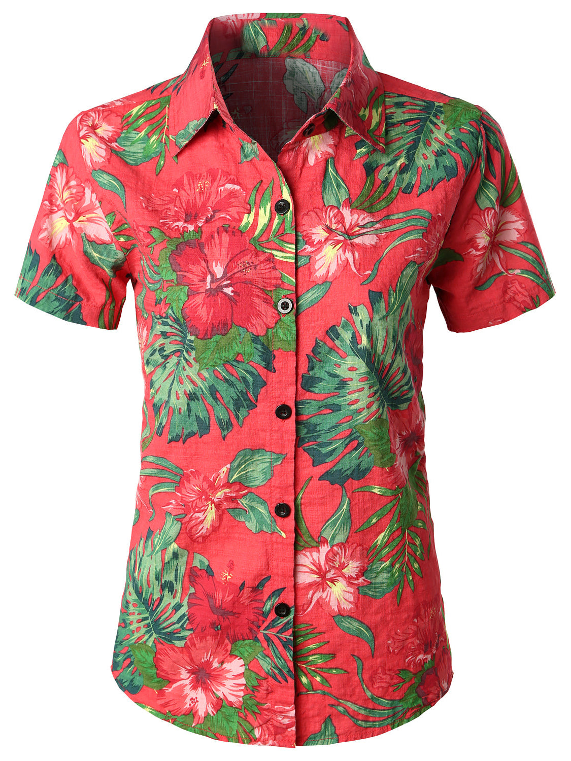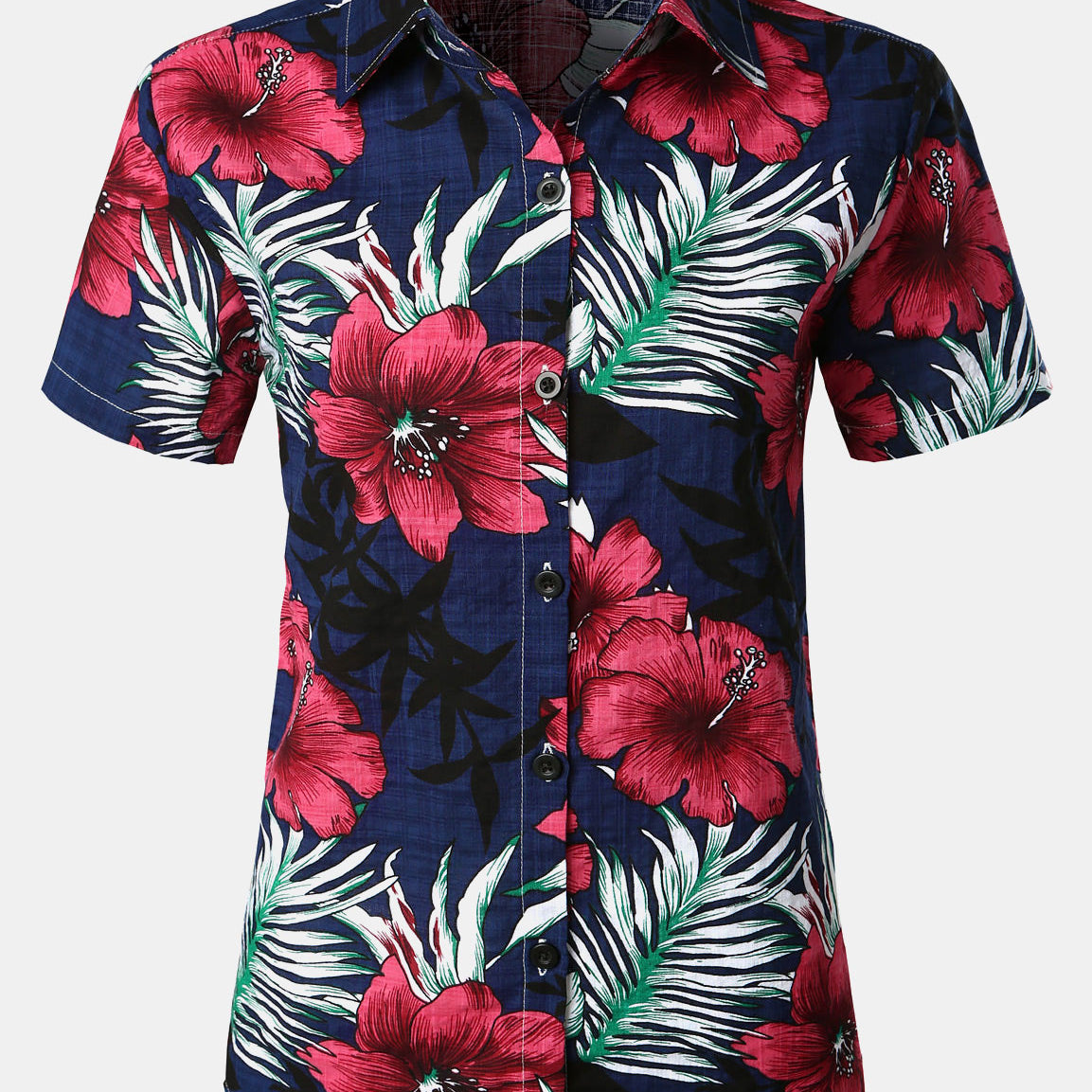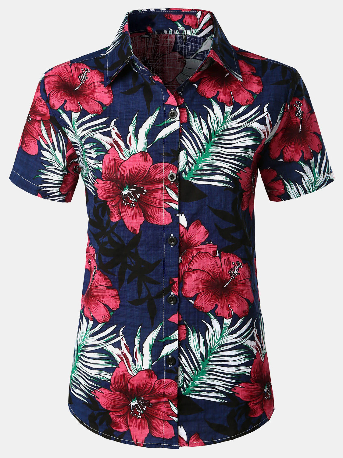 Women's Floral Print Blouse Flower Hawaiian Cotton Summer Aloha Short Sleeve Shirt