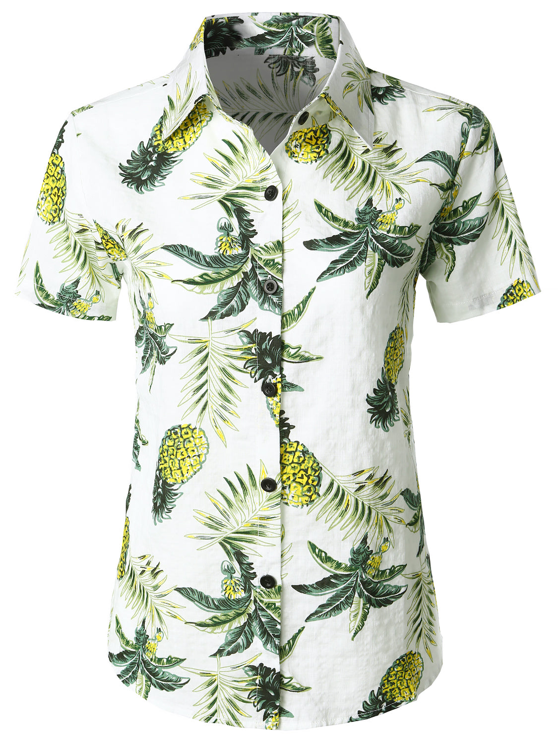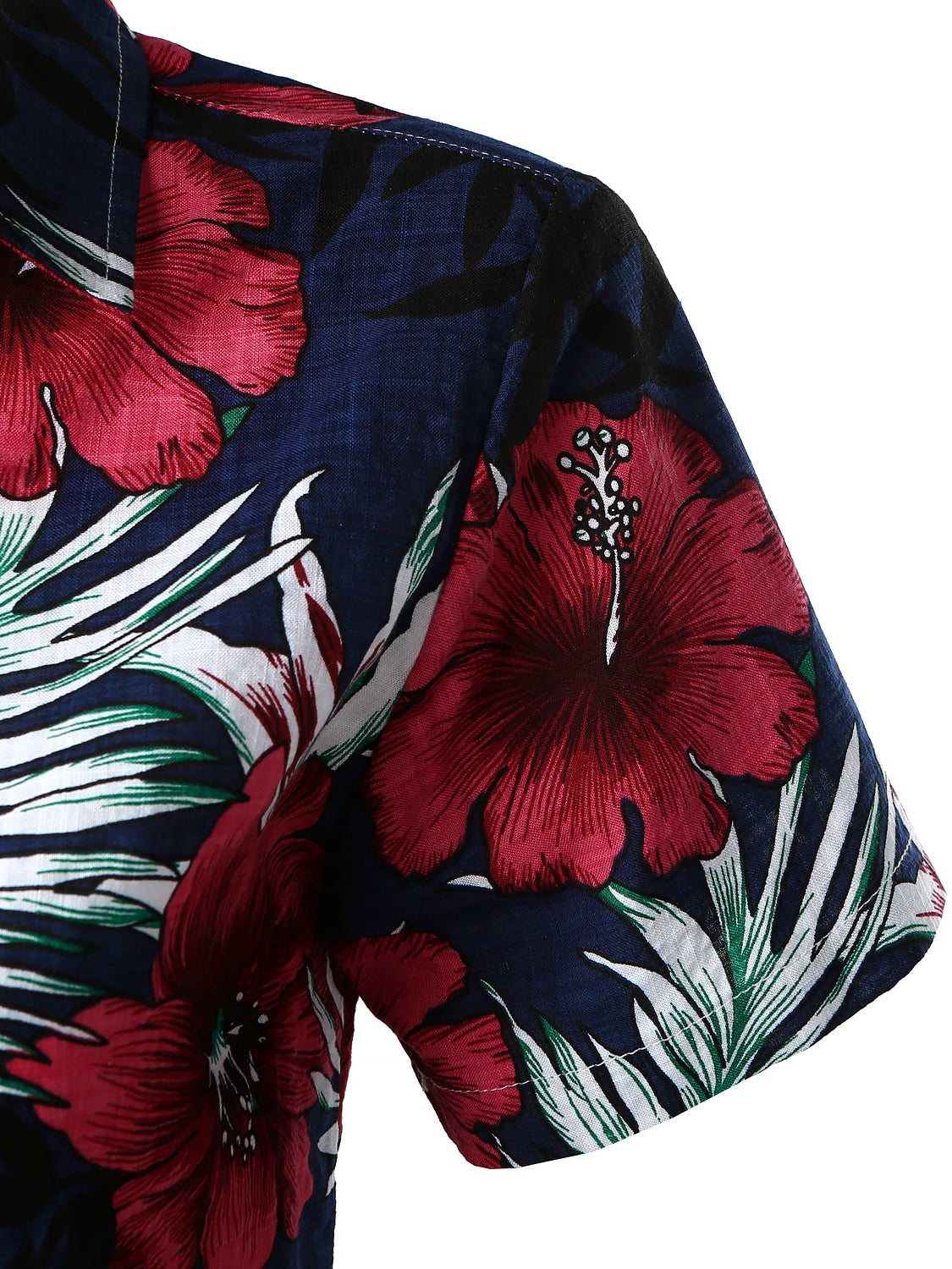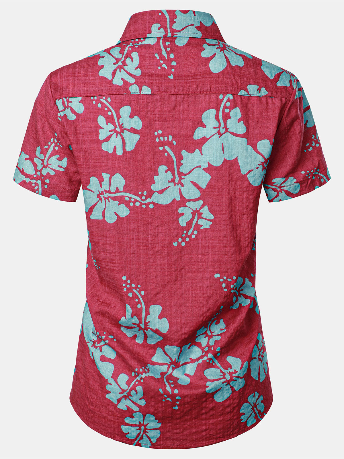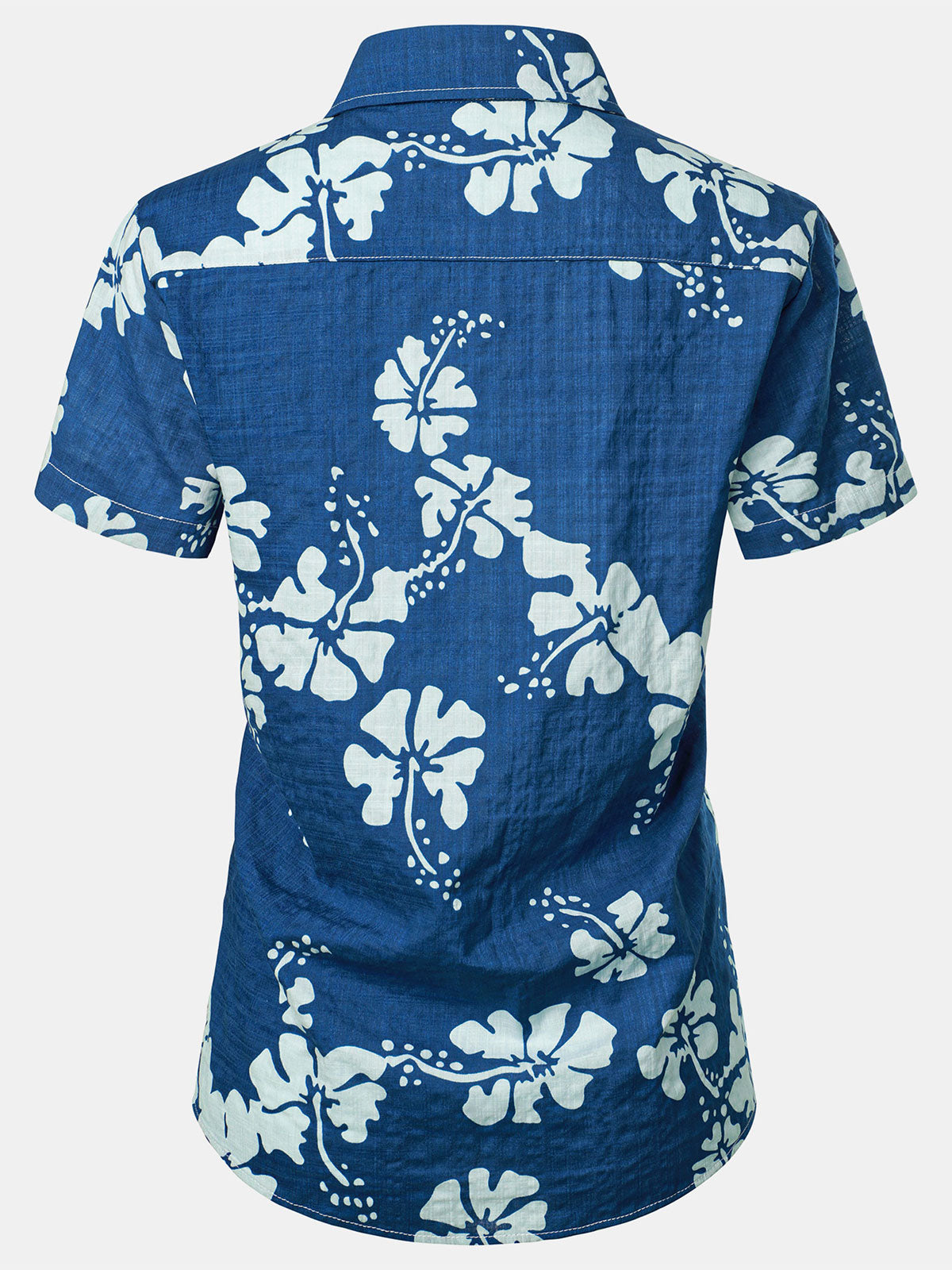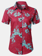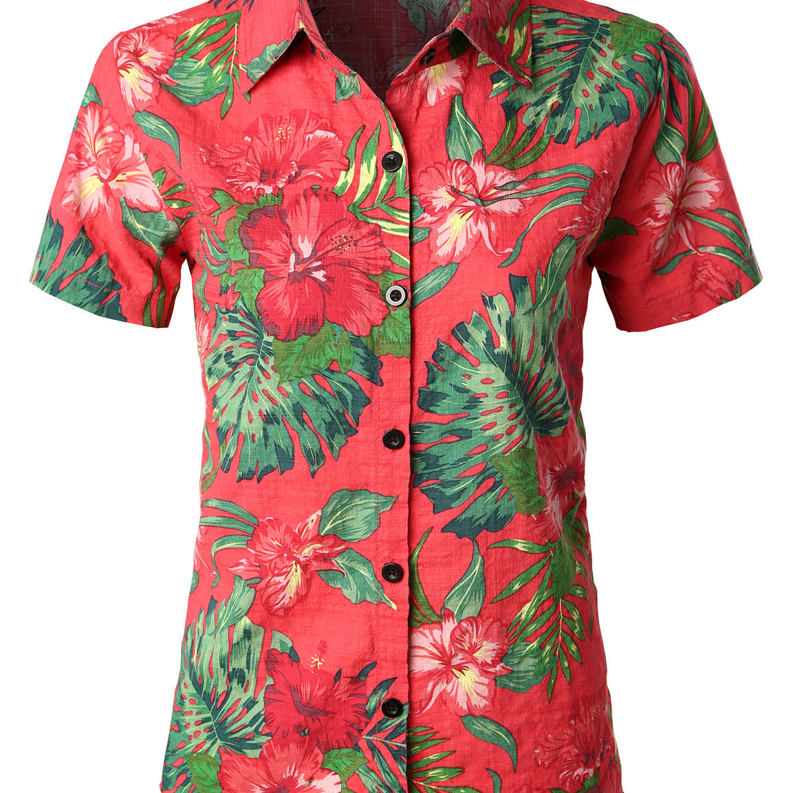 Women's Floral Print Blouse Flower Hawaiian Cotton Summer Aloha Short Sleeve Shirt