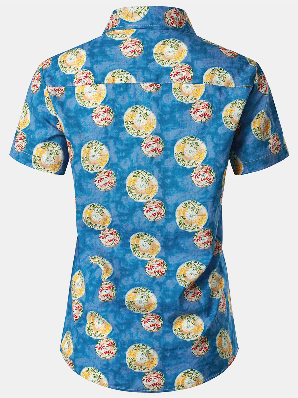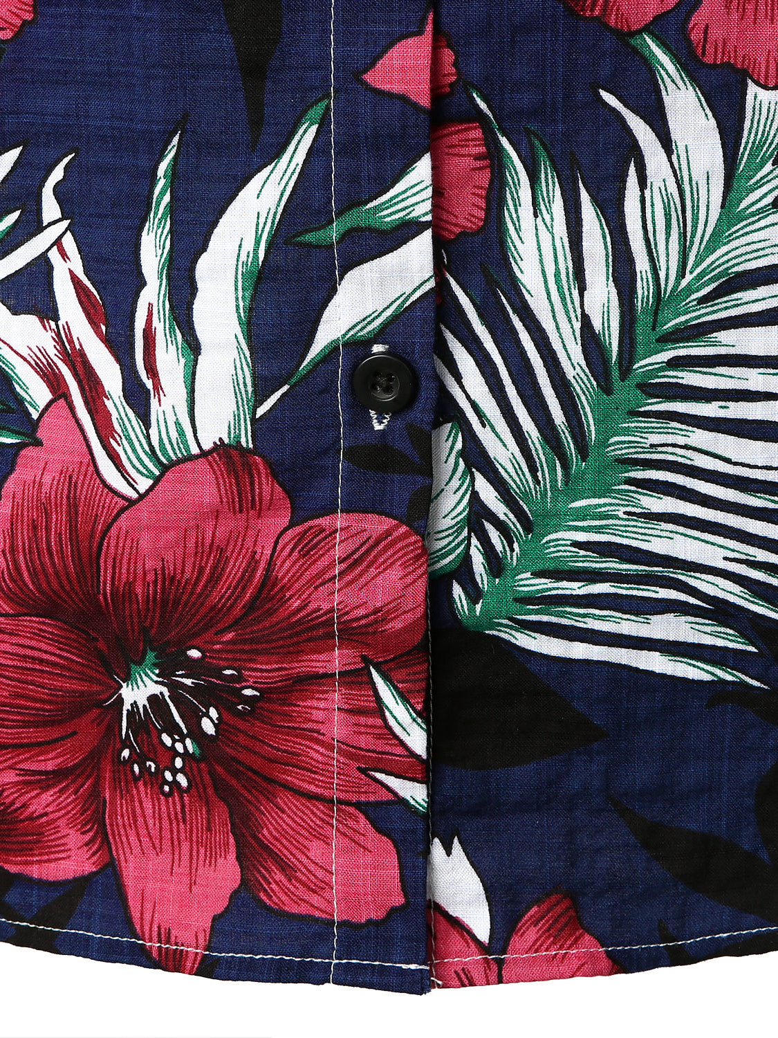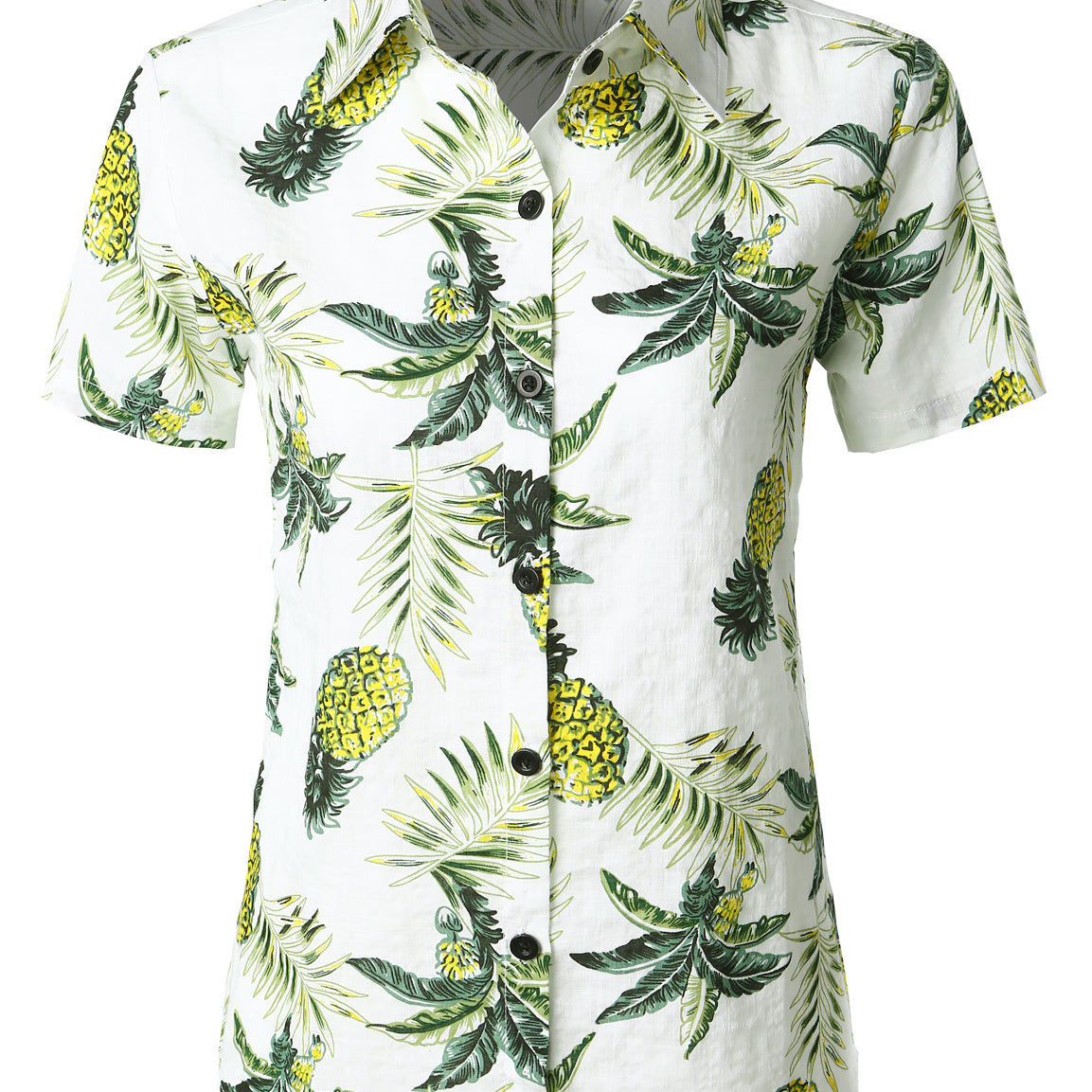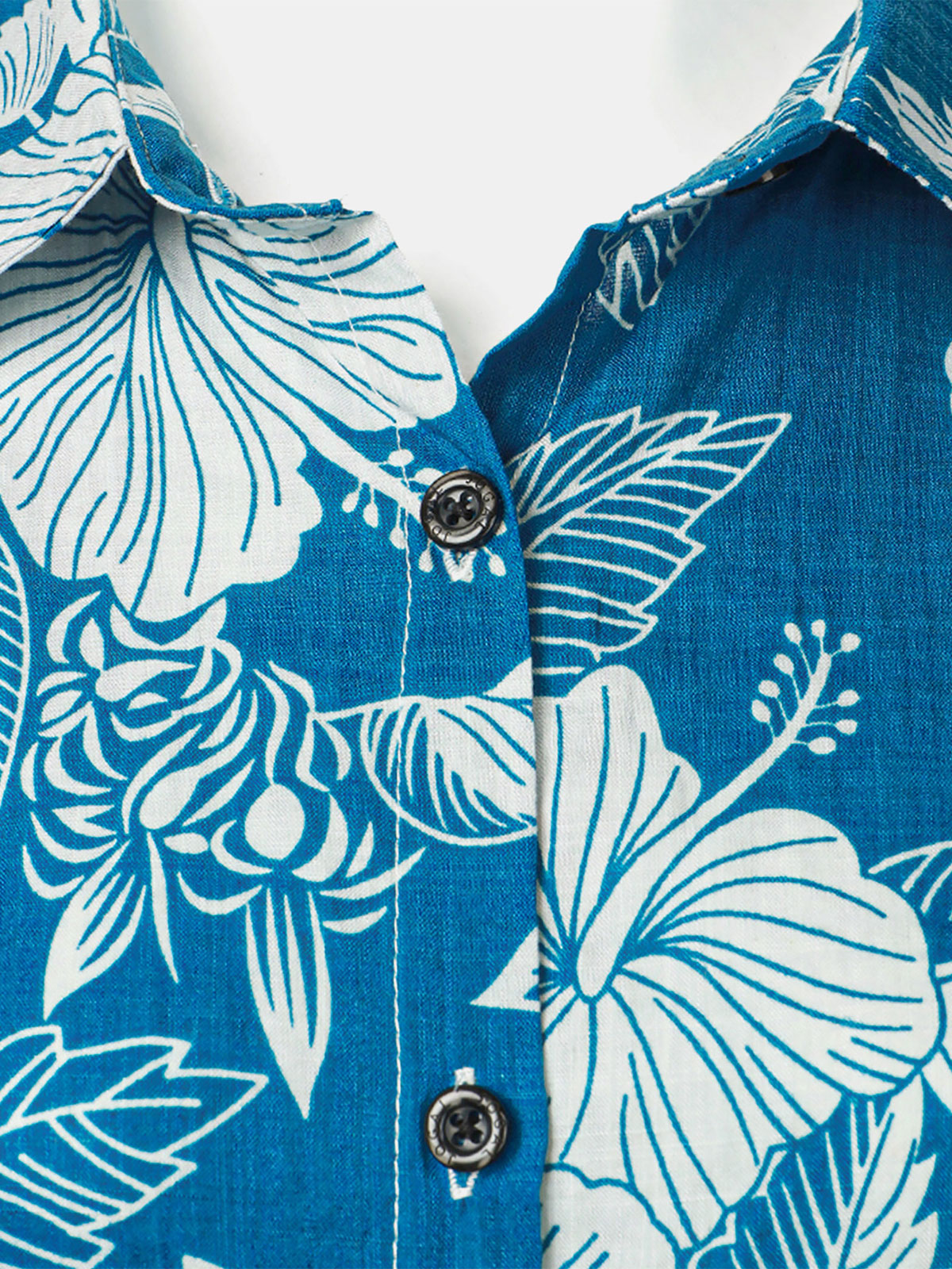 Women's Floral Print Blouse Flower Hawaiian Cotton Summer Aloha Short Sleeve Shirt