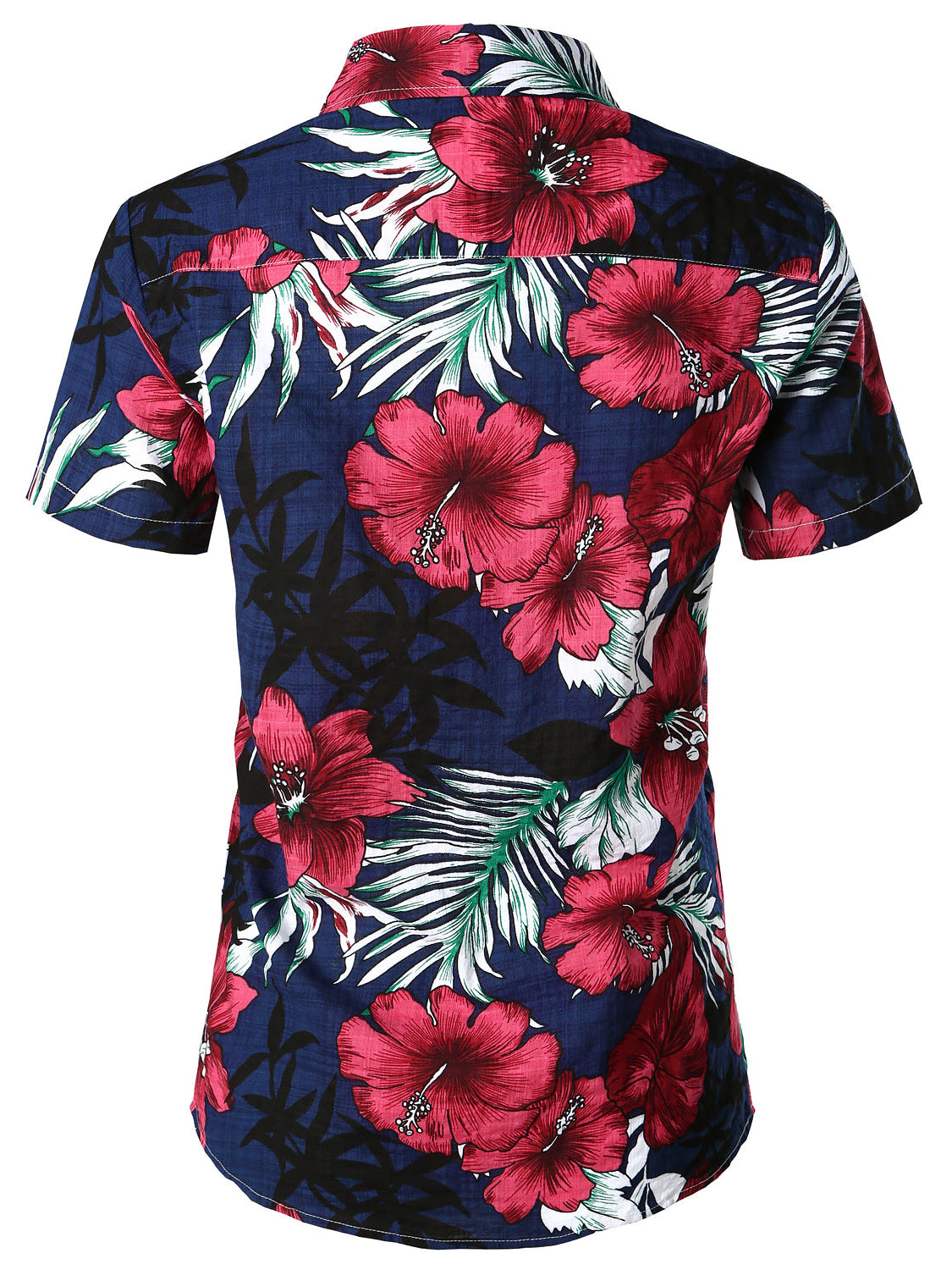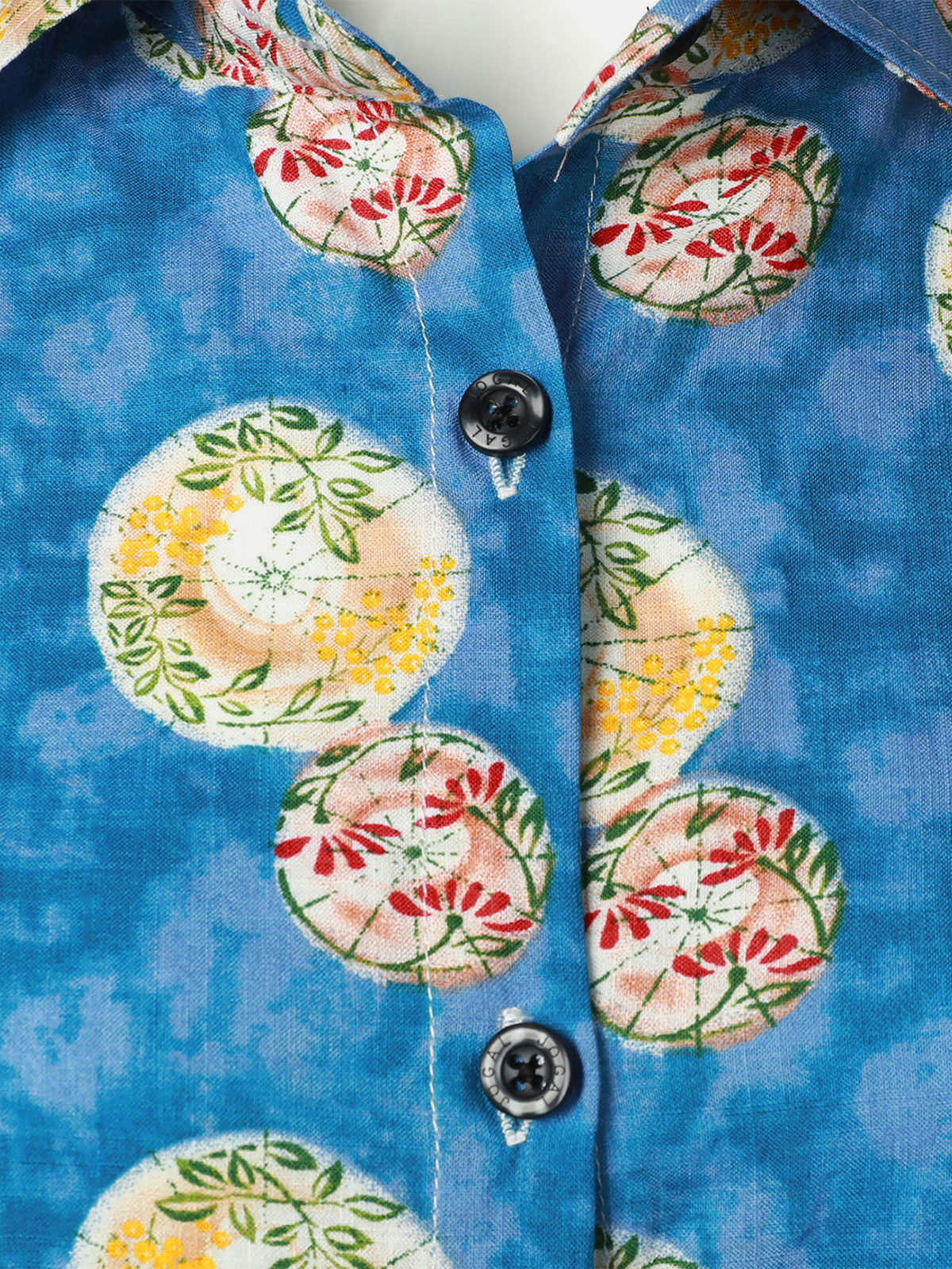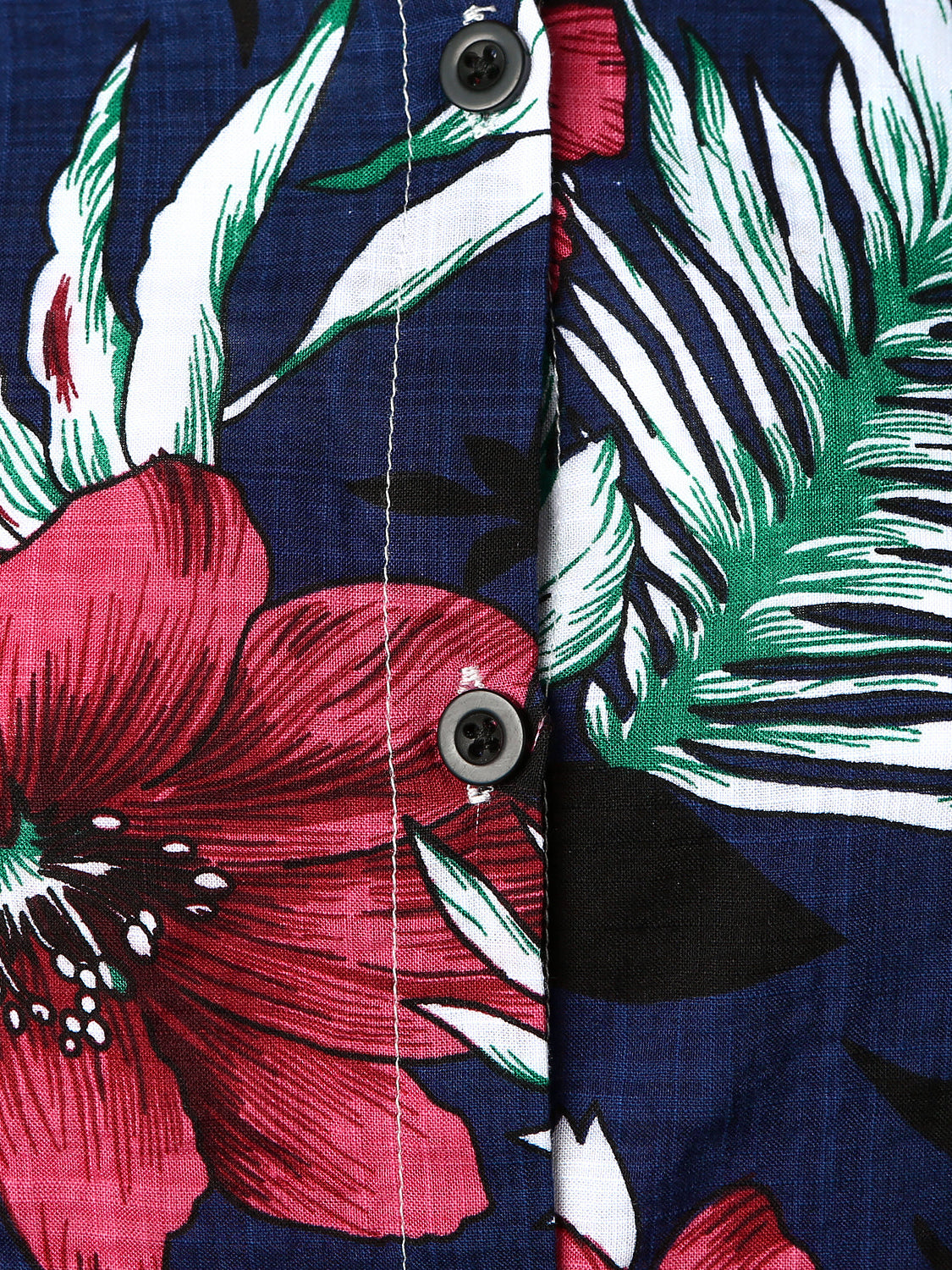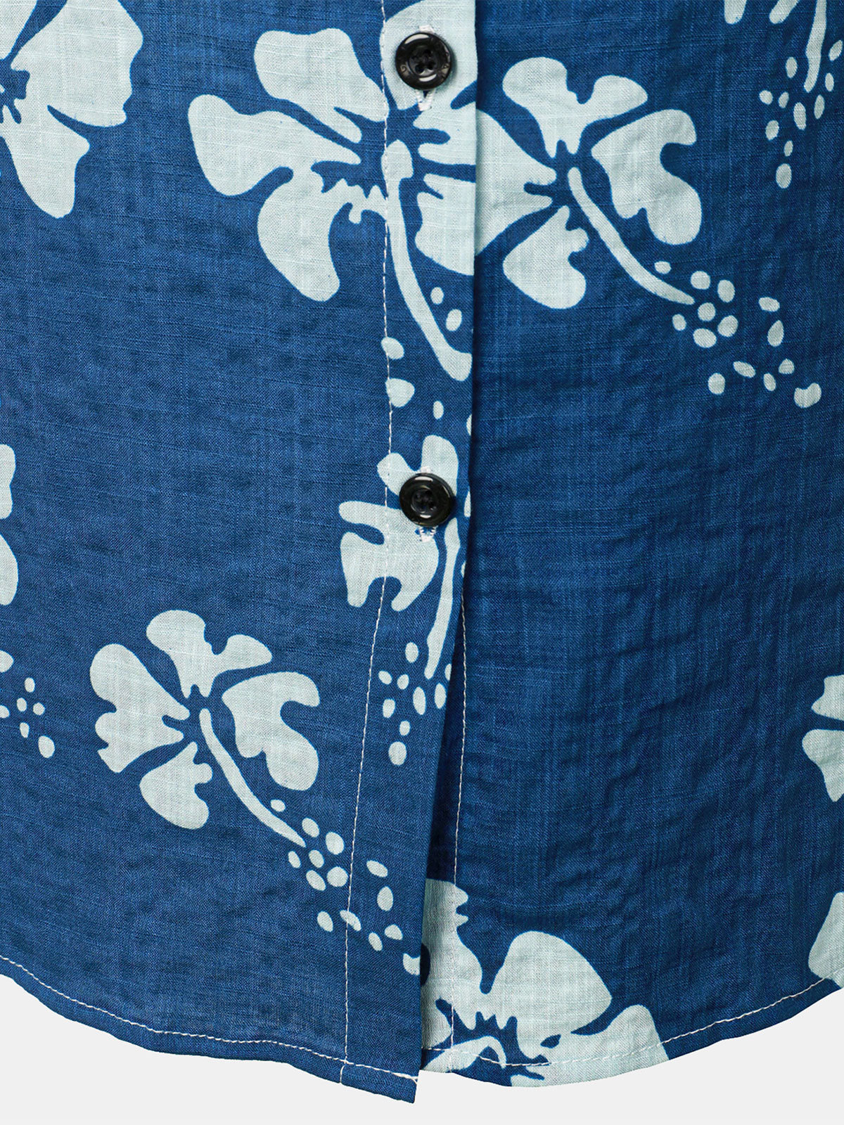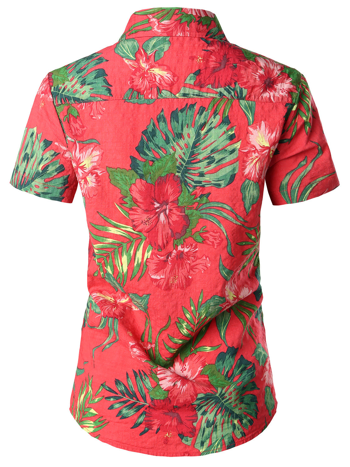 Women's Floral Print Blouse Flower Hawaiian Cotton Summer Aloha Short Sleeve Shirt