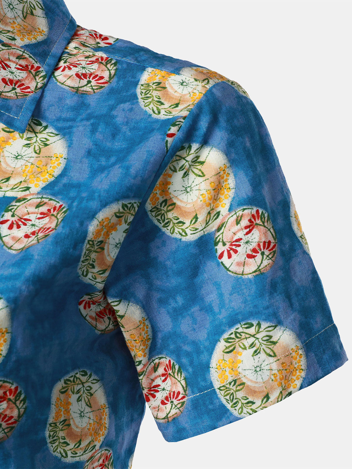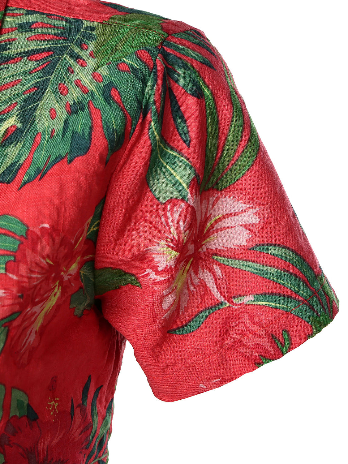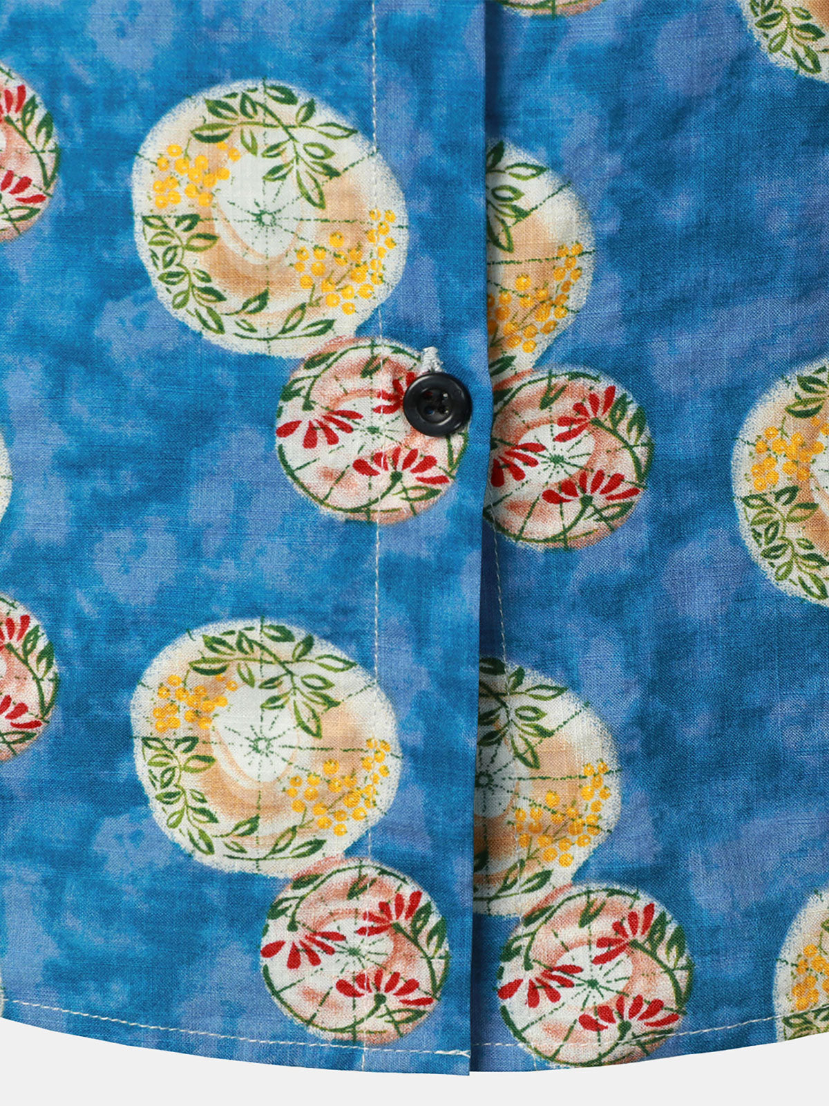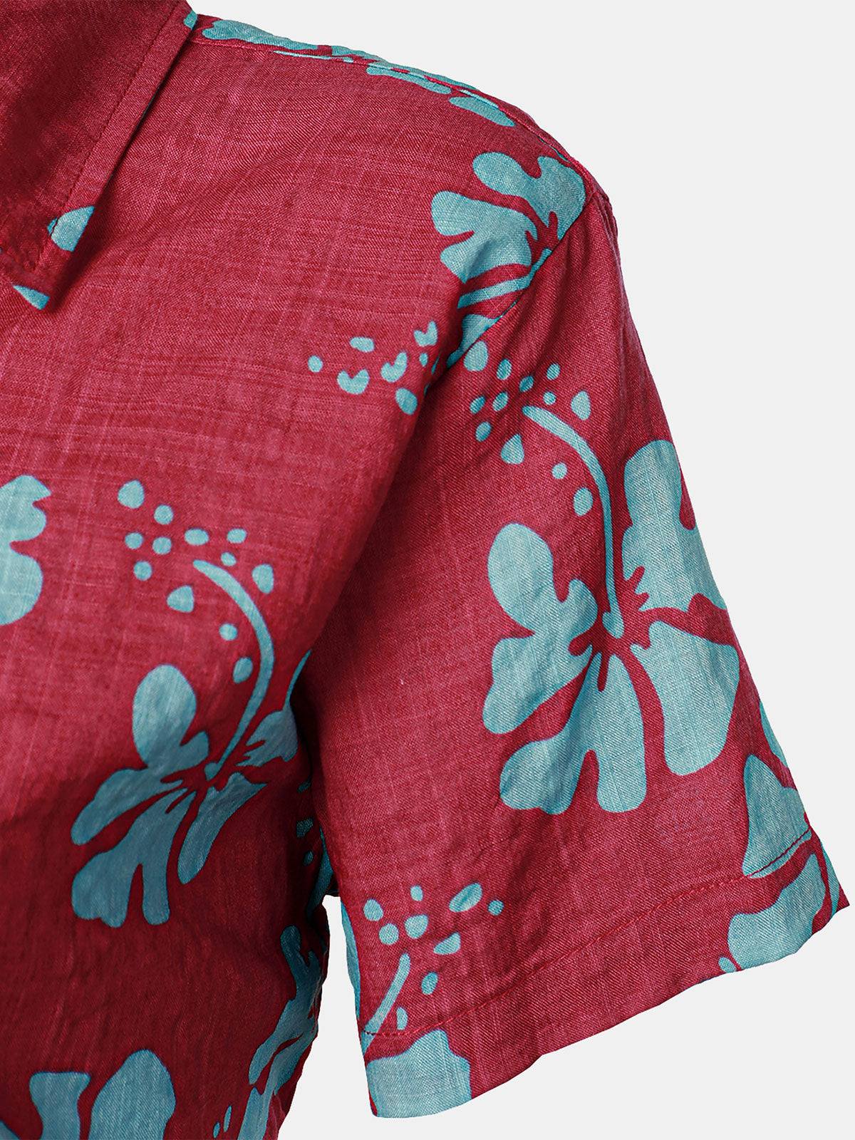 Women's Floral Print Blouse Flower Hawaiian Cotton Summer Aloha Short Sleeve Shirt