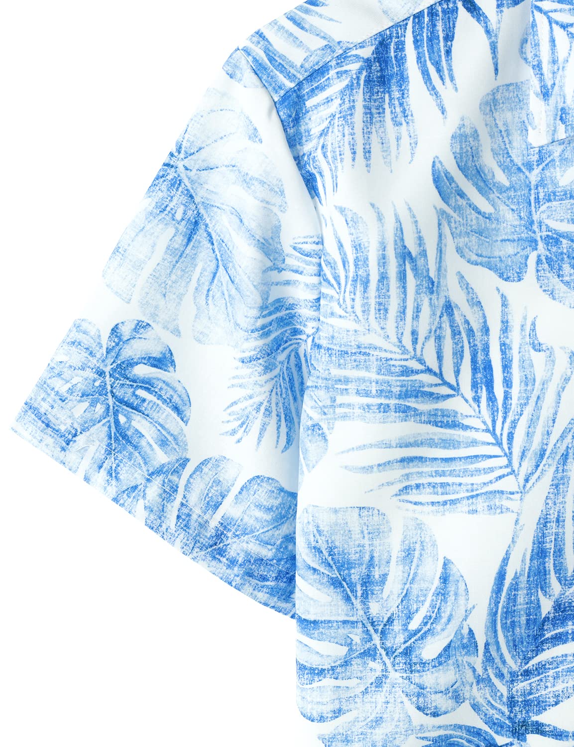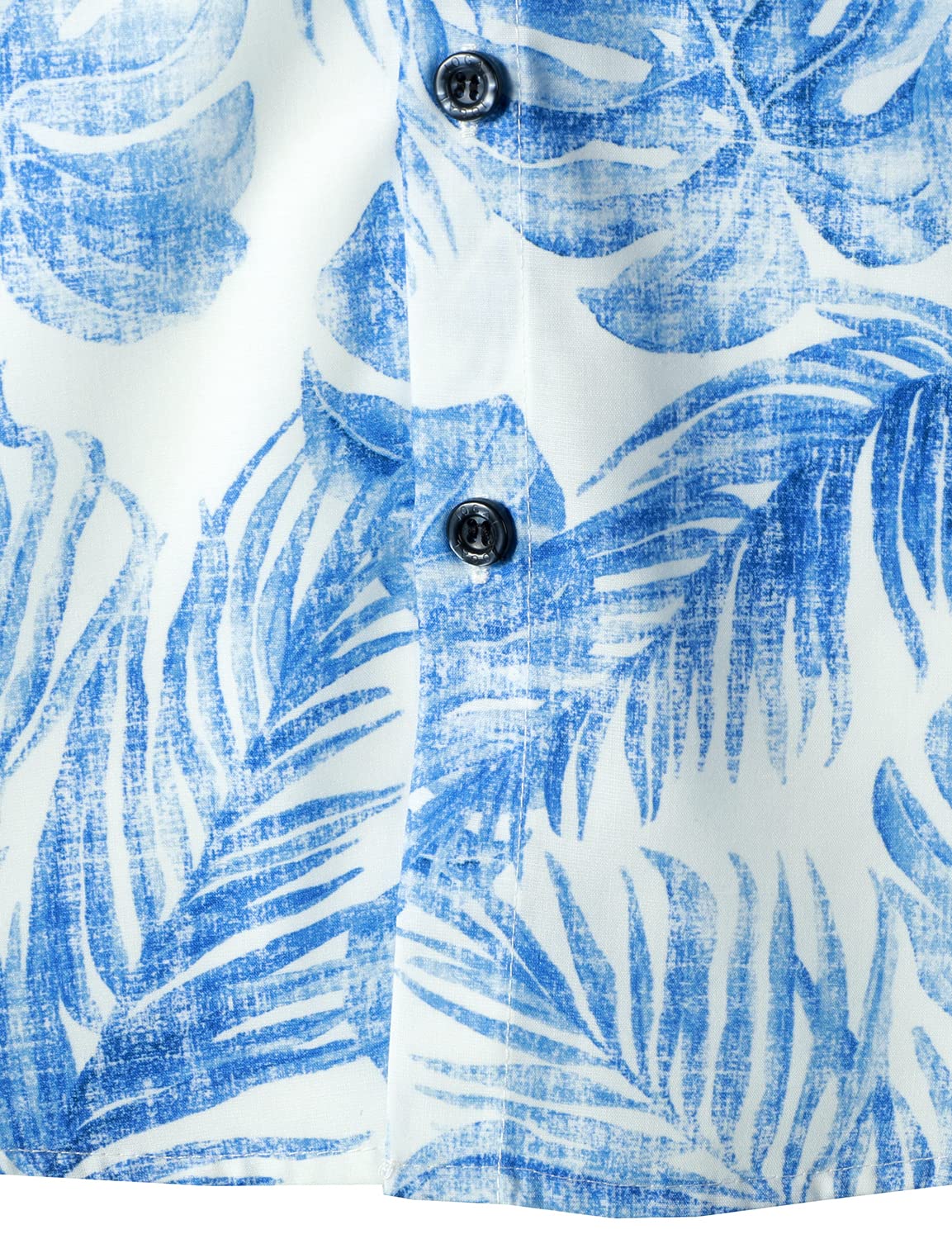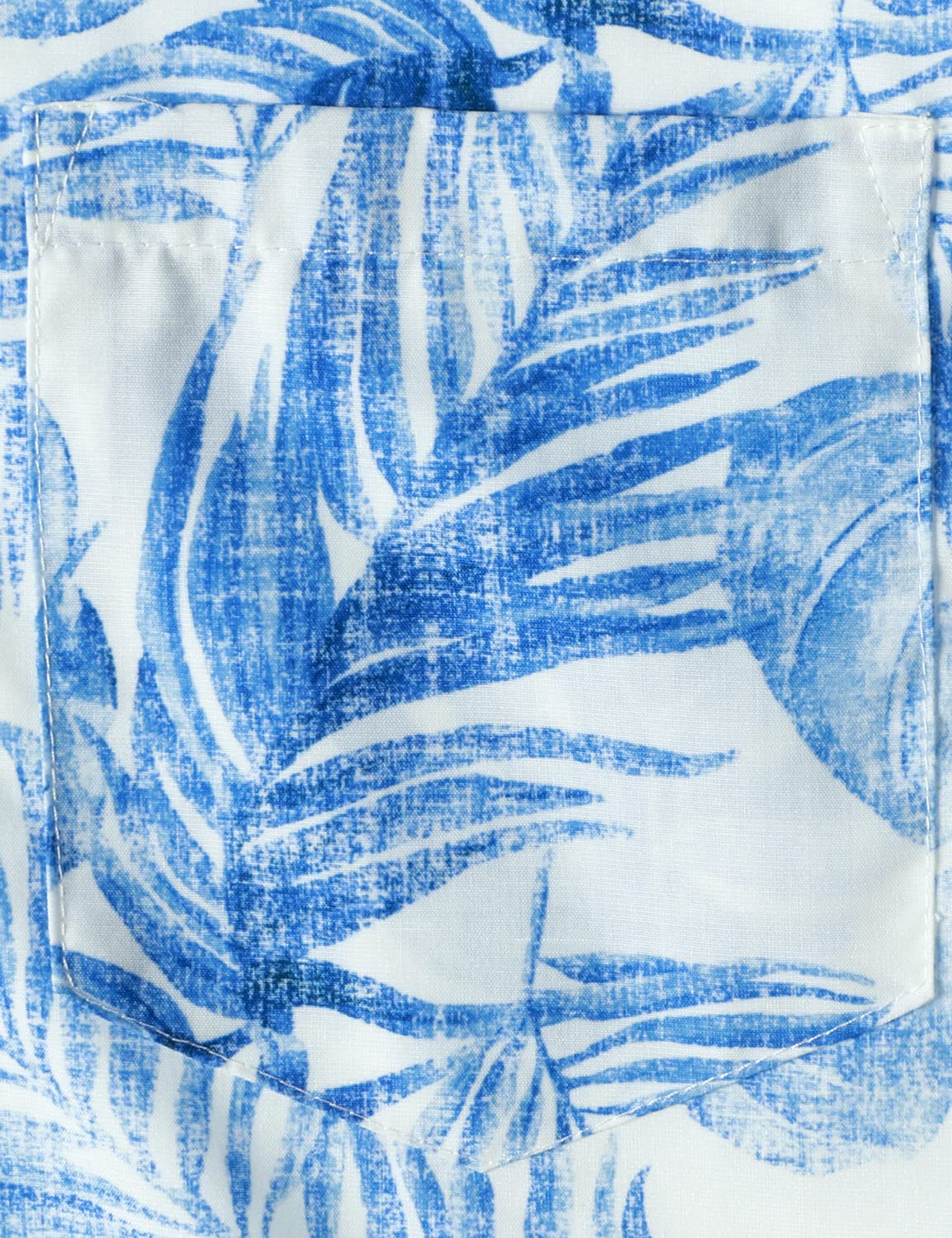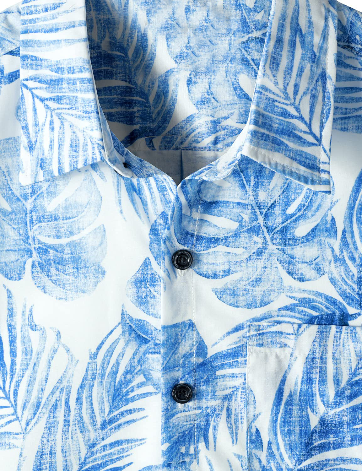 Men's Blue Hawaiian Casual Pocket Tropical Plant Print Vacation Button Short Sleeve Shirt