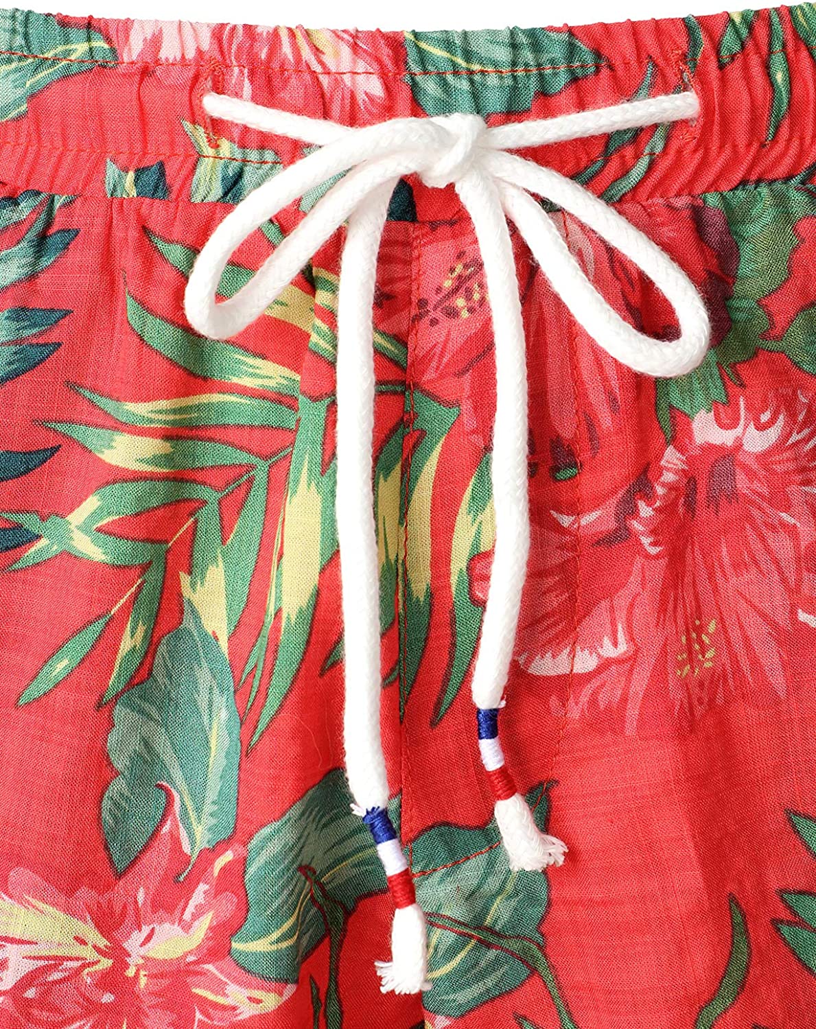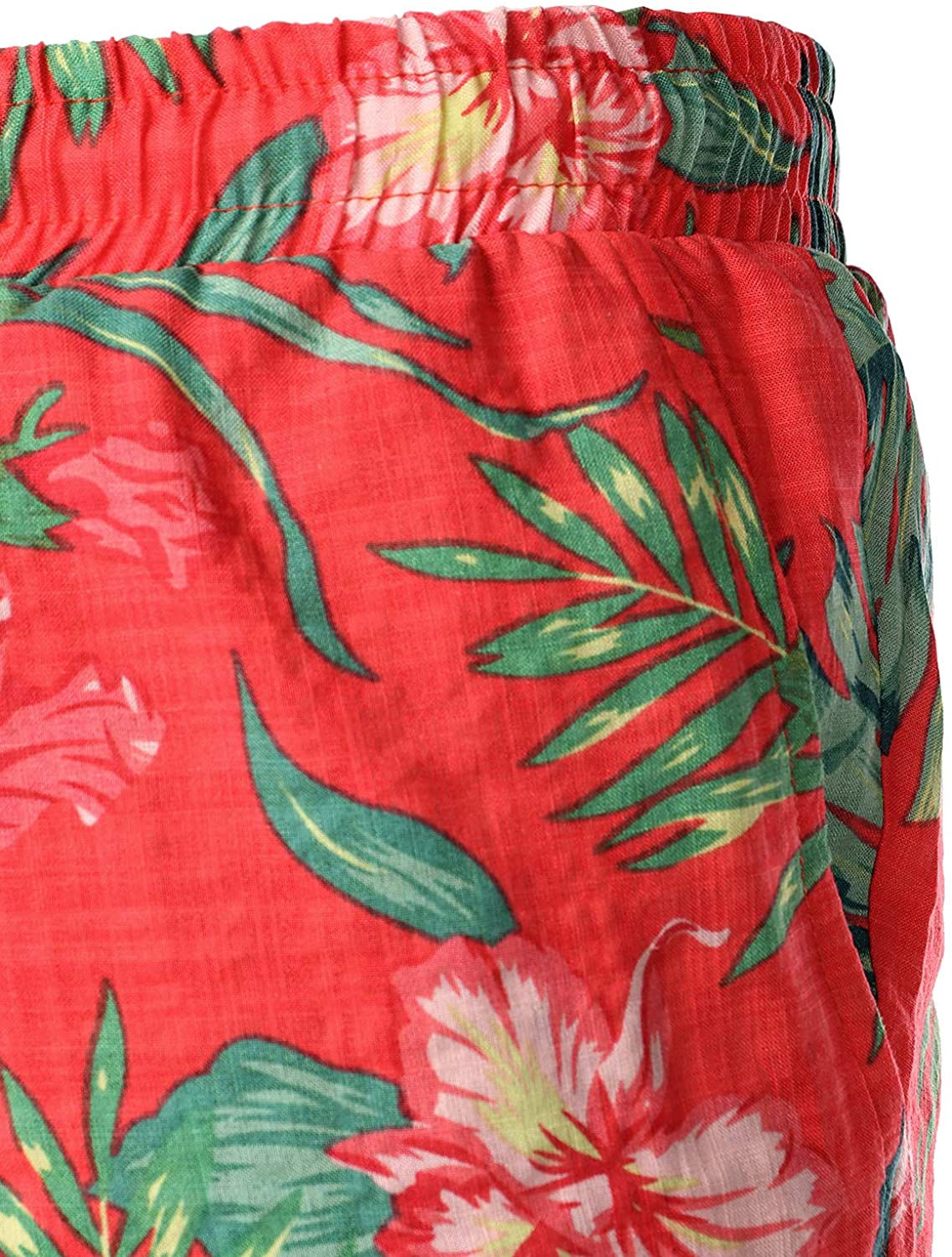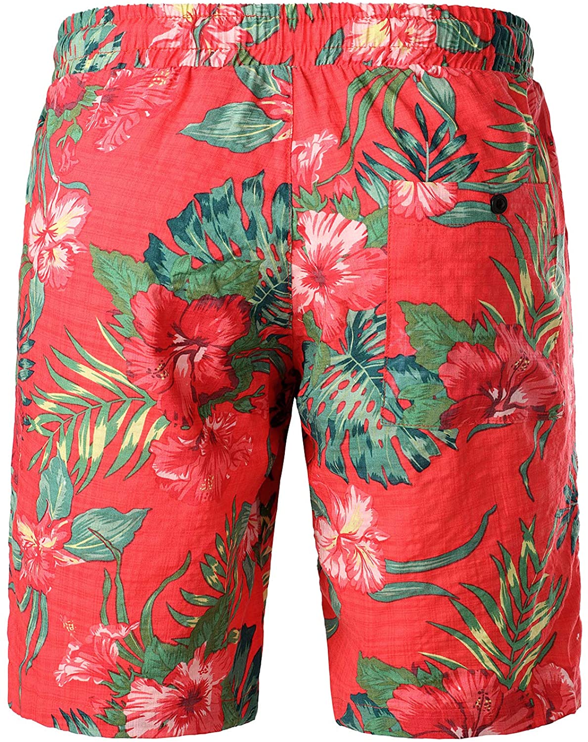 Men's Cotton Casual Red Flower Hawaiian Shorts