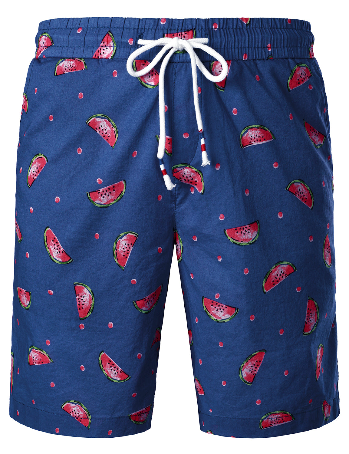 Men's Breathable Cotton Watermelon Beach Hawaiian Aloha Summer Shorts