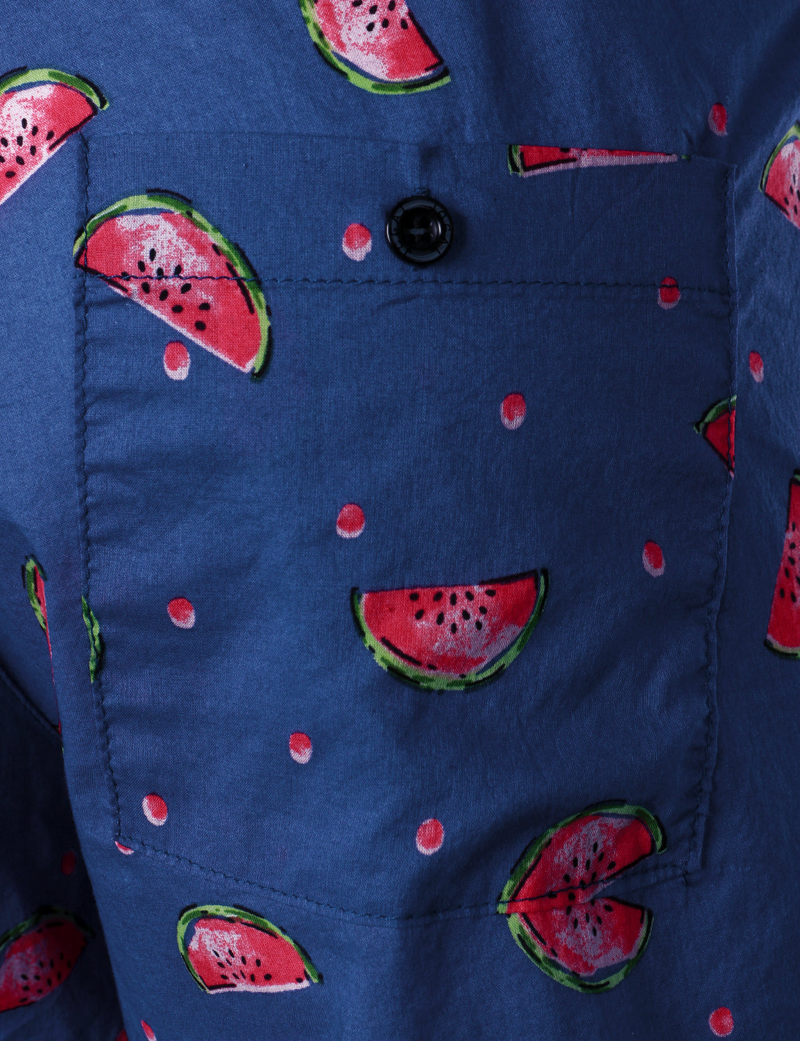 Men's Watermelon Print Cotton Hawaiian Shirt & Shorts Set