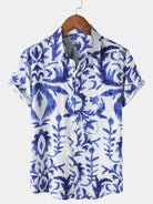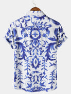 Men's Retro Print Button Up Short Sleeve Shirt