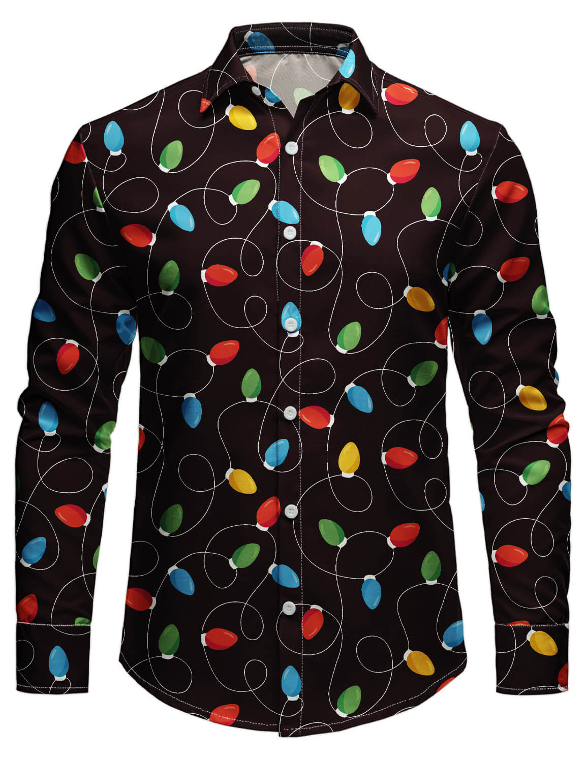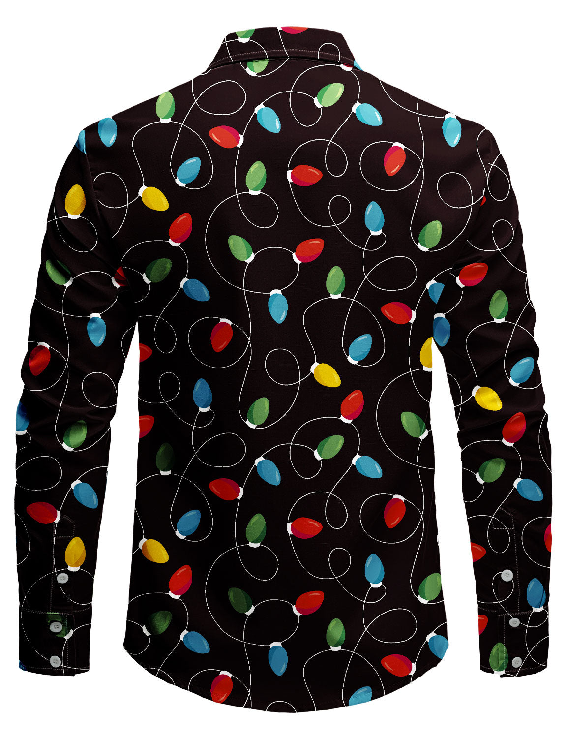 Men's Black Christmas Long Sleeve Xmas Fairy Lights Shirt