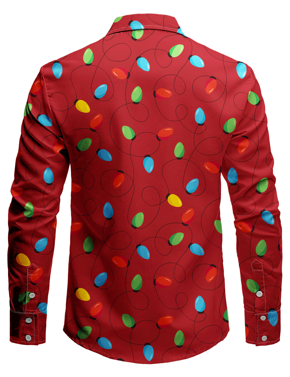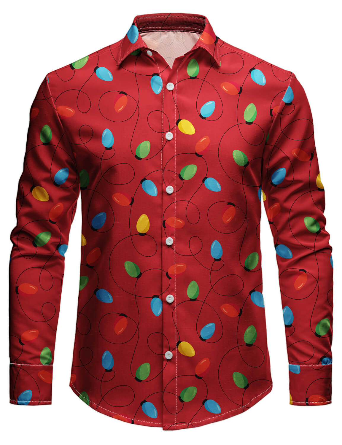 Men's Red Christmas Long Sleeve Xmas Fairy Lights Shirt