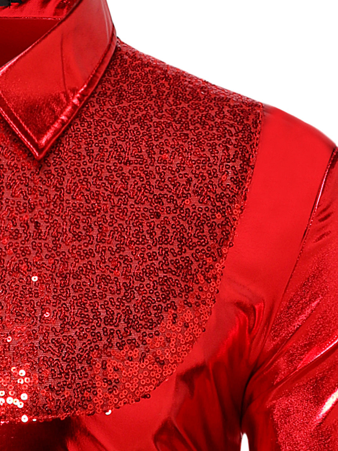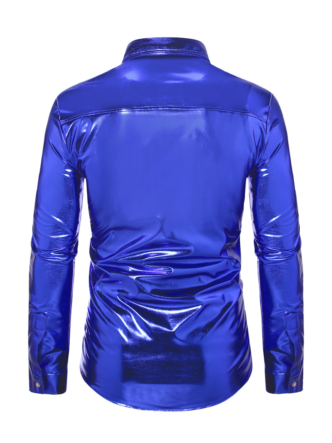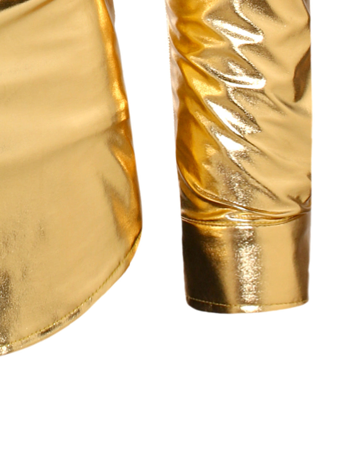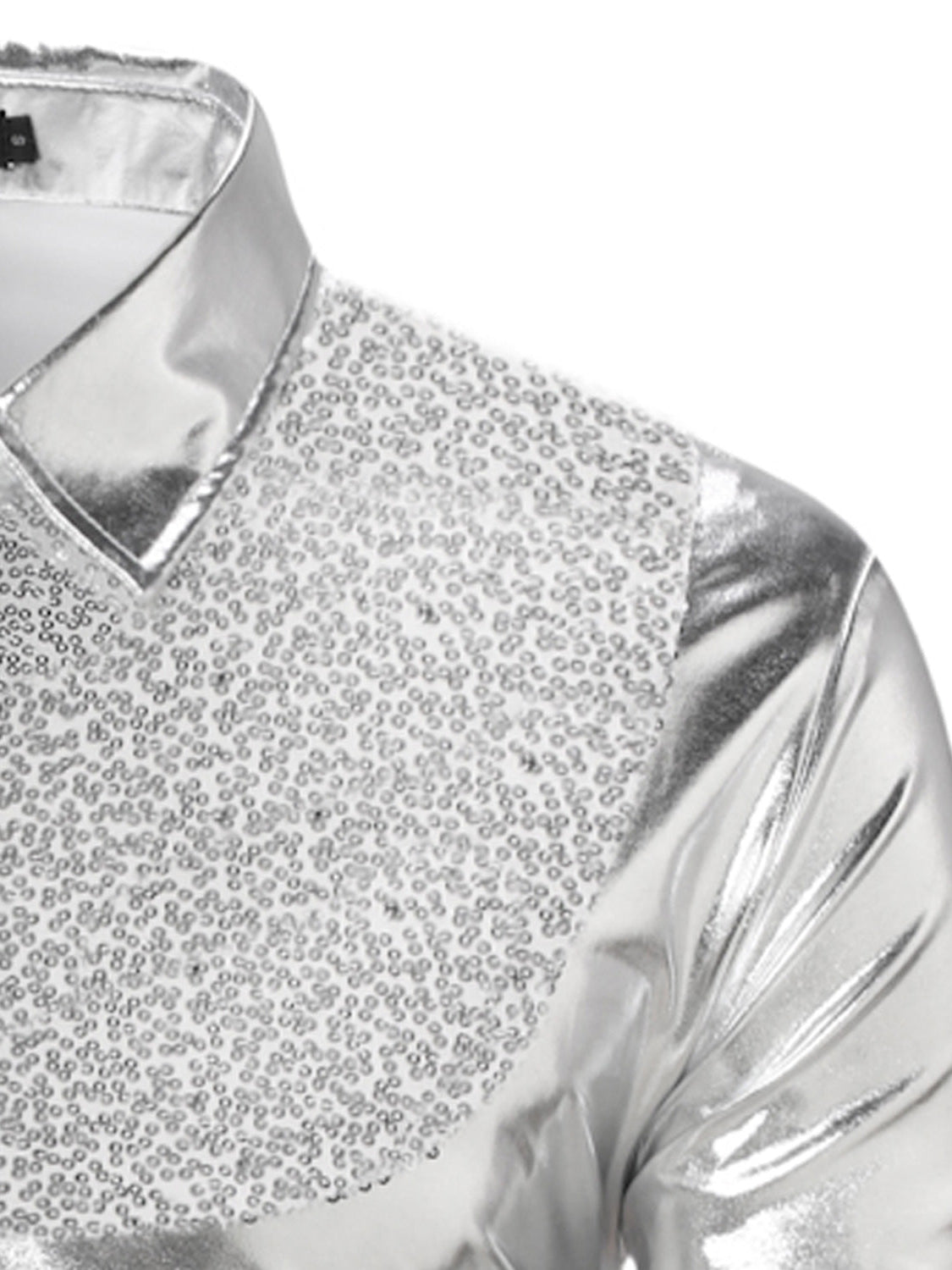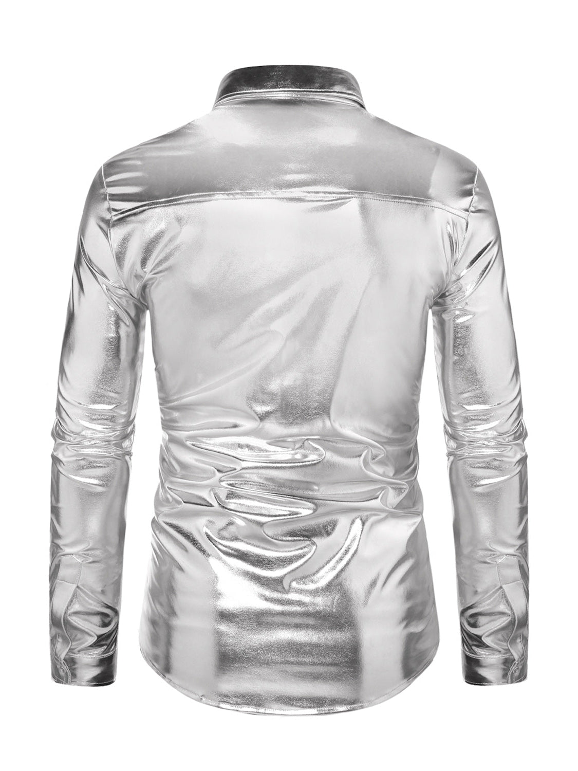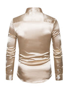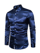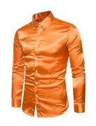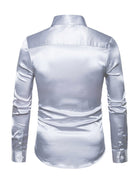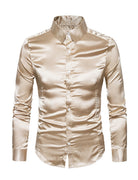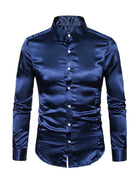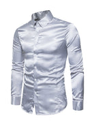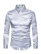 Men's Satin Smooth Button Up Tuxedo Long Sleeve Party Dress Shirt
