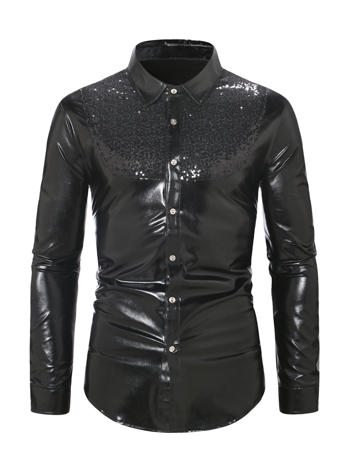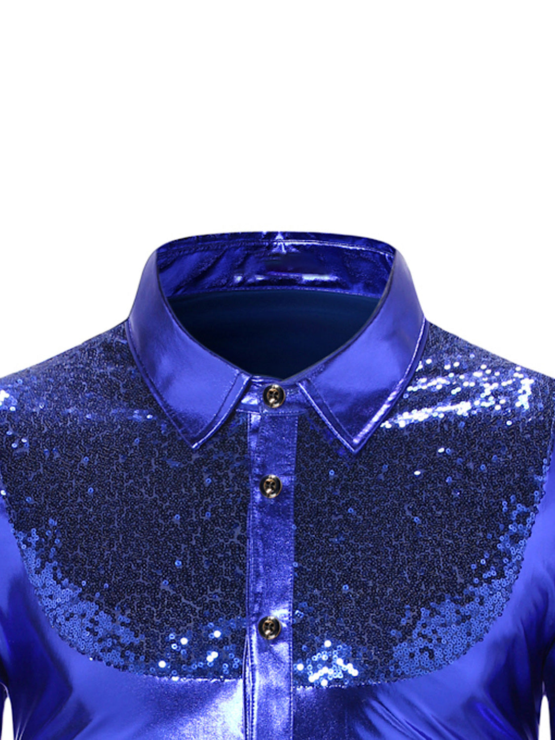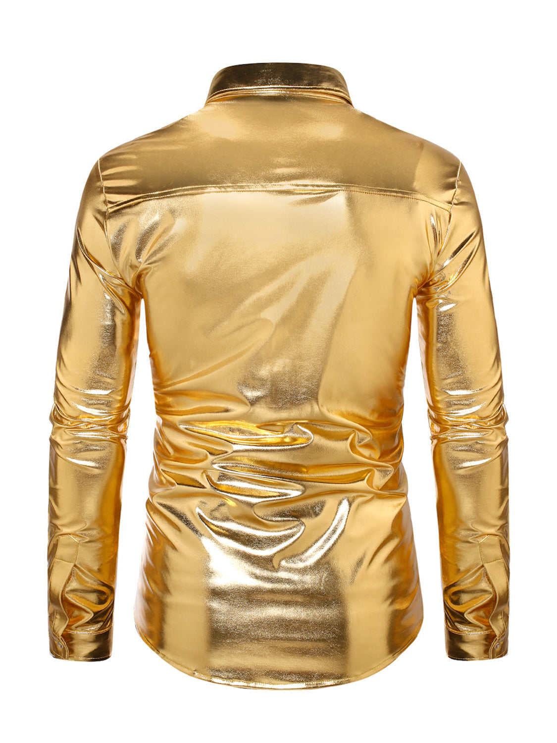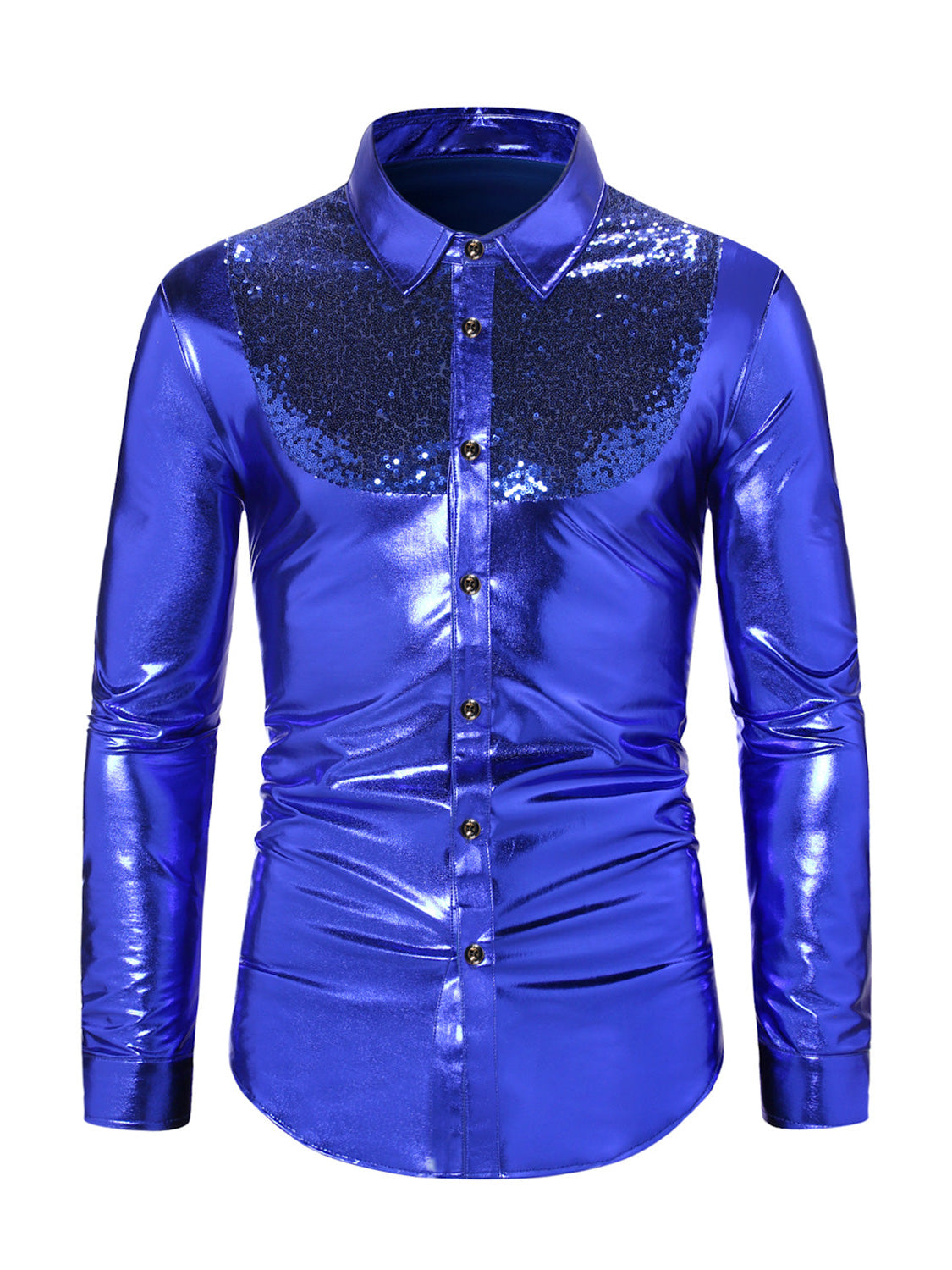 Men's Satin Smooth Button Up Tuxedo Long Sleeve Party Dress Shirt